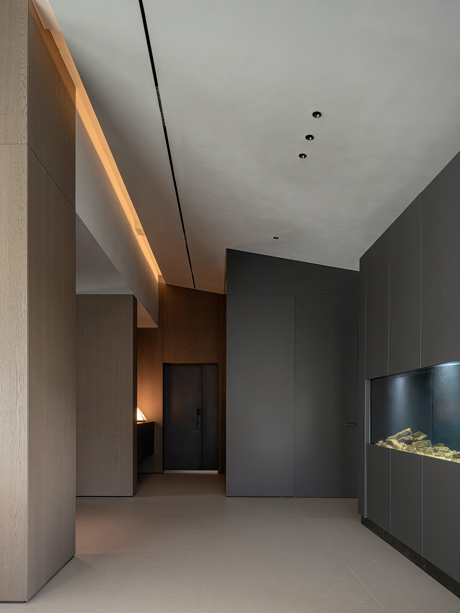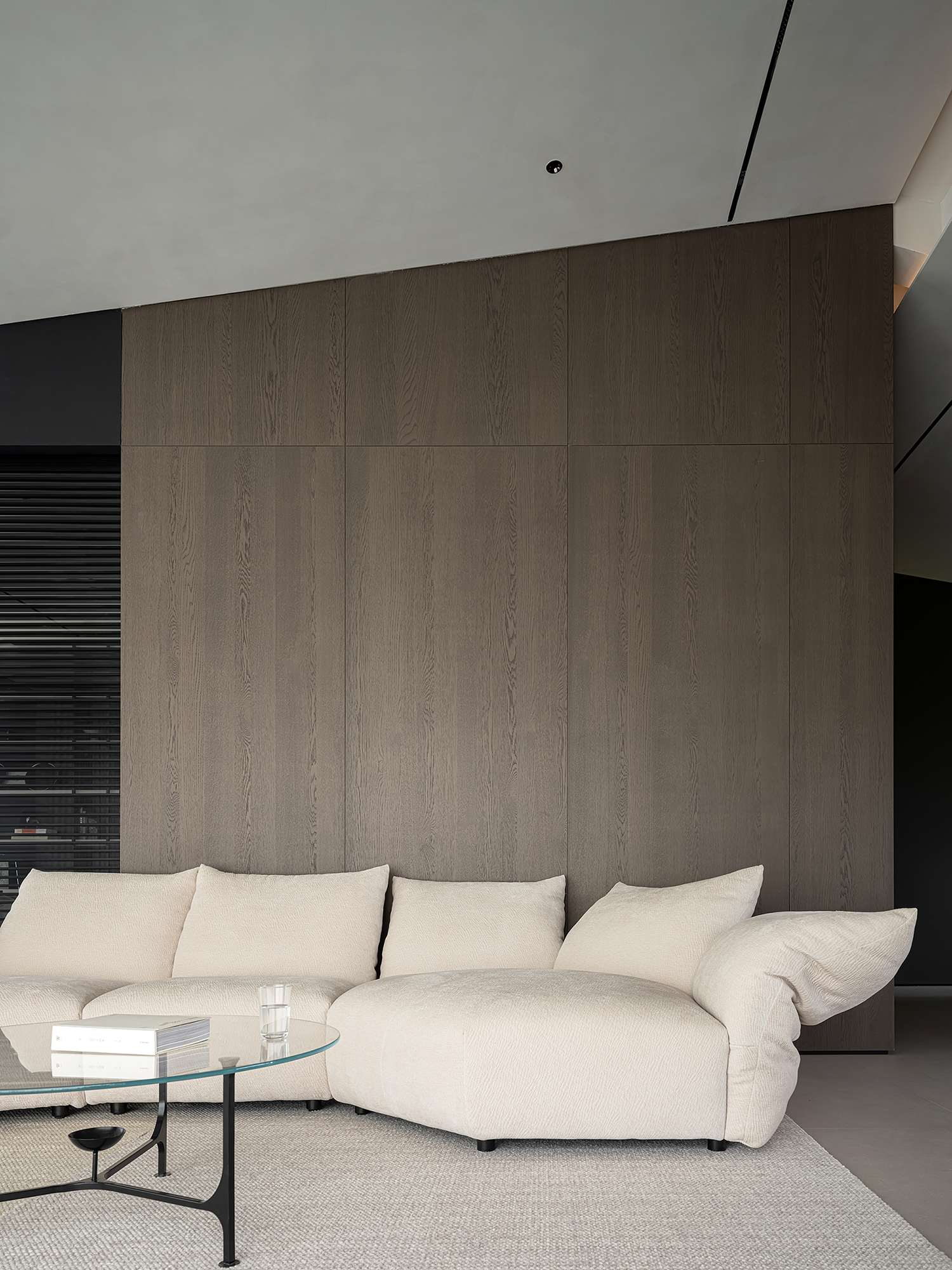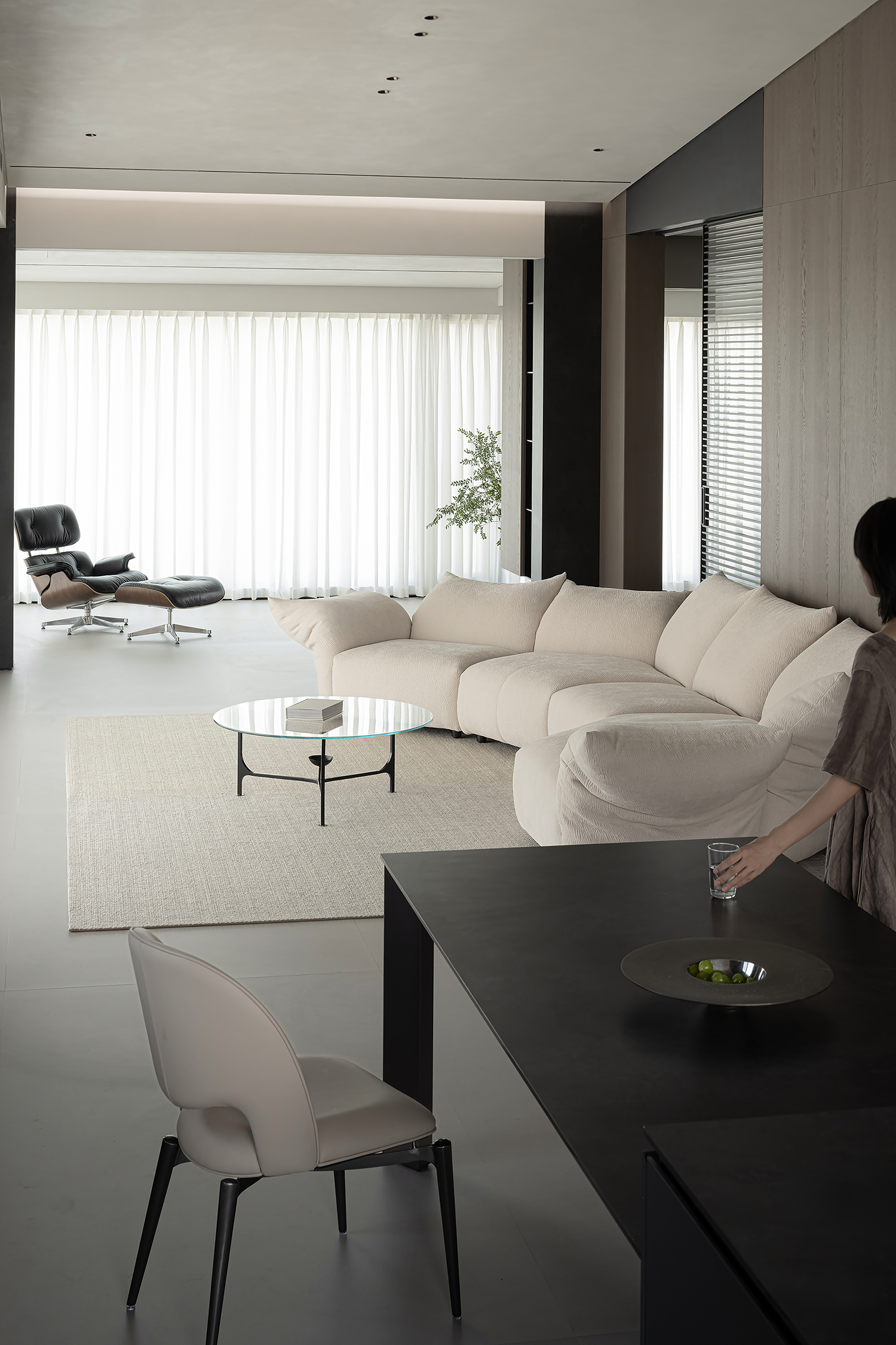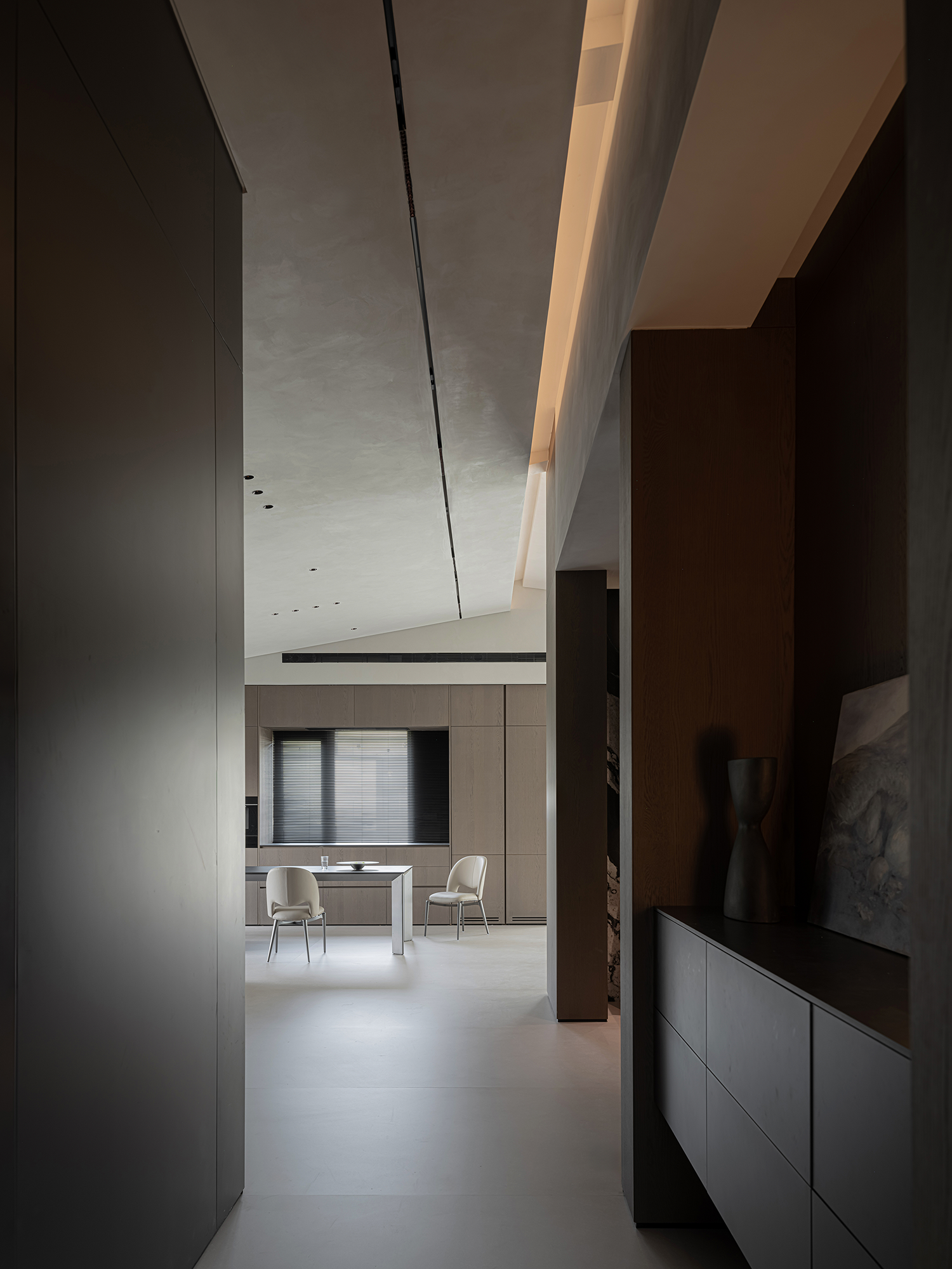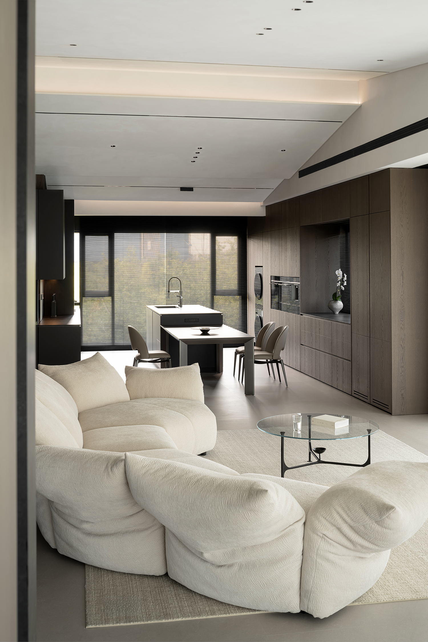 项目定位:屋主是土木工程学博士,购房时,他特意选了融创国宾雅集这套有着缓坡人字形斜屋顶的238㎡户型,他希望这次装修,不仅要发挥出建筑结构的最大优势,同时在意式极简的风格下,打造出一个能够自在养鱼逗猫,包容未来生活变化的温暖明净的家。