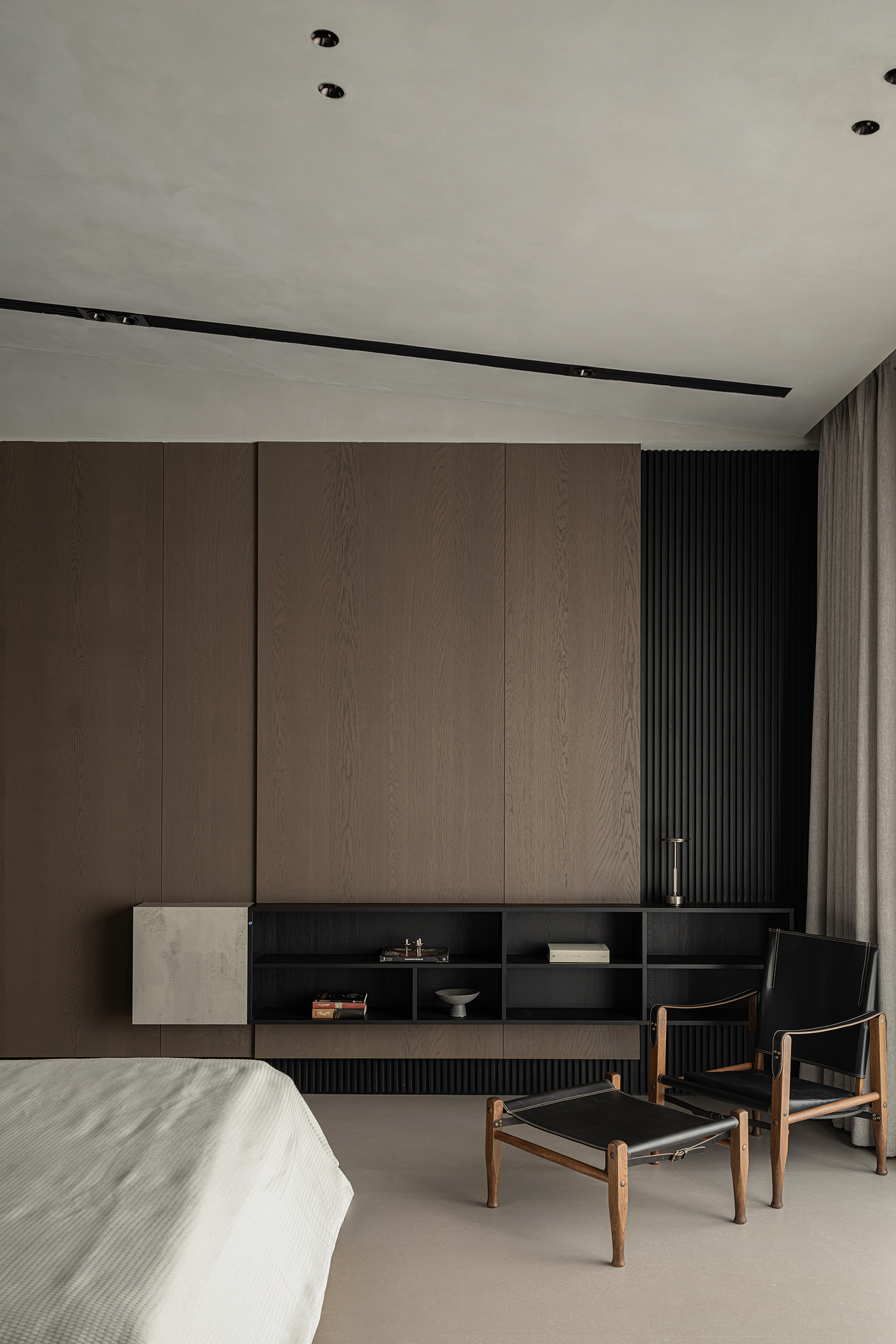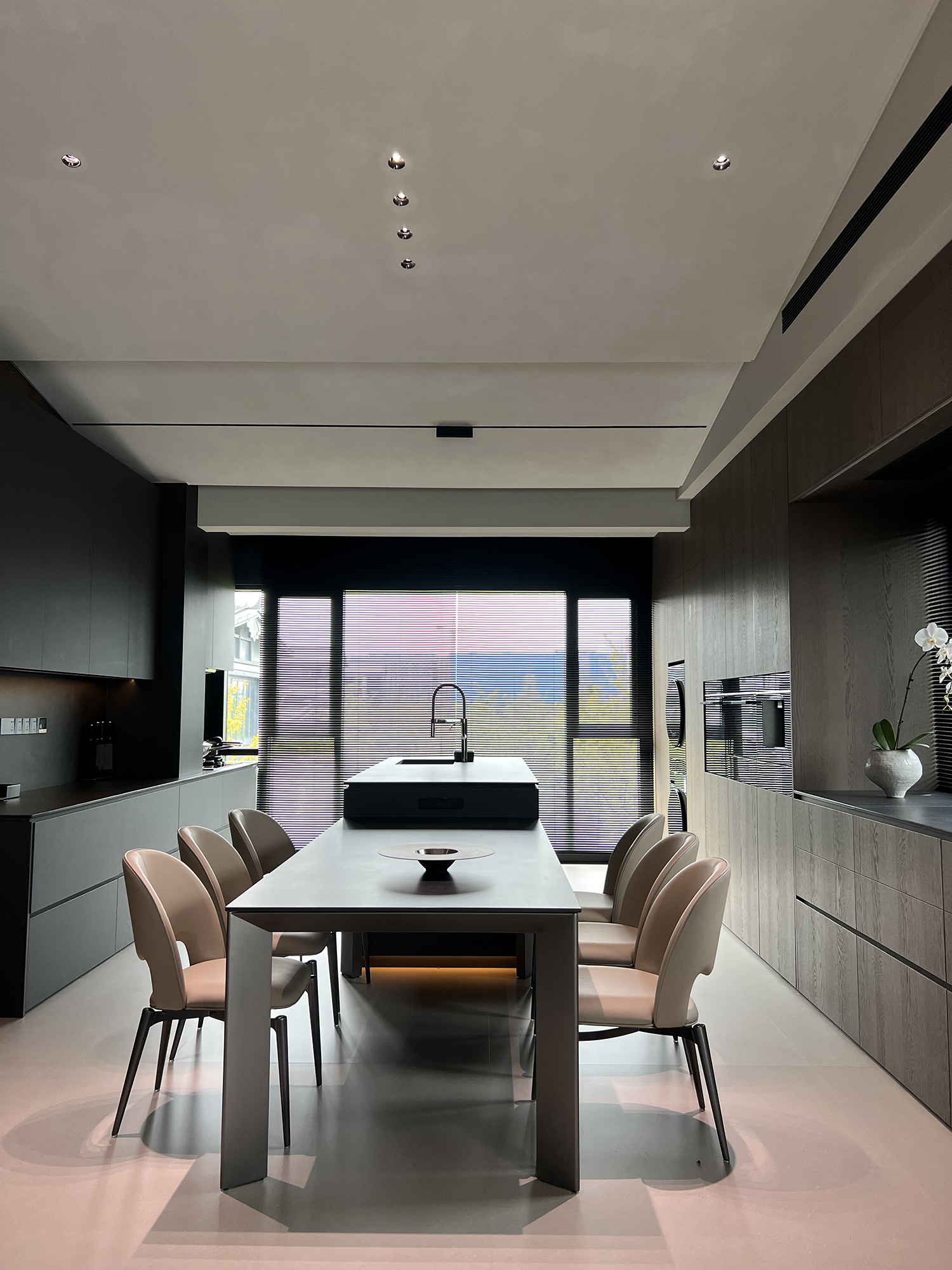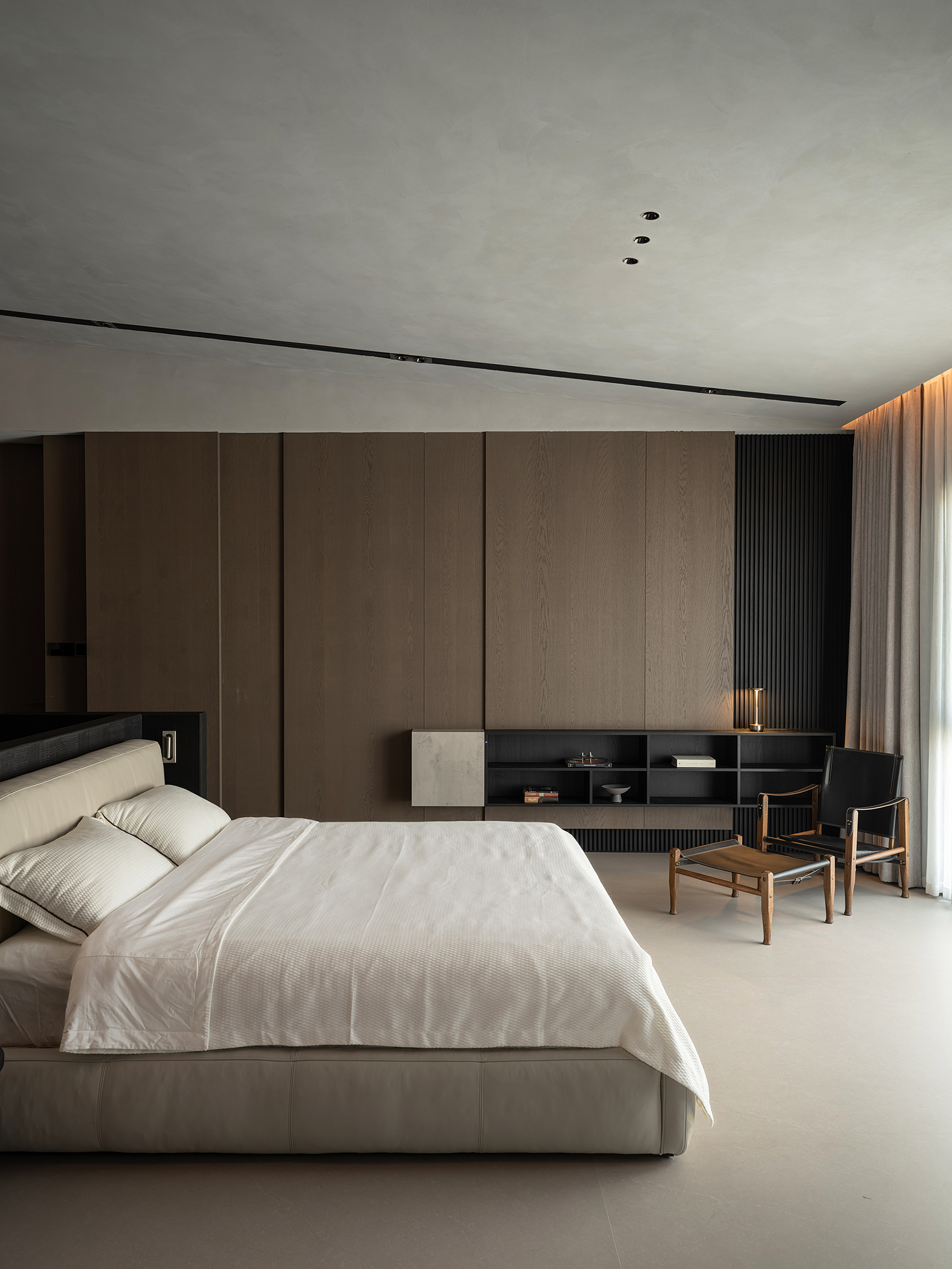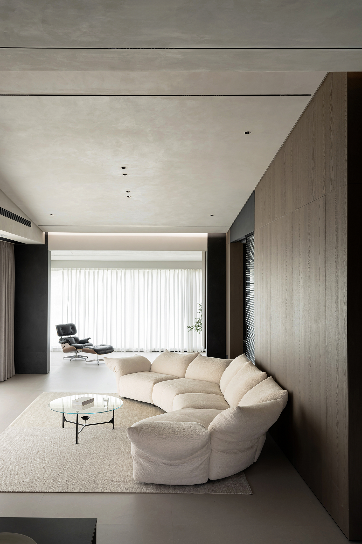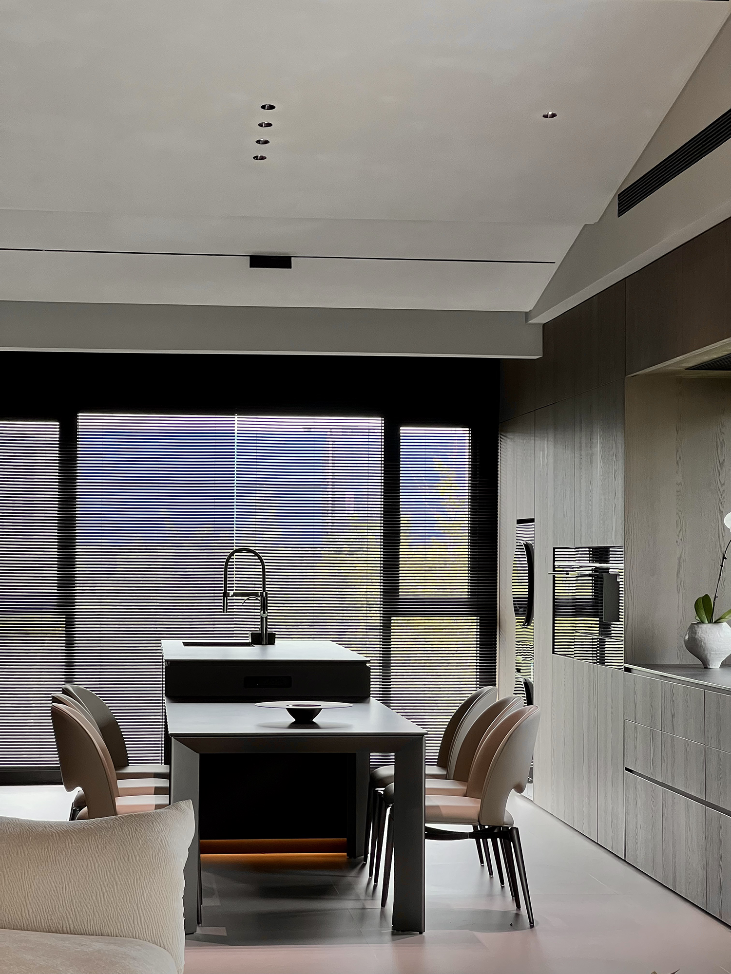 项目定位:屋主是土木工程学博士,购房时,他特意选了融创国宾雅集这套有着缓坡人字形斜屋顶的238㎡户型,他希望这次装修,不仅要发挥出建筑结构的最大优势,同时在意式极简的风格下,打造出一个能够自在养鱼逗猫,包容未来生活变化的温暖明净的家。