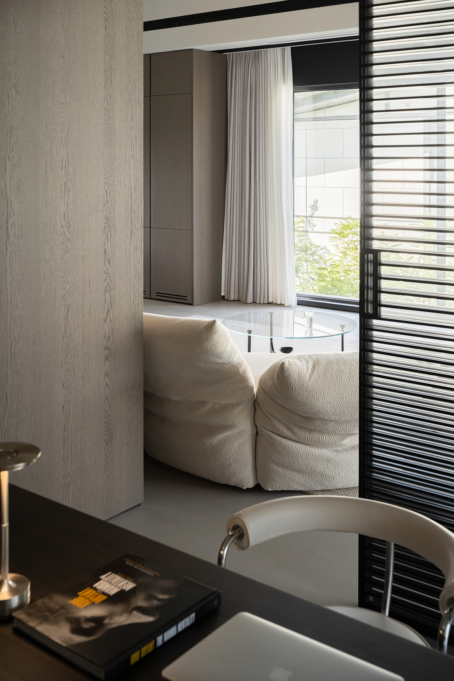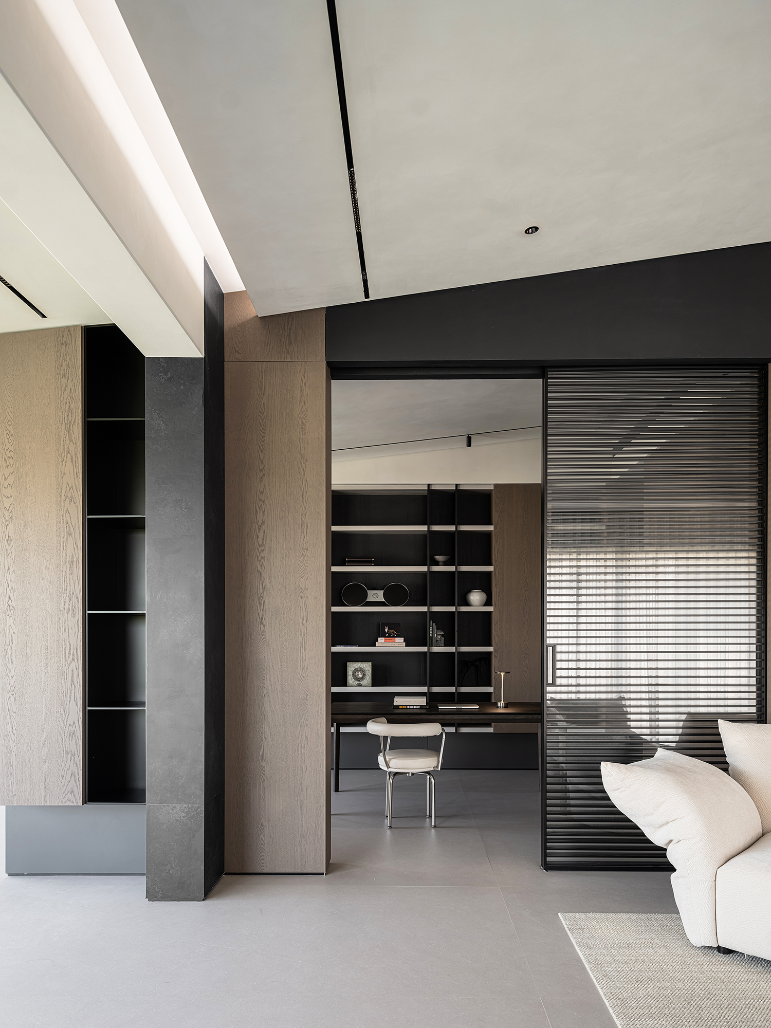 去掉书房与客厅之间的非承重墙,让书房可开可合,让整个公共空间连贯起来。