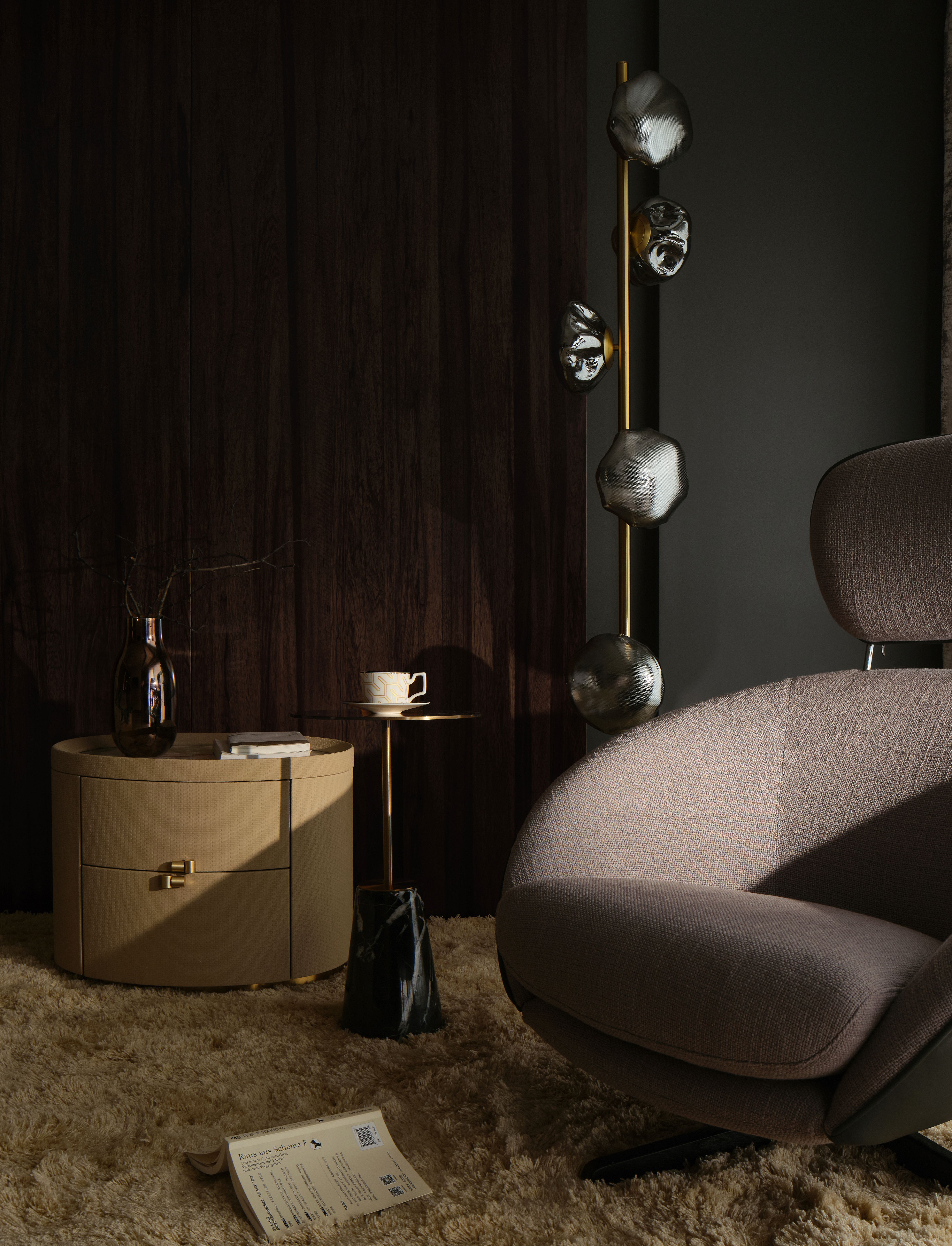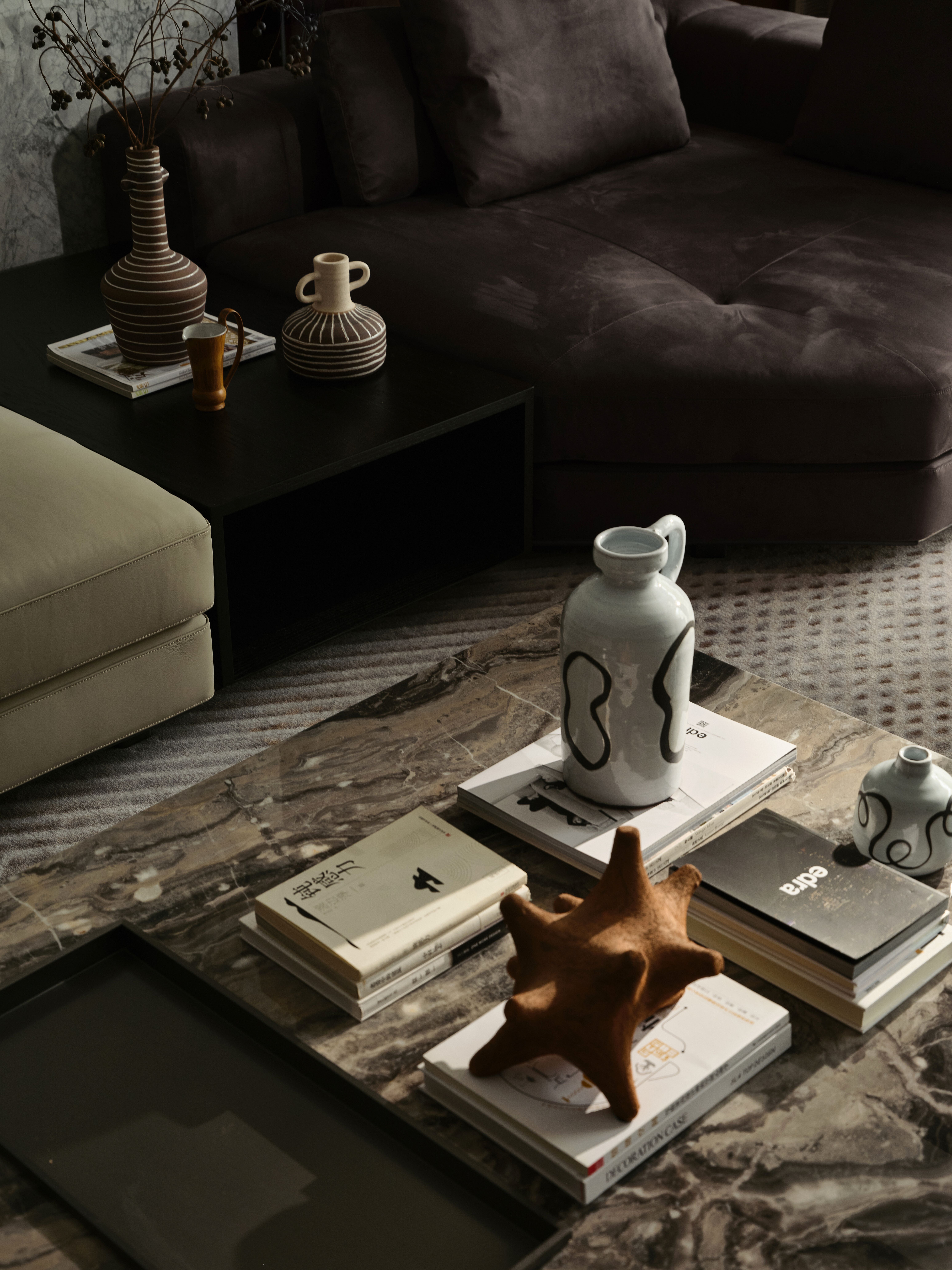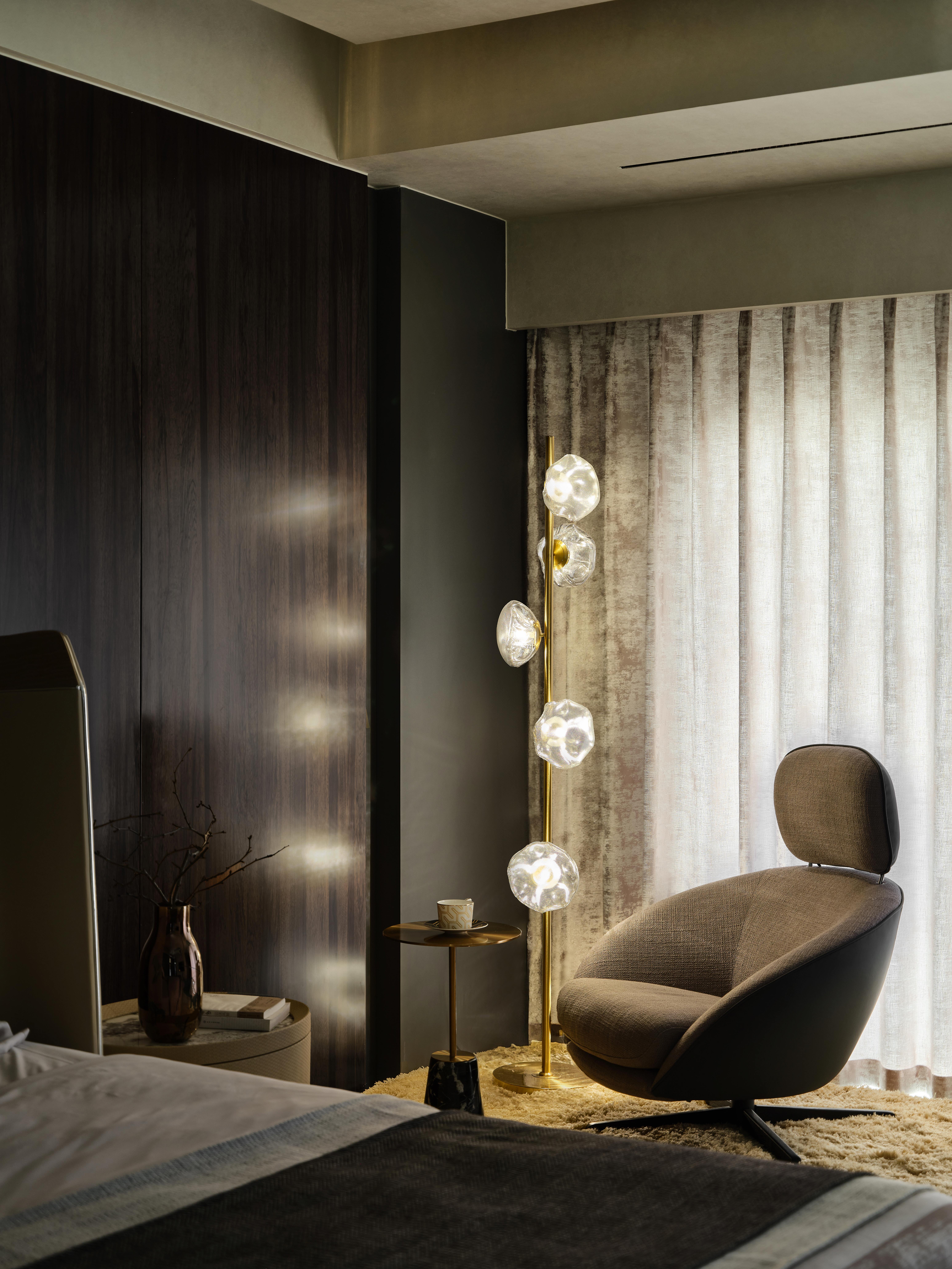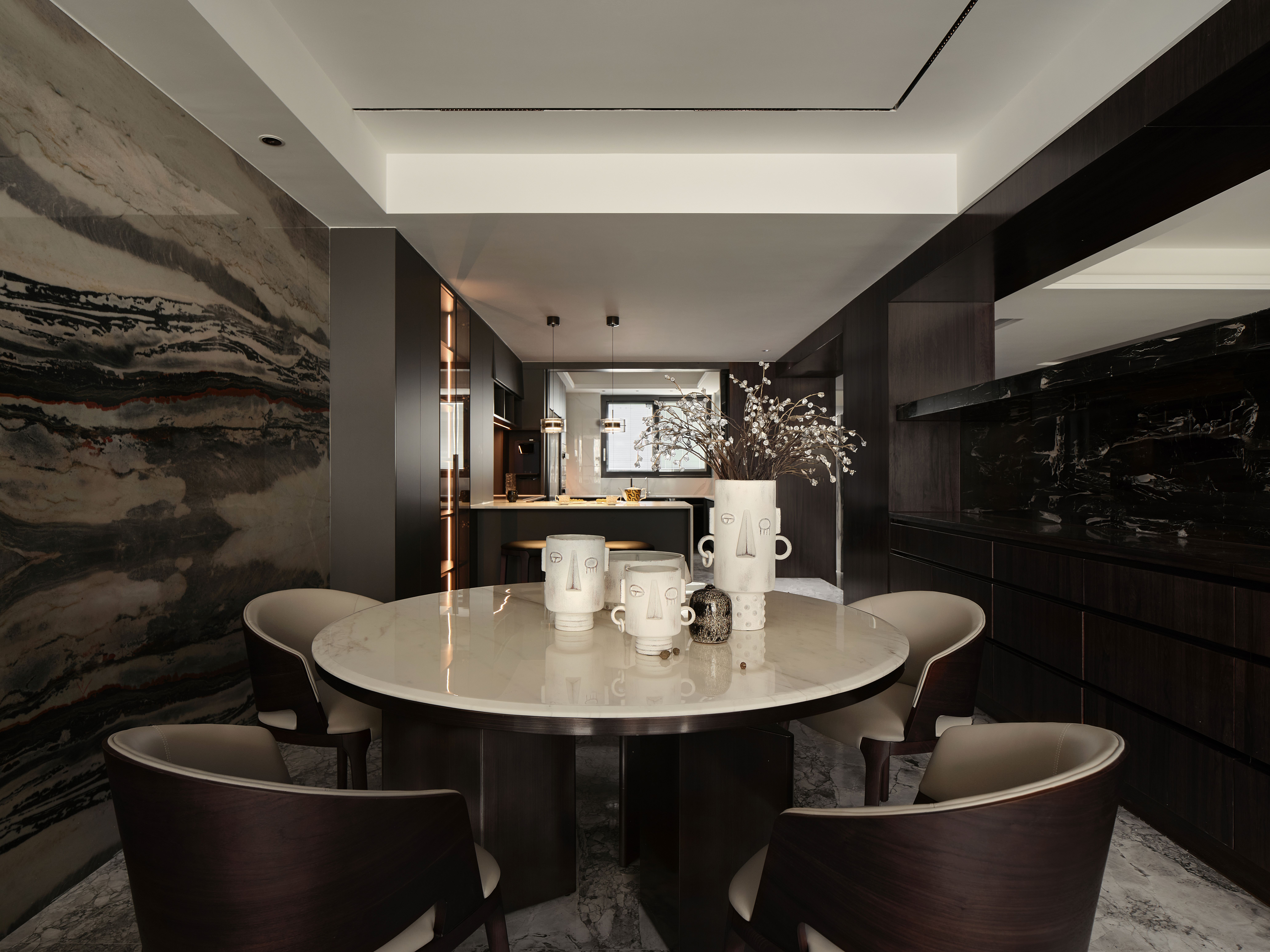 项目定位:东方美学,繁华千年的文化自信,时至今日中式审美依然璀璨,但本案是复式别墅设计落地,在用材和色彩上大量使用古朴温润胡桃实木和天然纹理石材,营造出庄高贵典雅的居住氛围,装饰造型粗狂大气,风格是现代简约,暗合中国汉代简约质朴的美学,现代装饰艺术的型内涵着东方哲学的意,表现当下国人居家中外协调融合的审美情趣。