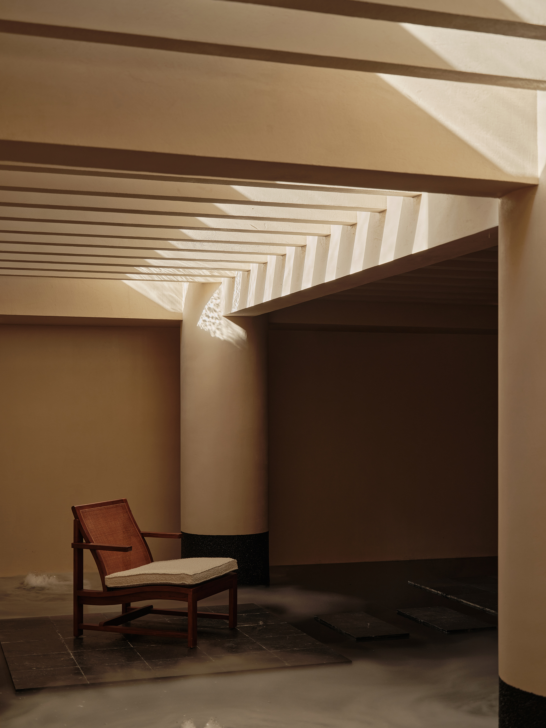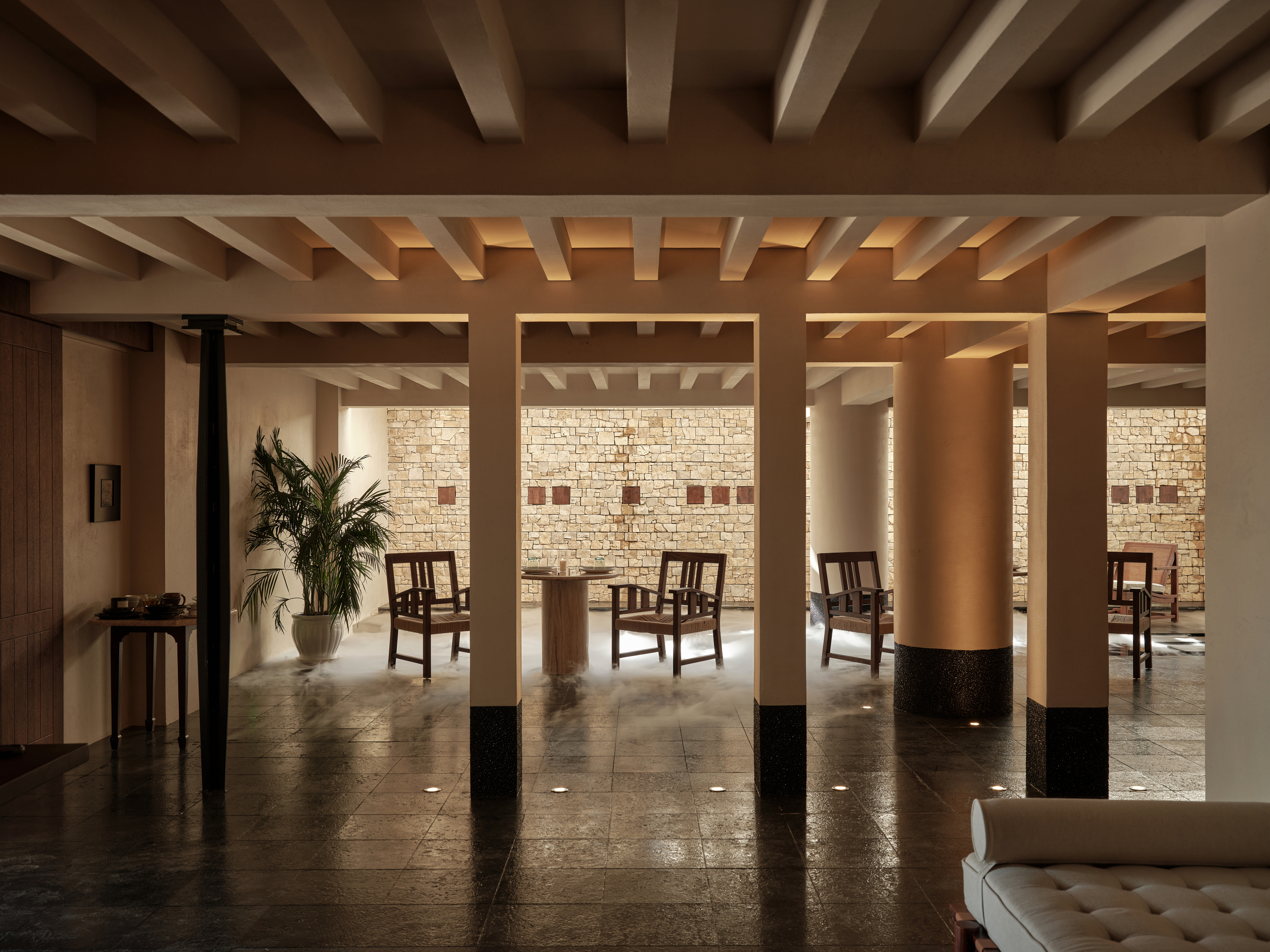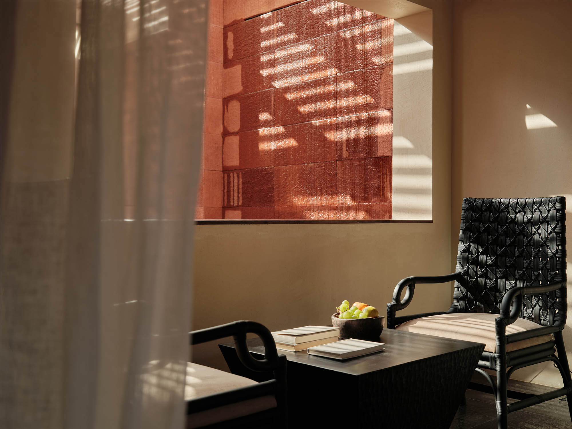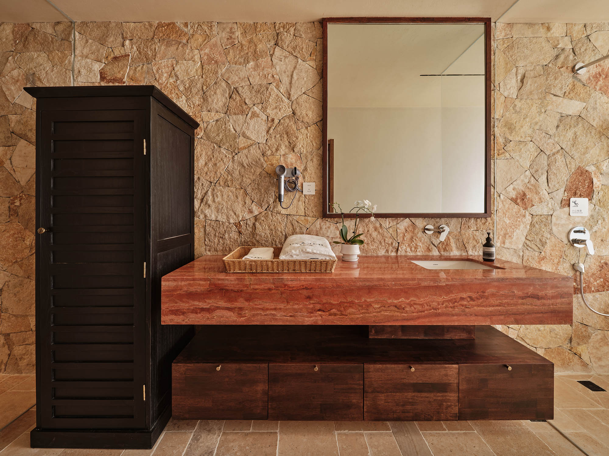 设计选材:自然主义风格,希望客人能够在充满氛围感、松弛感、情绪感的空间中,让身体和心灵都能得到休息。色调柔和,没有违和的赘饰,使用亚麻、柚木、老榆木,皮革,天然洞石等材料,相互呼应,构成和谐的整体。