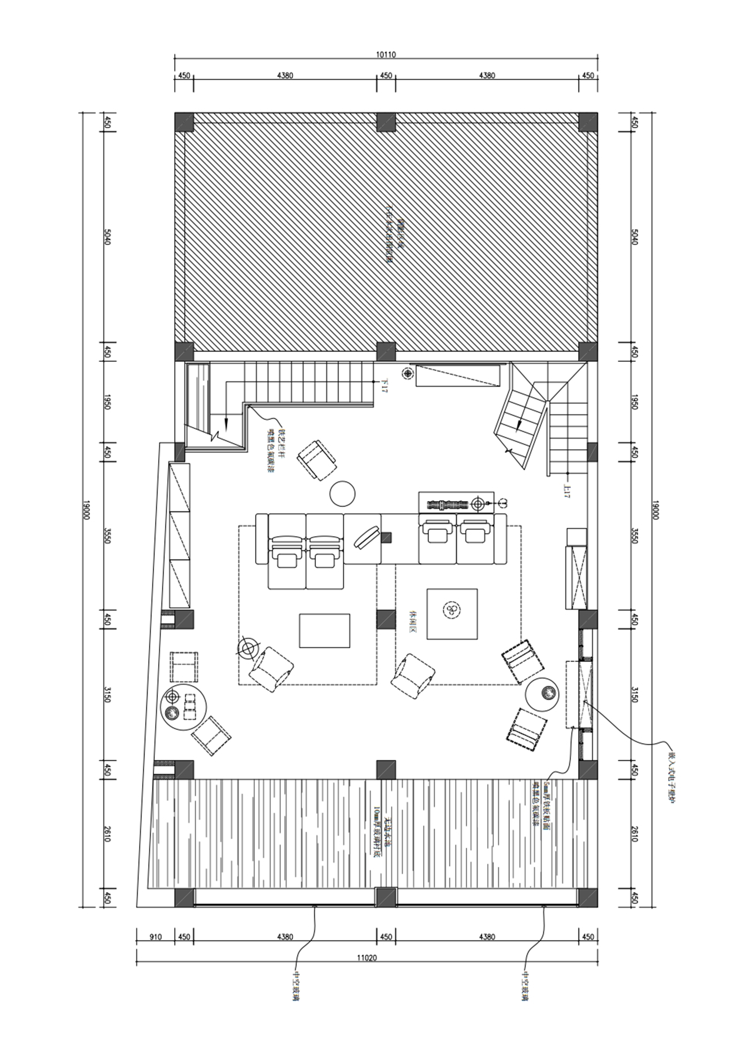 空间布局:大厅的家具布局更像来到了一个中古书店,主沙发运用了POLIFORM岛屿沙发组合环岛式设计,前后对坐,用实木茶几相连,可以更好的把柱子围绕在里面,最大限度的利用空间。满足多组客人同时在公区活动时,互不干扰