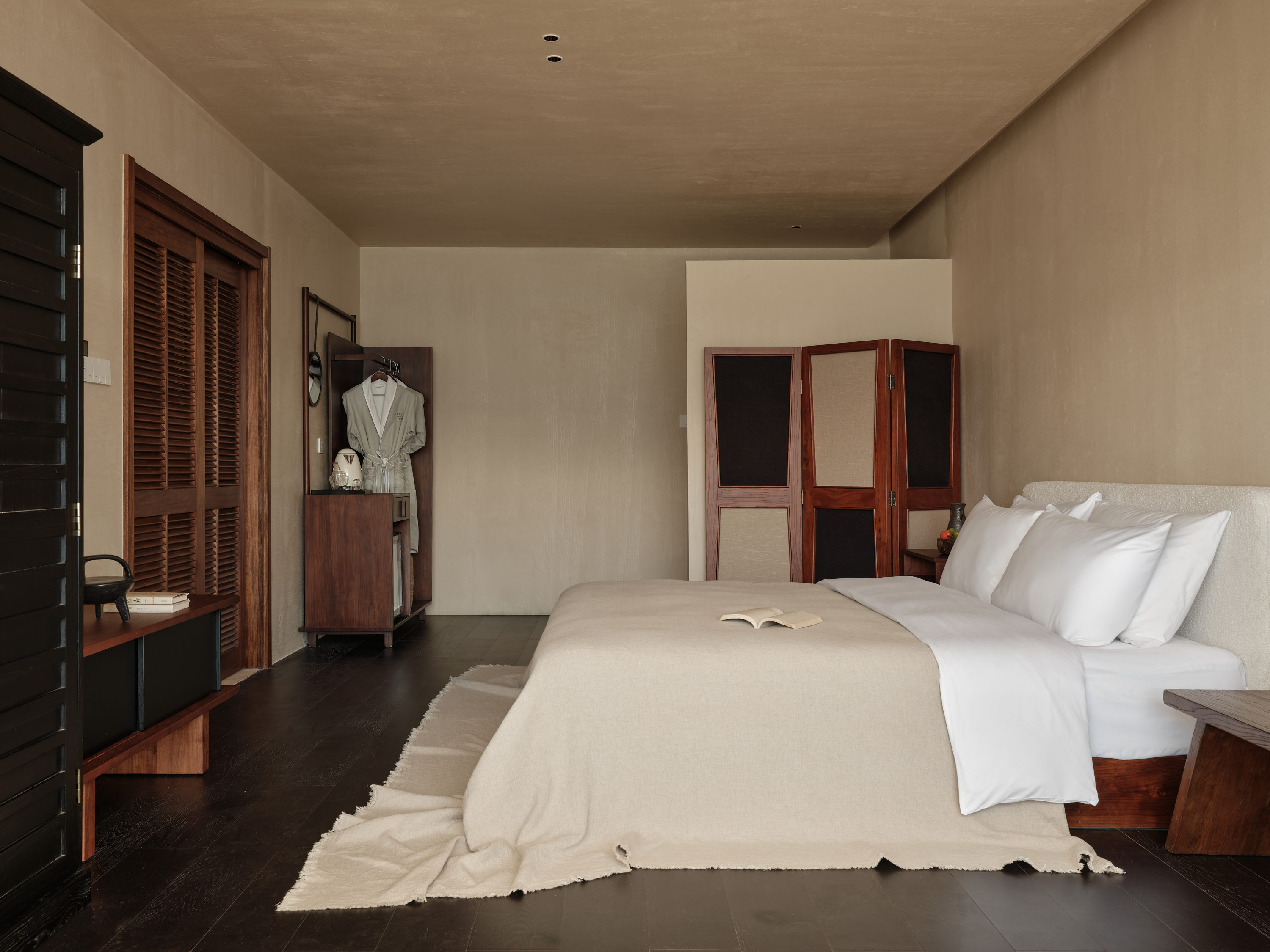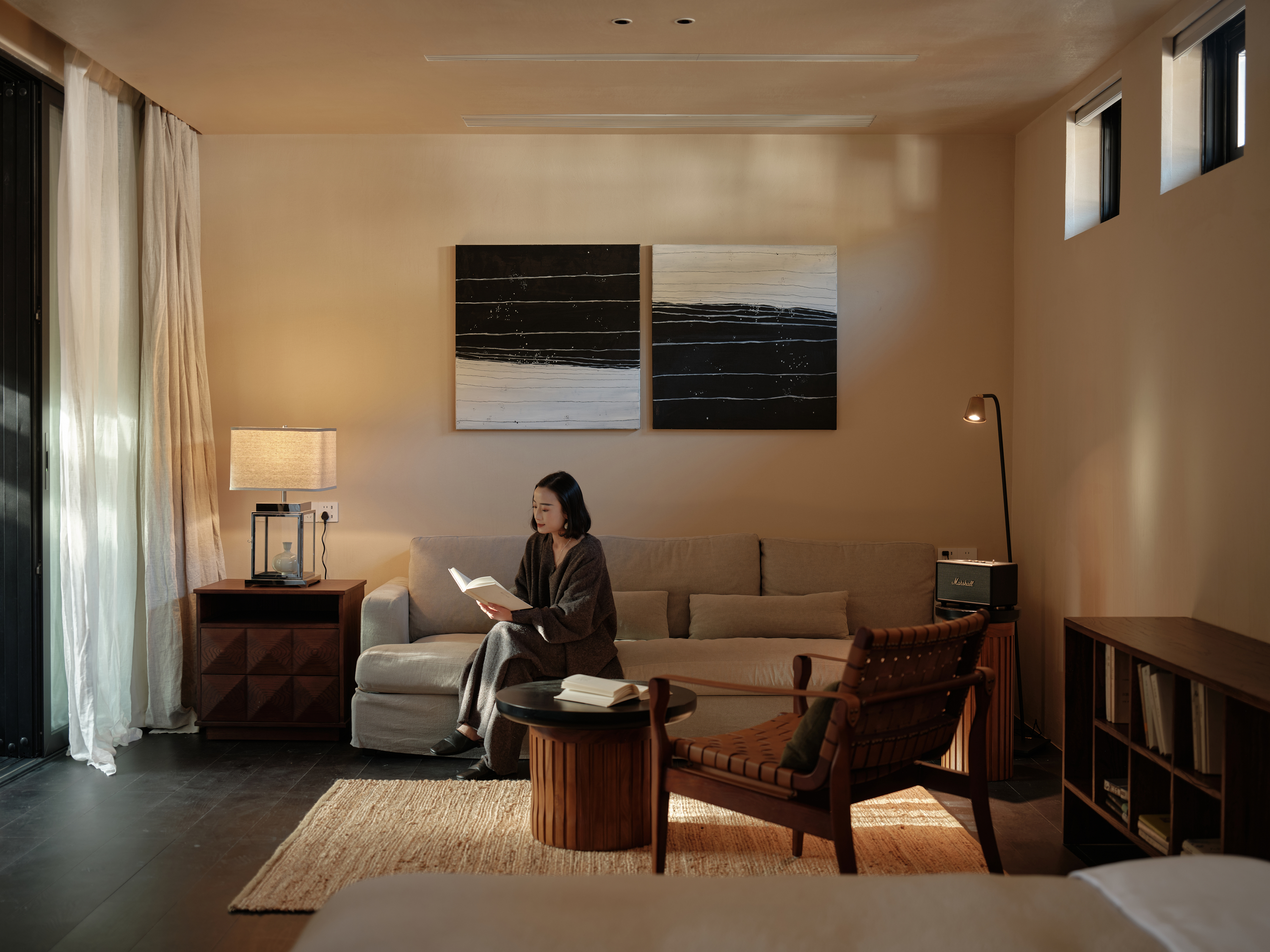 项目定位:法国哲学家加斯东·巴什拉曾在《空间的诗学》中指出,空间并非填充物体的容器,而是人类意识的居所。当我设计空间之时,也在考虑人与空间的关系,并希望所有的器物都是符合当下审美,本项目的软装产品由设计师把控出品,从家具的深化设计、木材和面料的选择,再到色板反复打样,每一处细节都是匠心的呈现。项目的定位为精品度假民宿,给客人带来放松治愈的度假体验