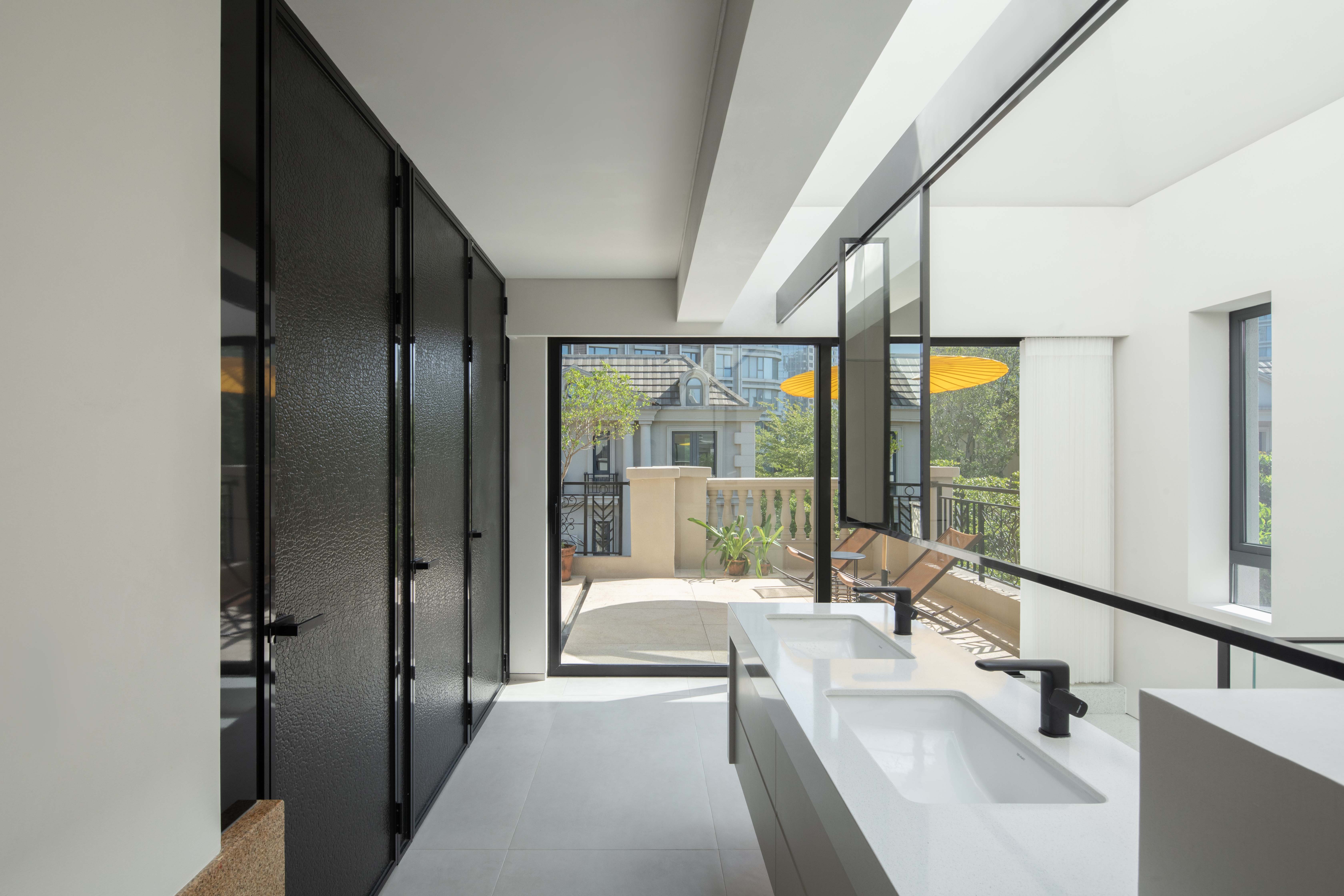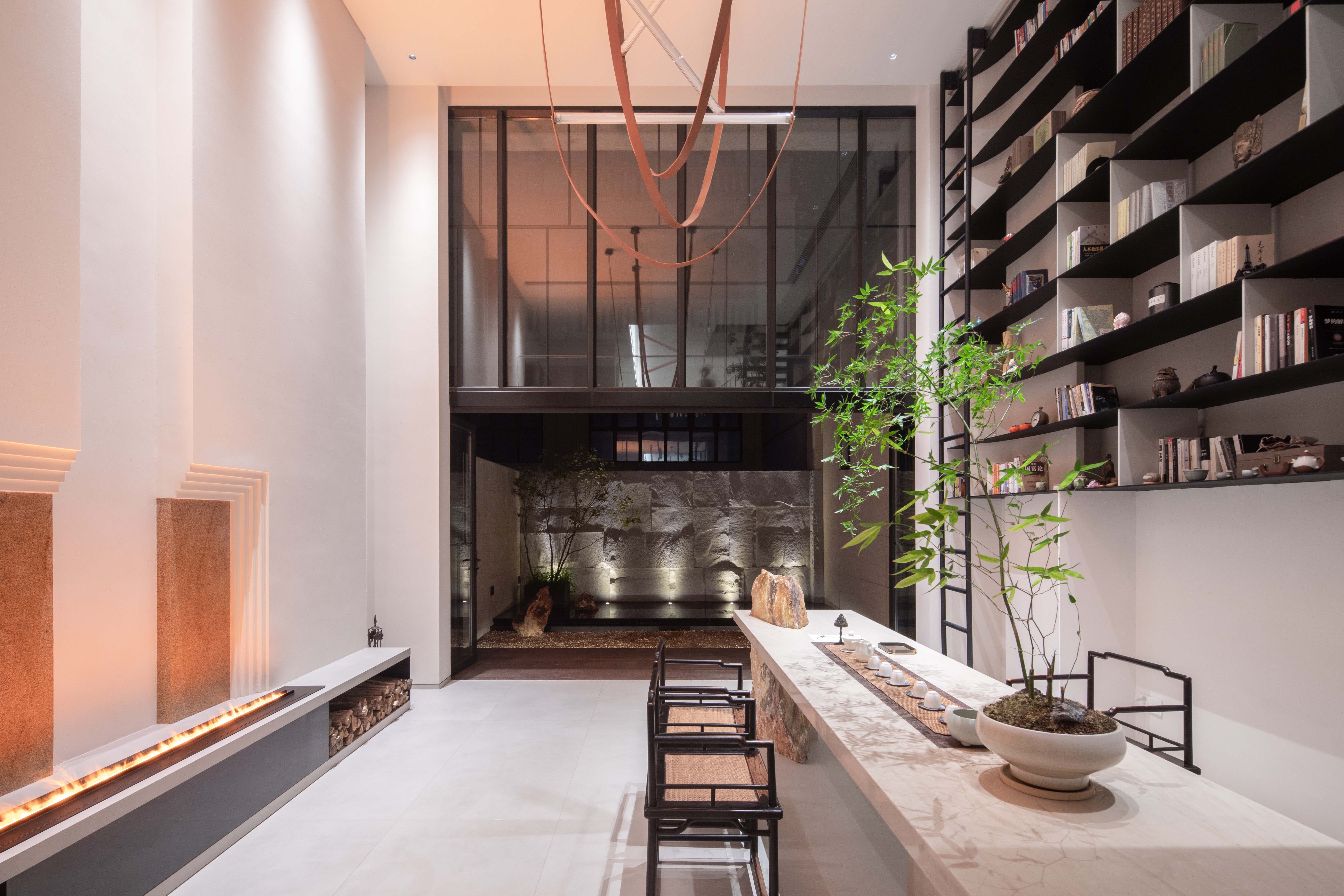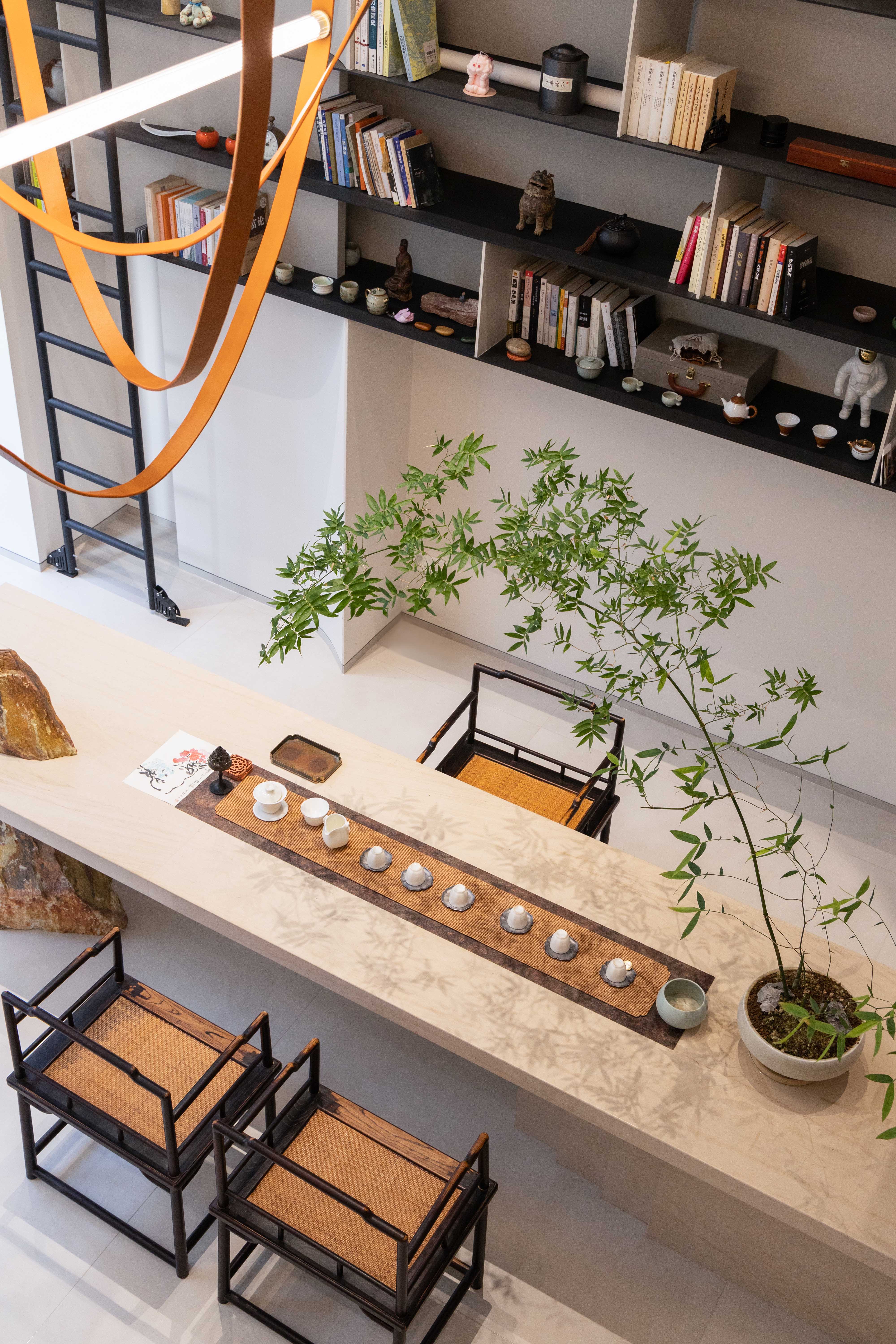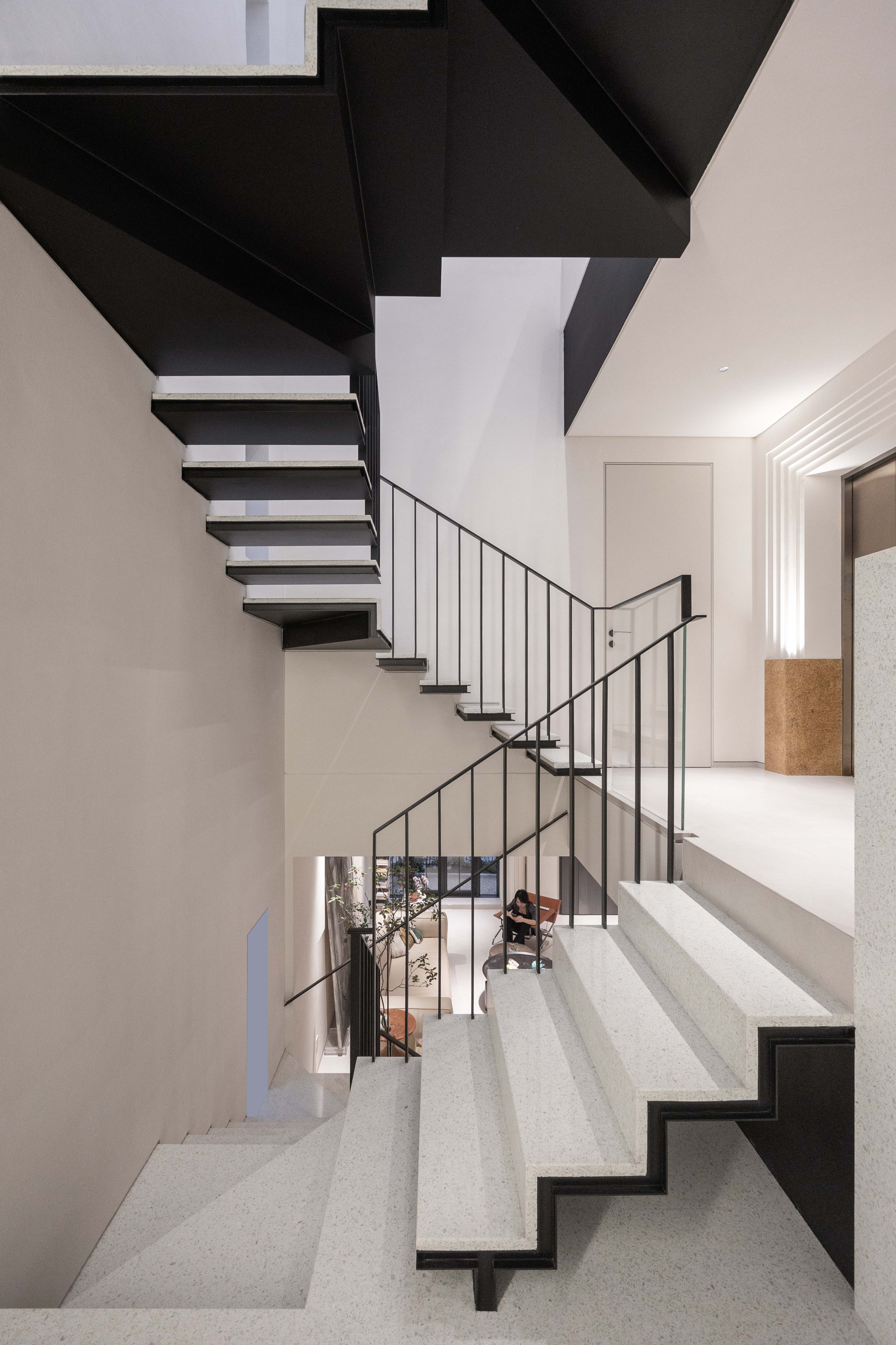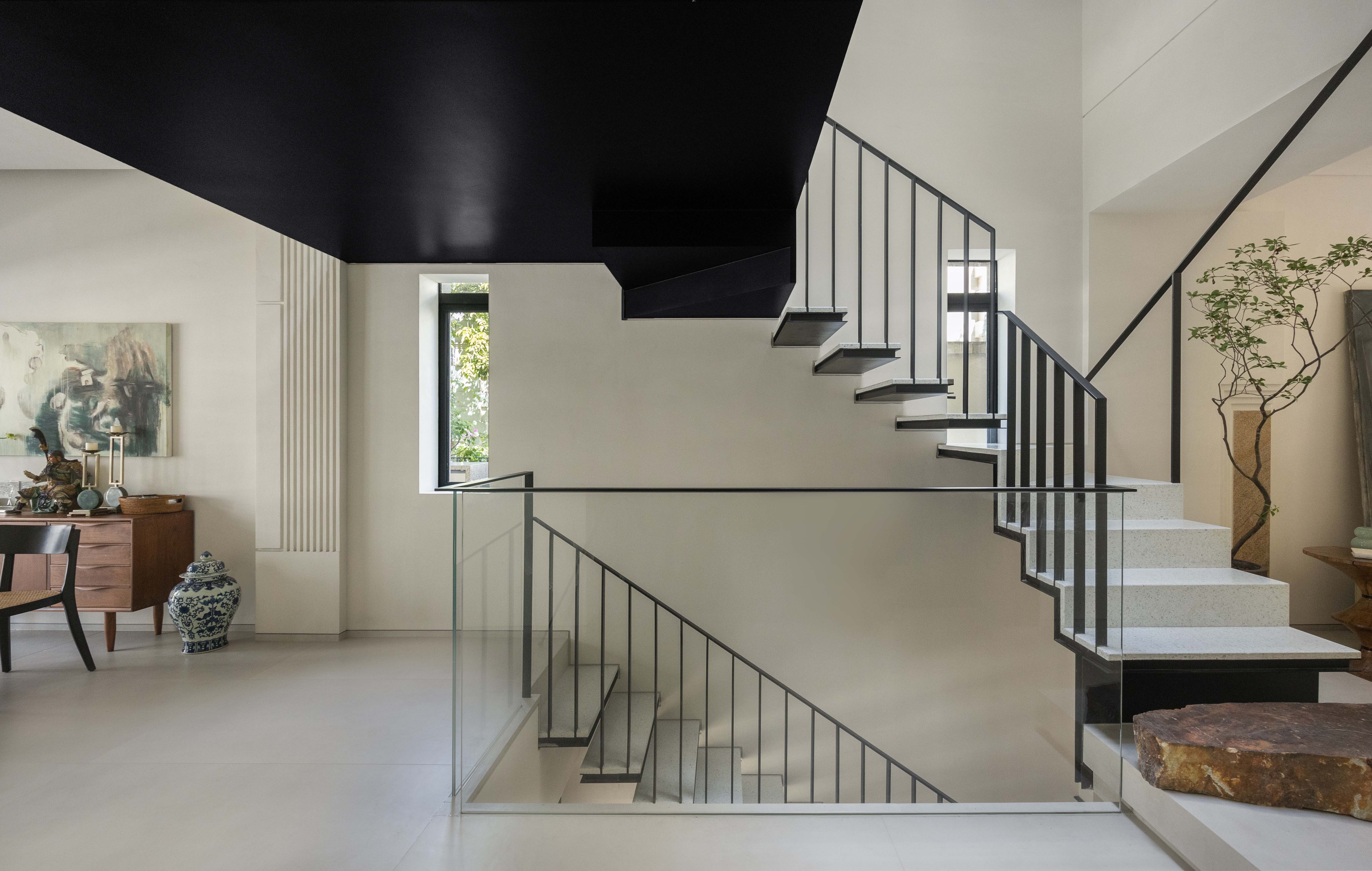 (2)空间是光的容器,本案充分利用了挑空处的层高和天井的自然采光,让人与自然产生“光合作用”,温暖的、质感的生活场景,在空间肆意洄流。