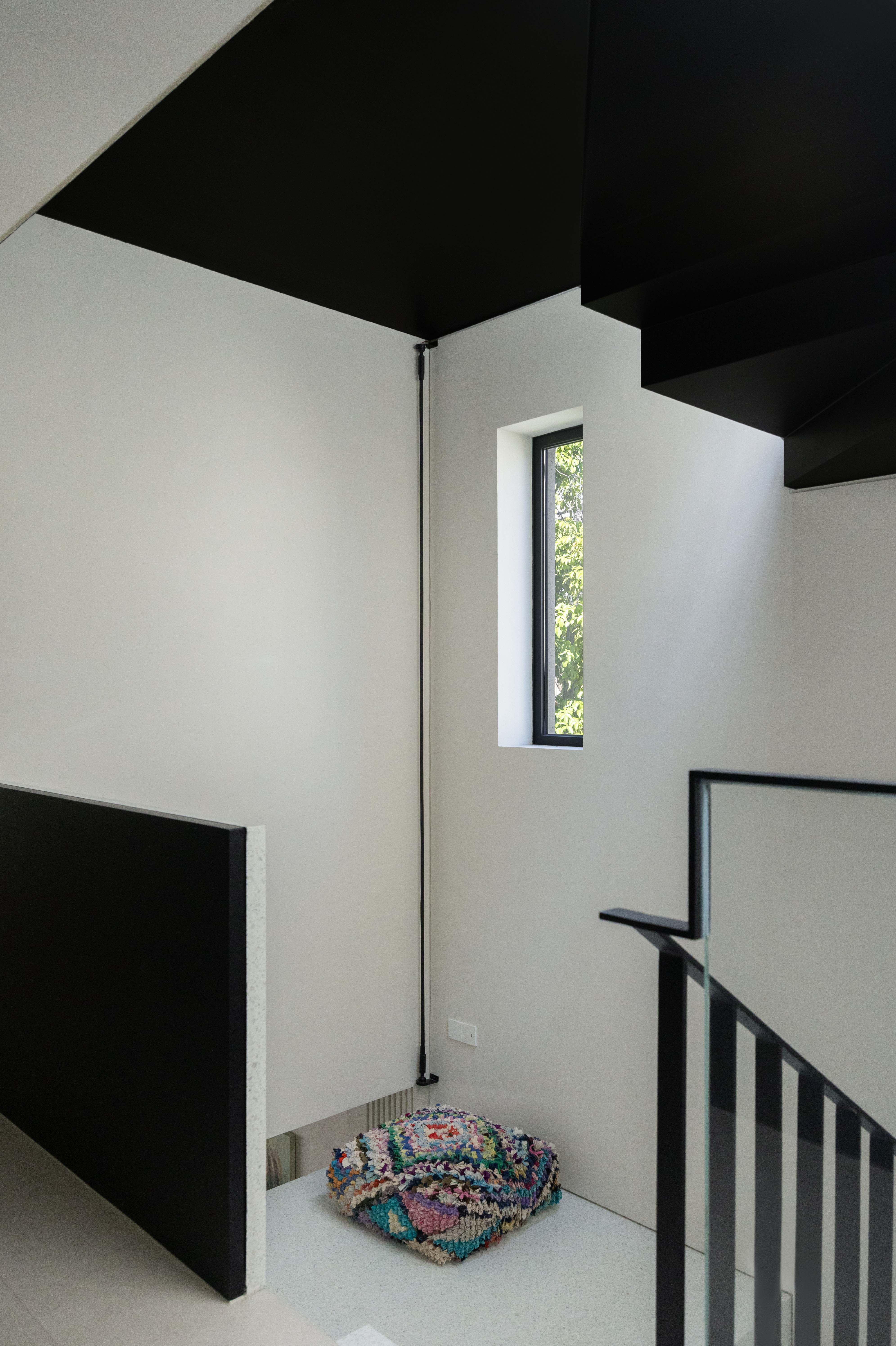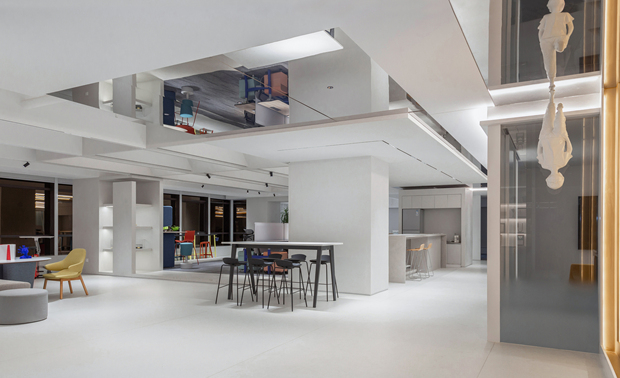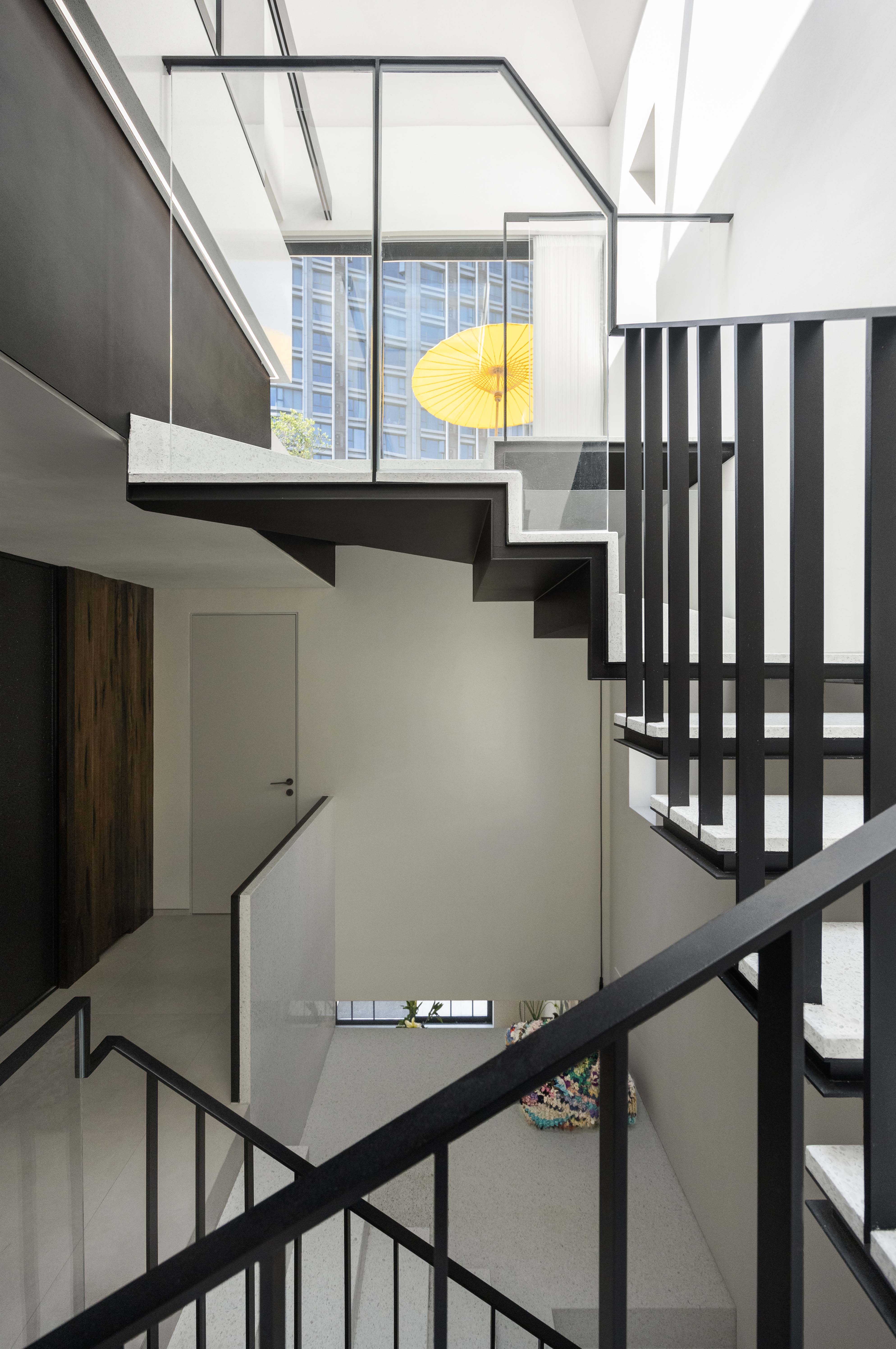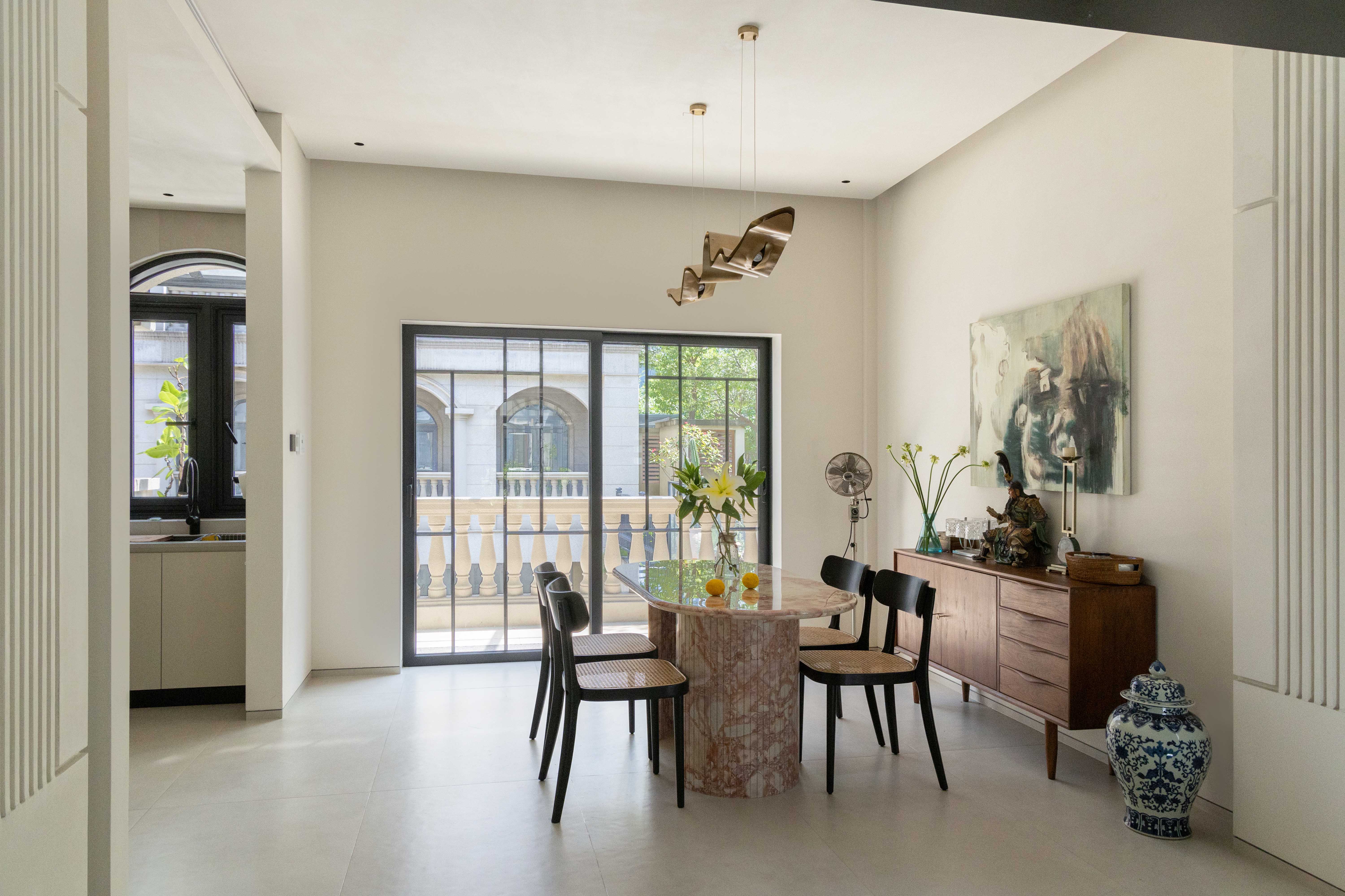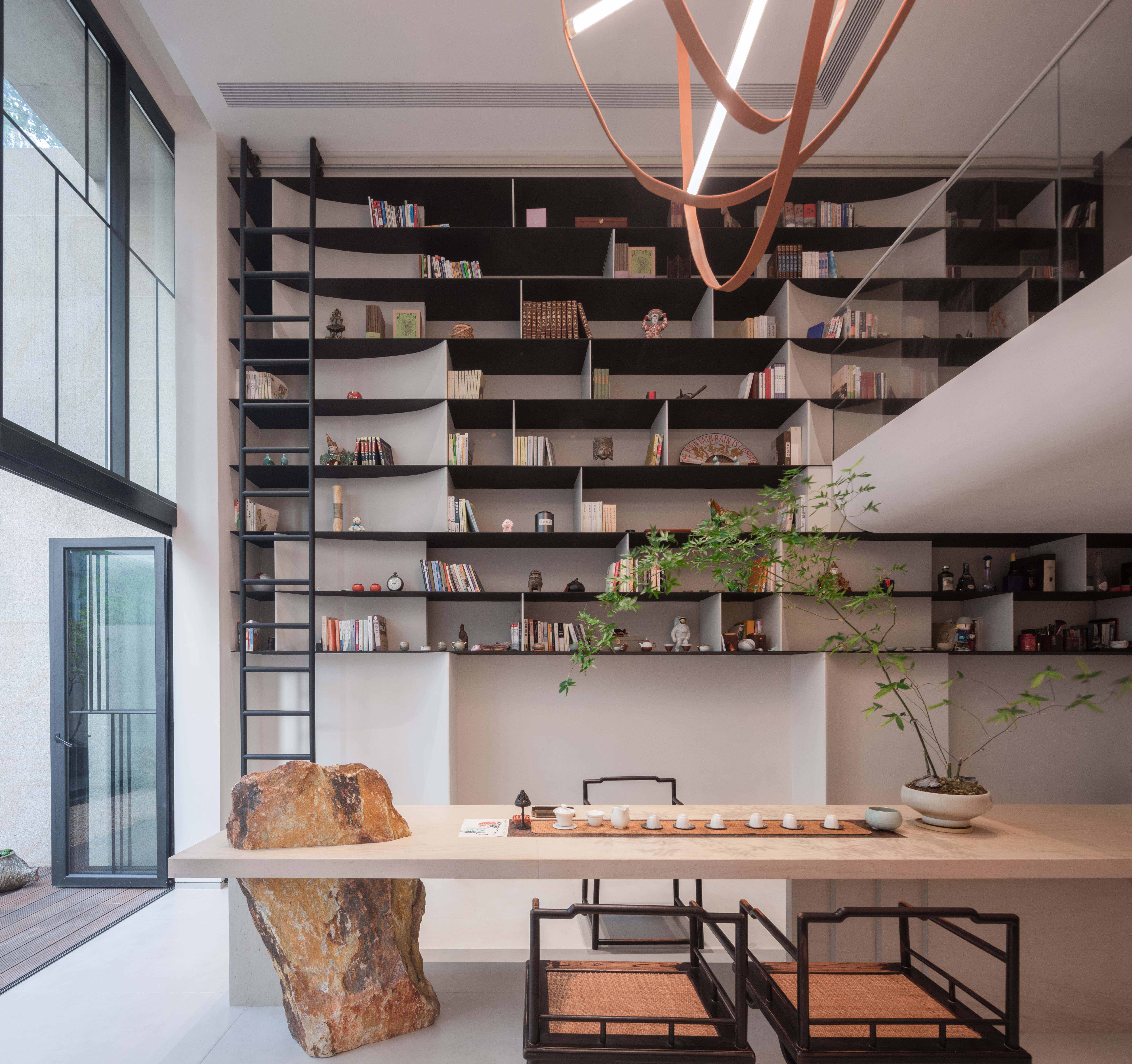 (2)空间是光的容器,本案充分利用了挑空处的层高和天井的自然采光,让人与自然产生“光合作用”,温暖的、质感的生活场景,在空间肆意洄流。