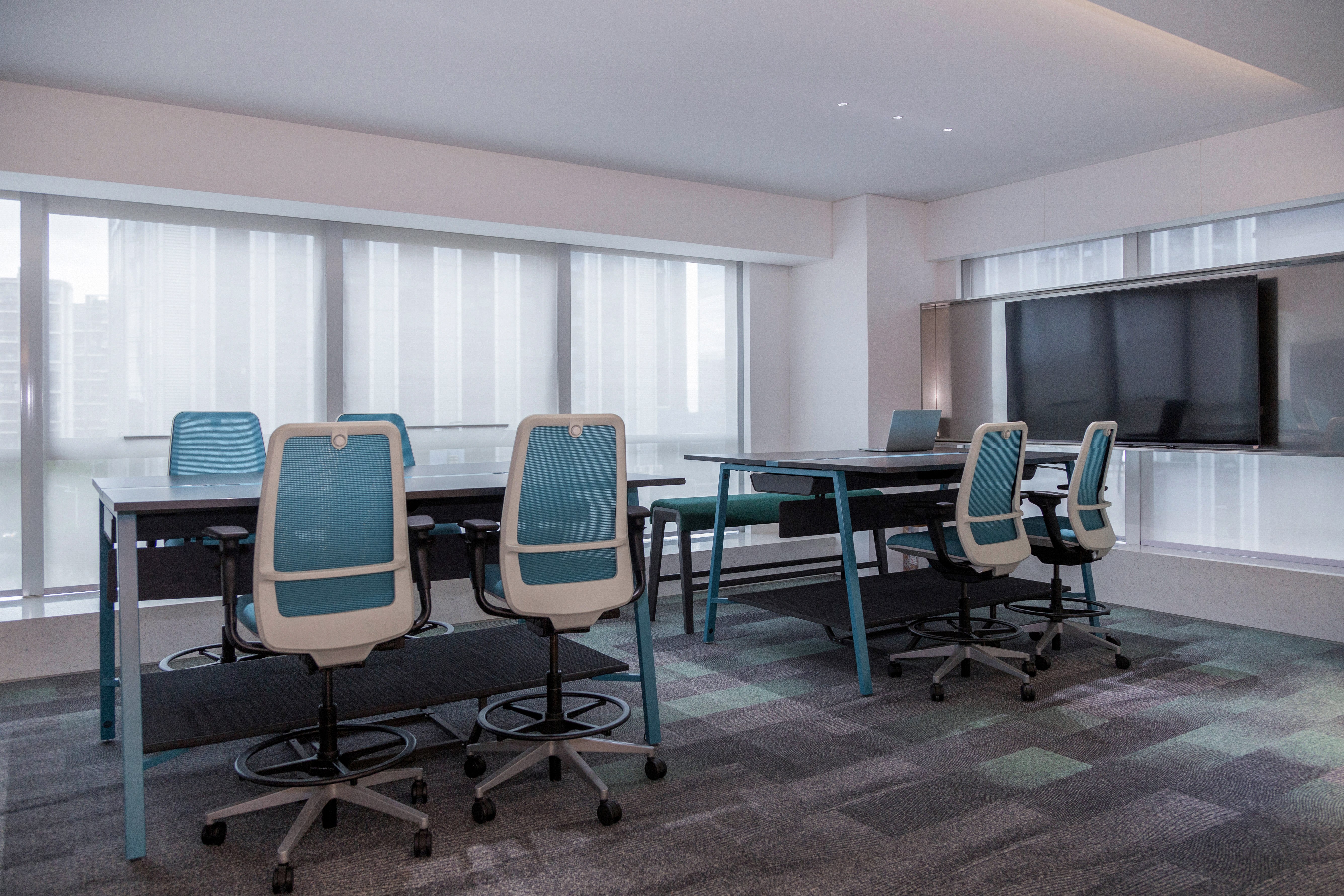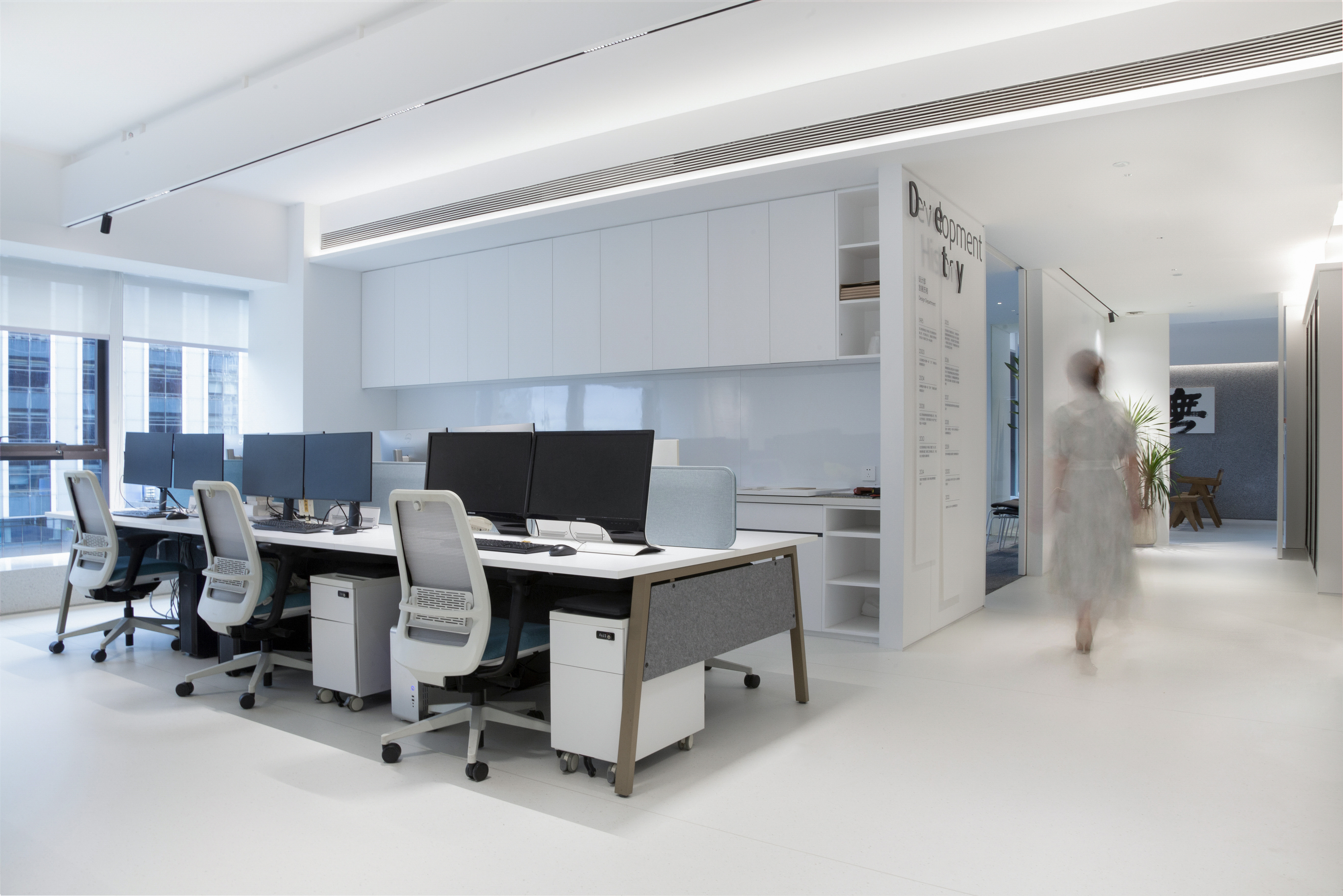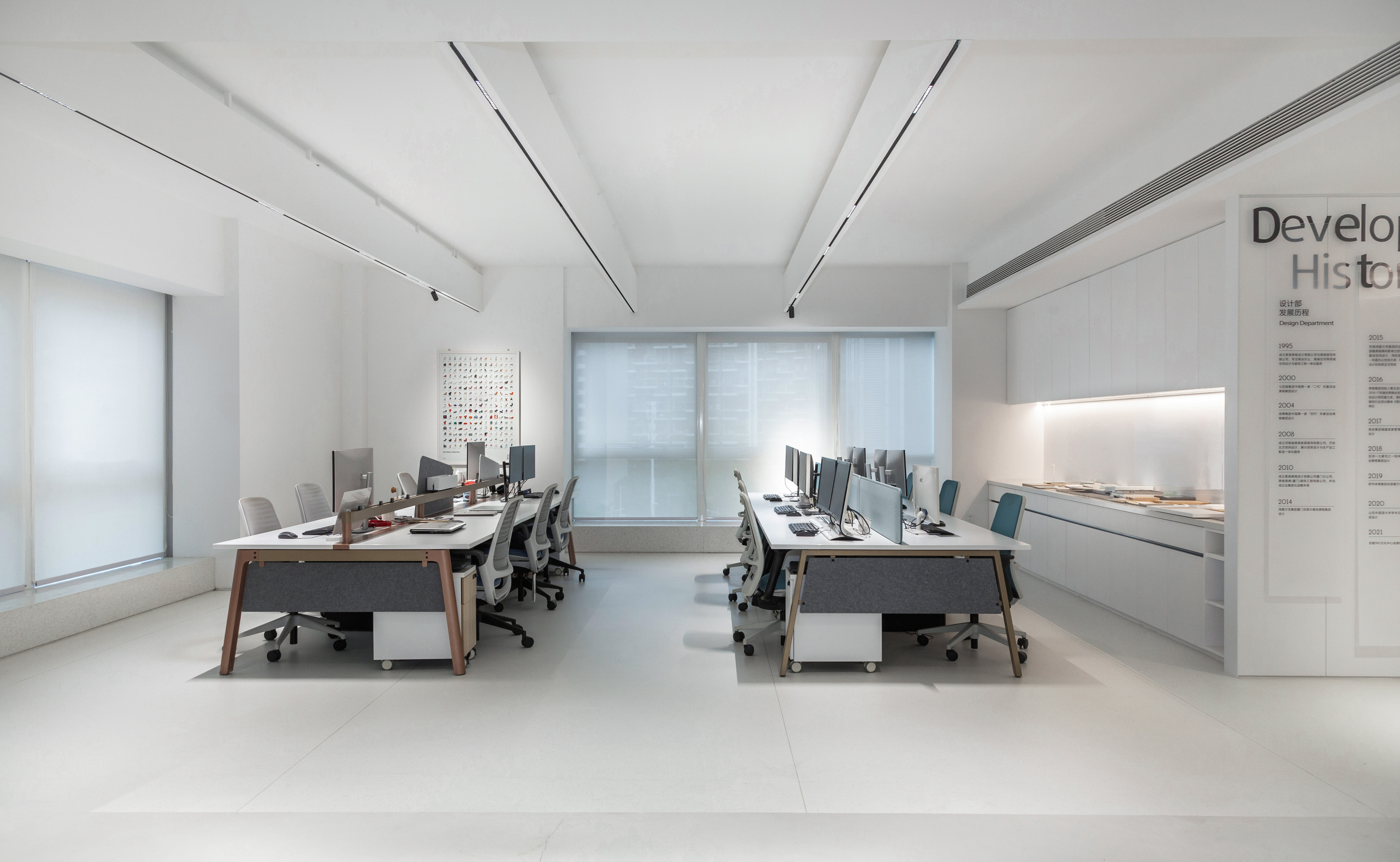 (3)办公桌椅选用Steelcase品牌,符合人体工学的设计,让办公更舒适、健康,同时搭配多种绿植,满目绿色自然,提升室内空气质量的同时,也成为了员工的“绿色疗愈岛屿”。
