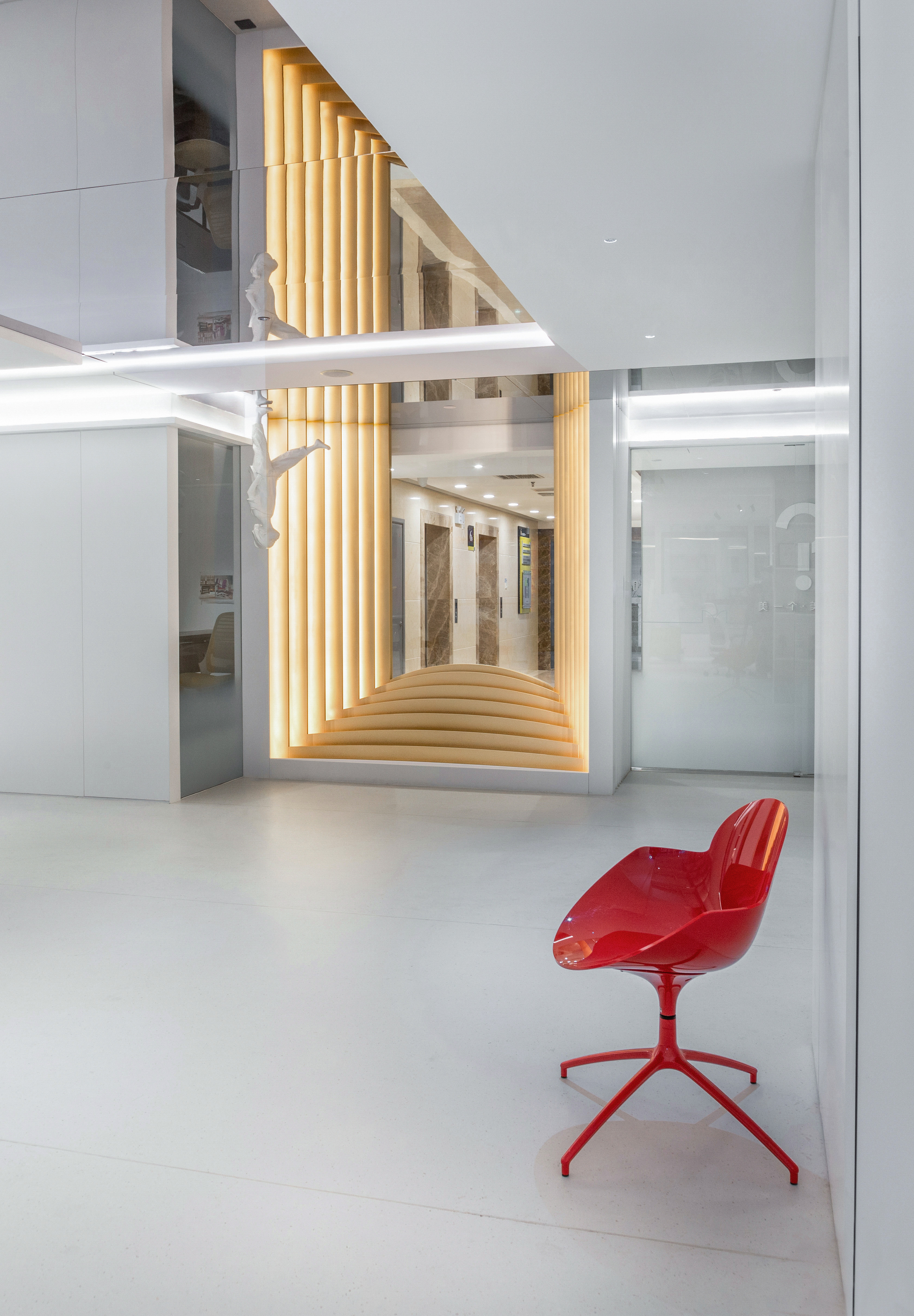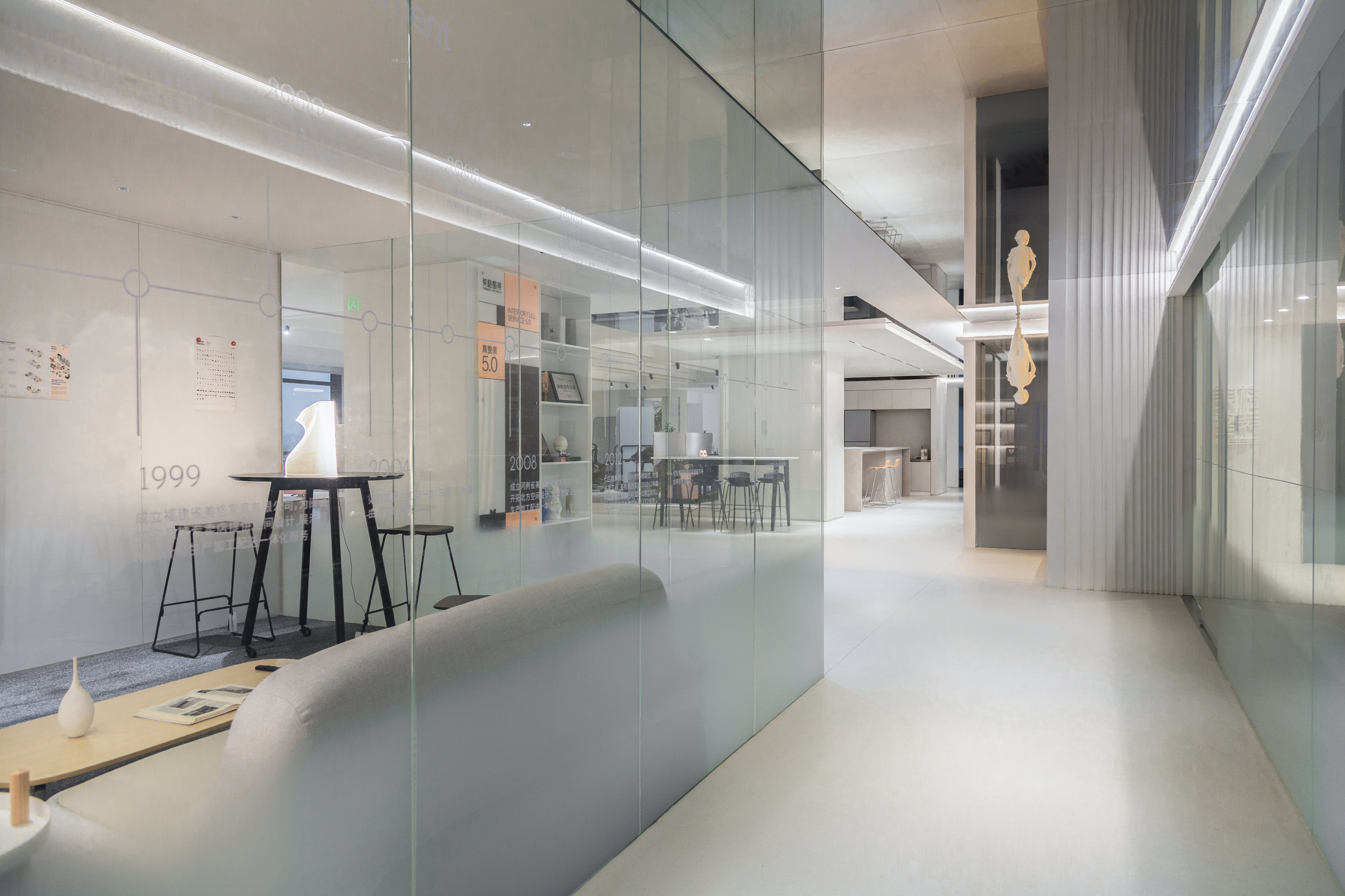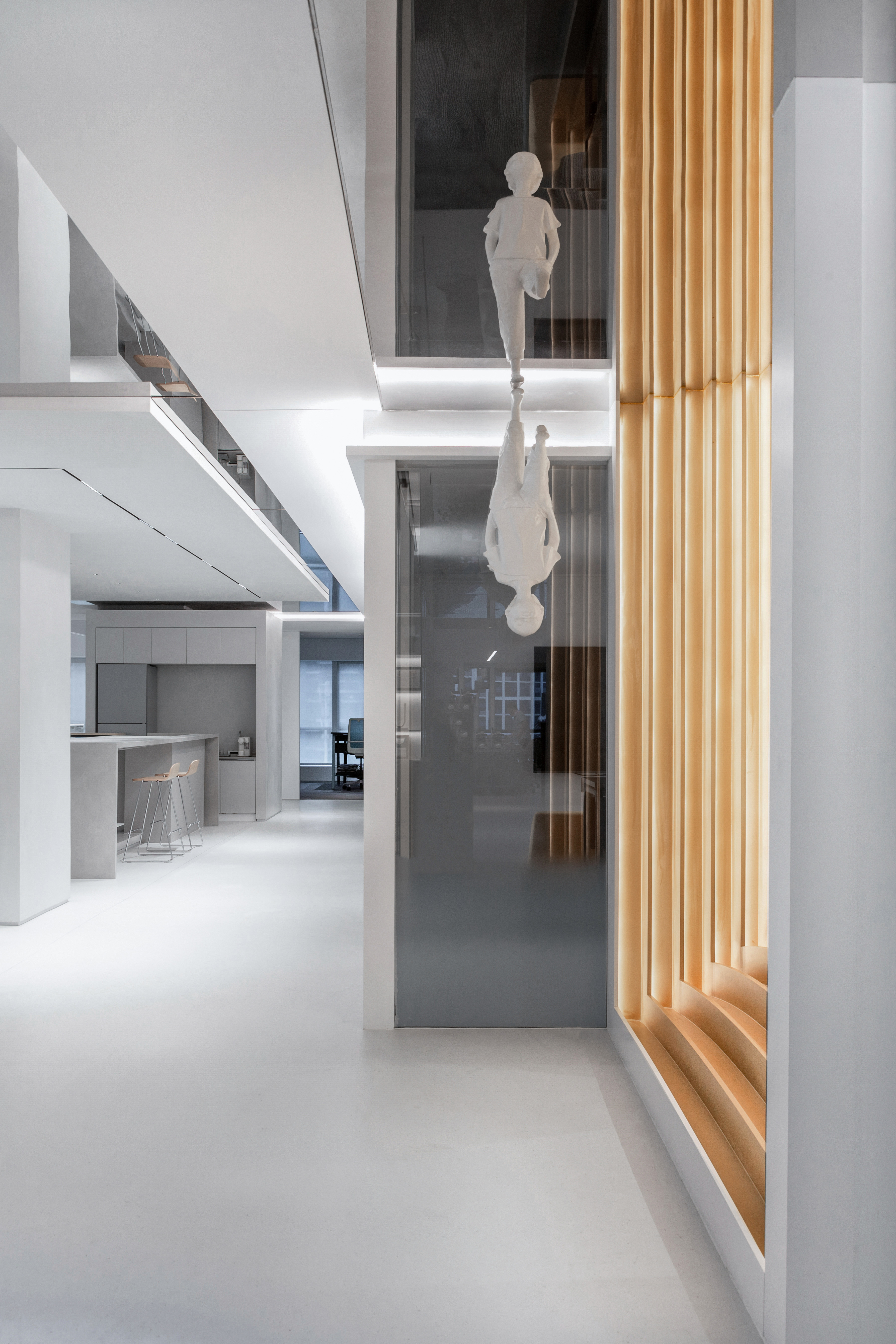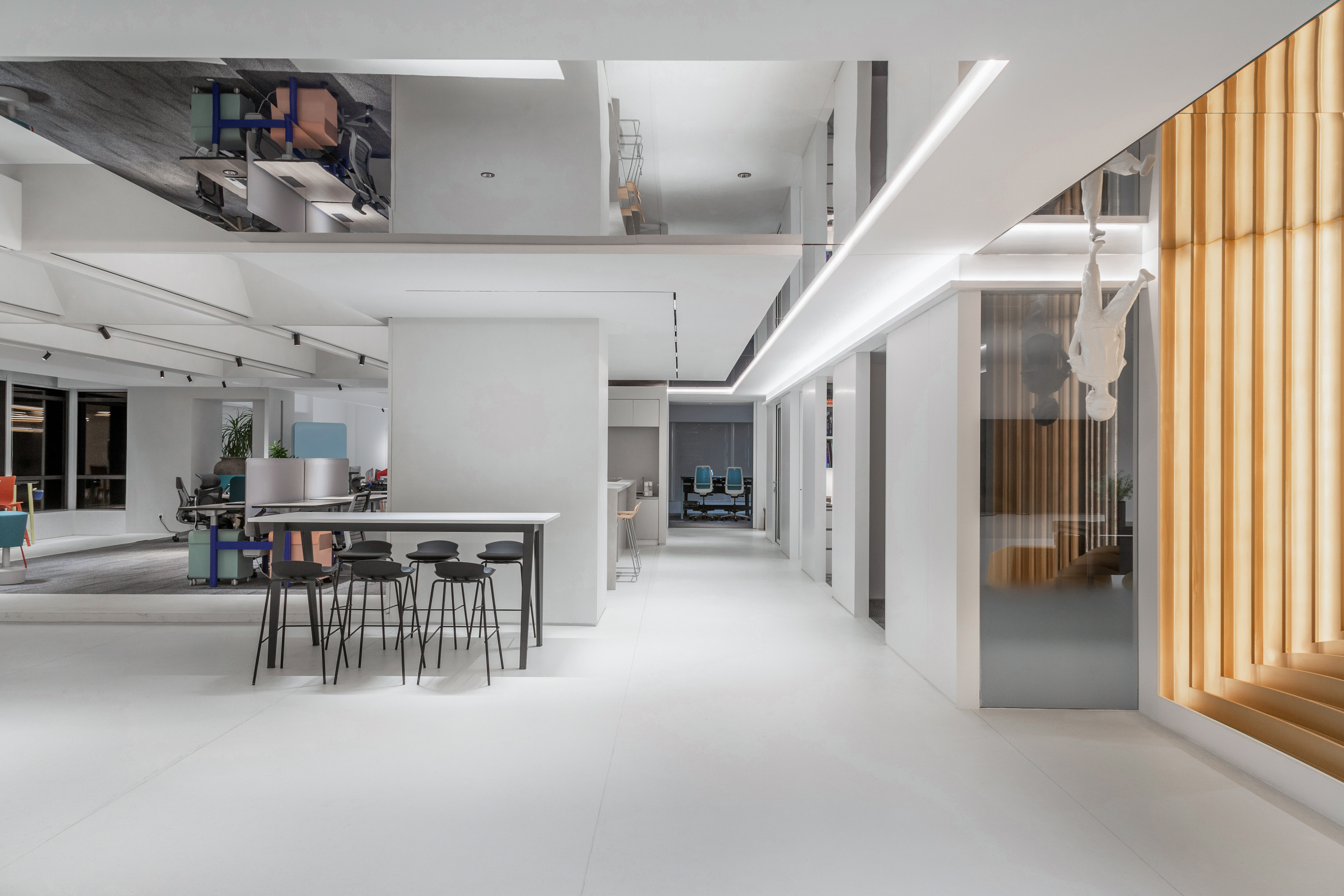 对新一代工作者而言,办公室正从“组织价值生产车间”,转变成“共同价值实现平台”。积极拥抱办公空间变革的新赛道,本案将“办公室”解读为:身份认同空间,不仅是一个灵感链接的设计现场、一个松弛社交的放映厅,也是一个自我气质的展现空间,让灵感与空间对话,让艺术“转译”品牌文字,以此实现身份认同,价值共生。