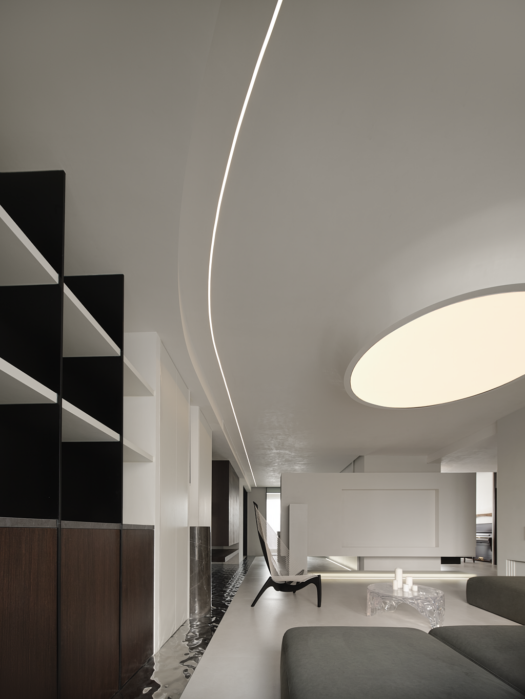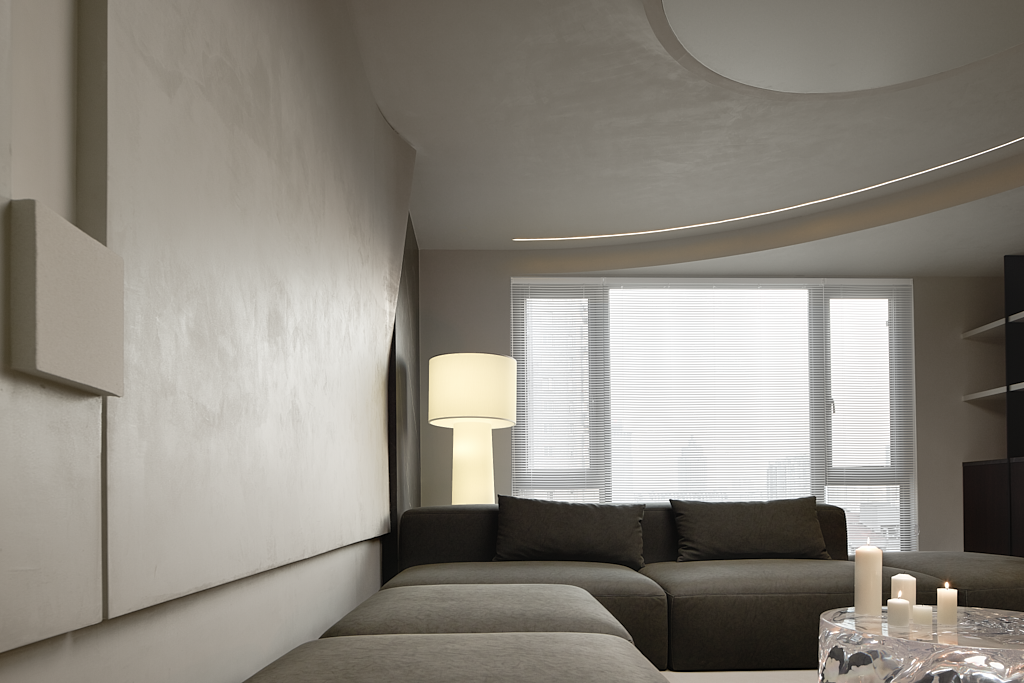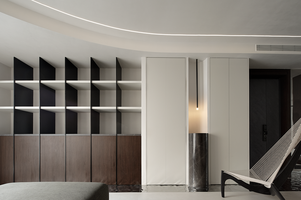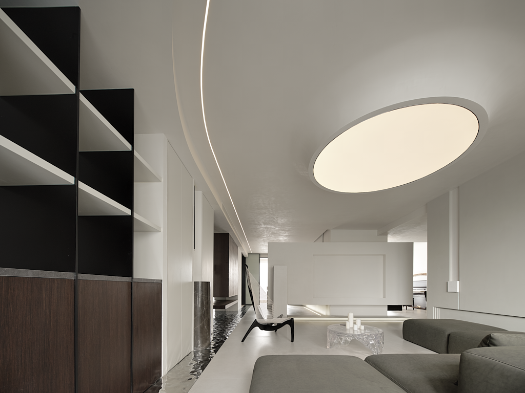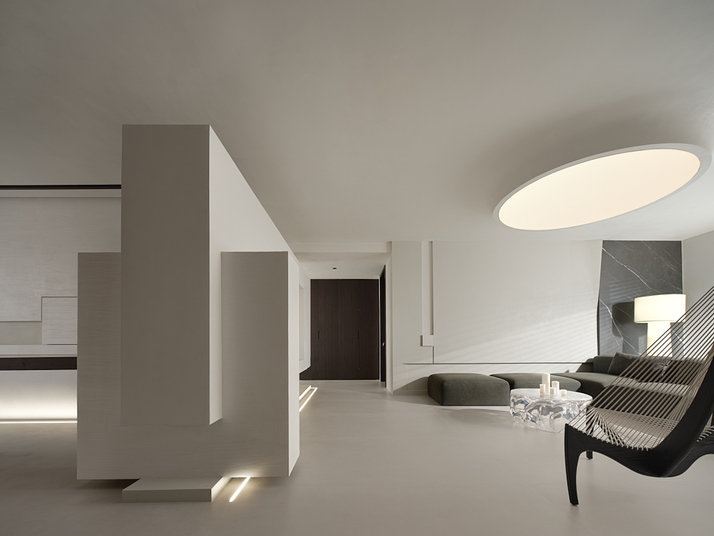 客厅为一切的伊始,设计师置入自身建筑型思维,注重细节和建筑构造的美感,为空间创造穿插、秩序、联动,使其纯粹、文艺、梦幻……干净灵动的线条,和疏密有度的布局,构筑出极具空灵感的艺术空间。