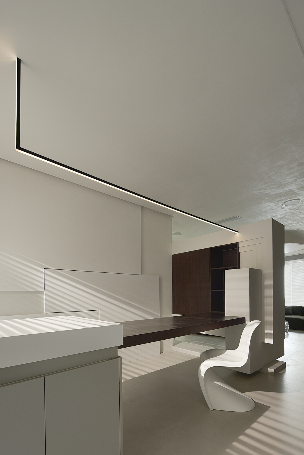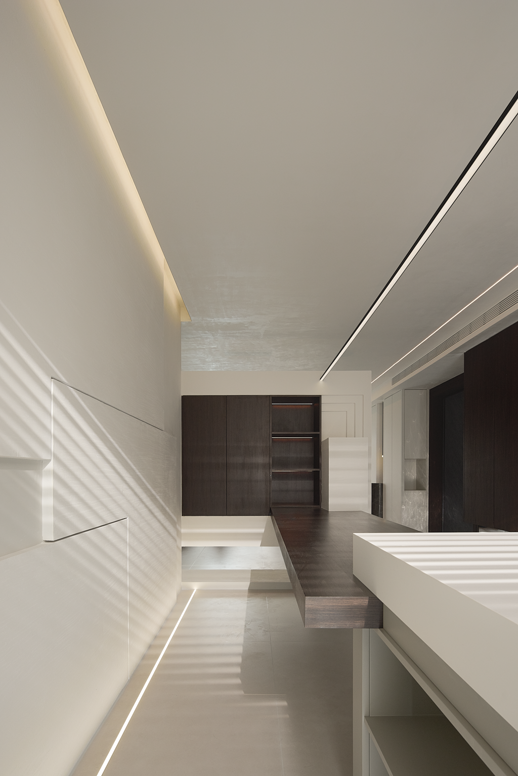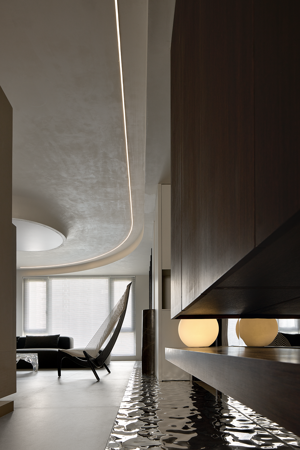 客厅为一切的伊始,设计师置入自身建筑型思维,注重细节和建筑构造的美感,为空间创造穿插、秩序、联动,使其纯粹、文艺、梦幻……干净灵动的线条,和疏密有度的布局,构筑出极具空灵感的艺术空间。