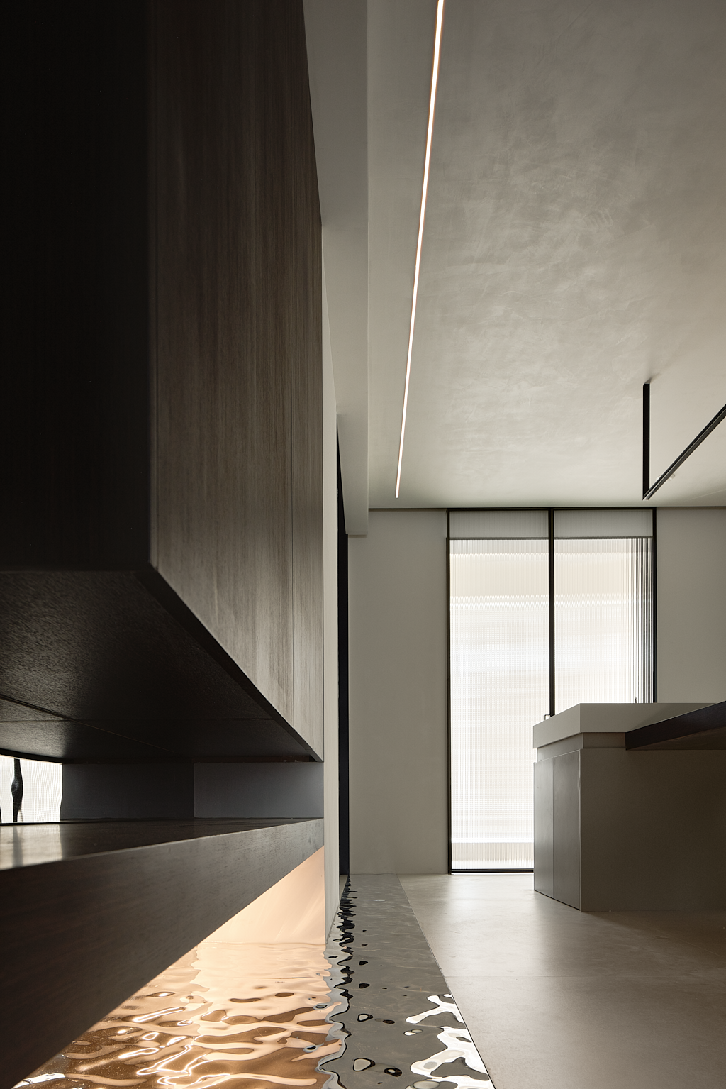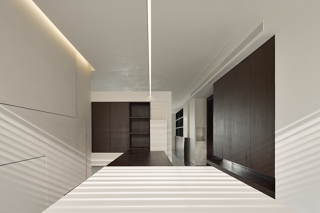 餐厅内,空间形态与层次丰富黑、白、灰三色在此重新组合。空间界定的风格和现代生活的美学,令人心境得到全然的放松。极简主义与人的情感产生细腻共鸣,艺术气息在空间内缓缓流动。