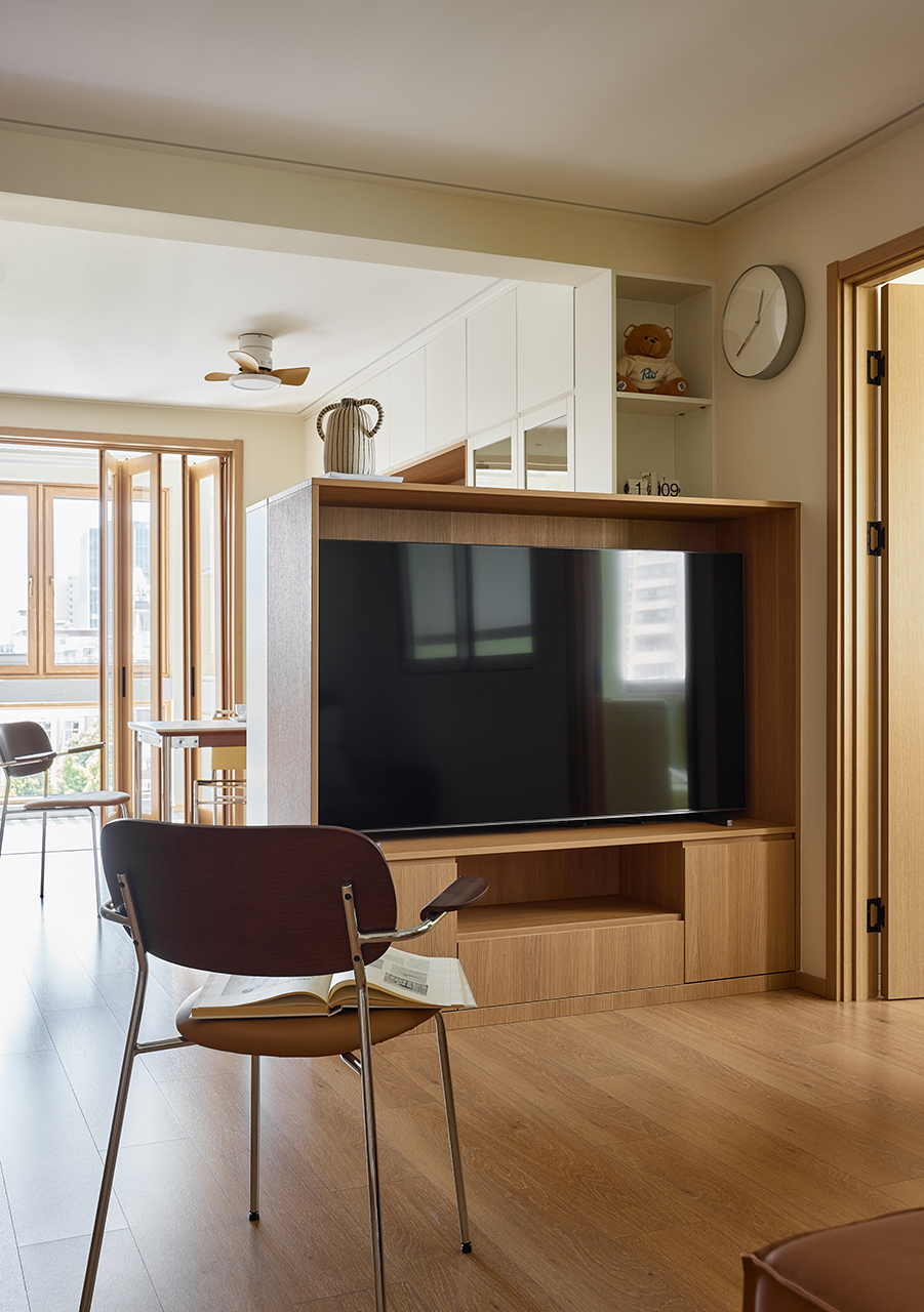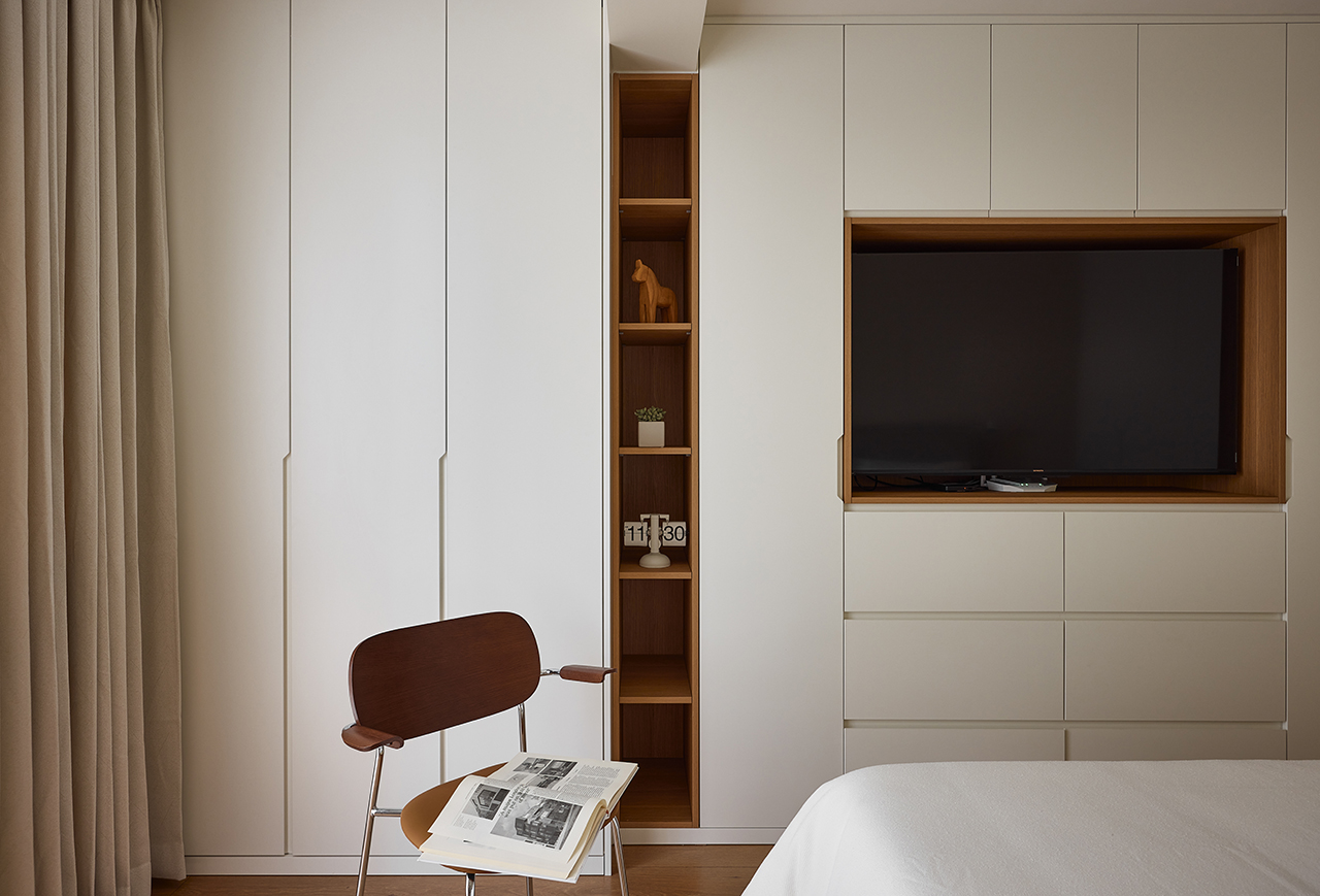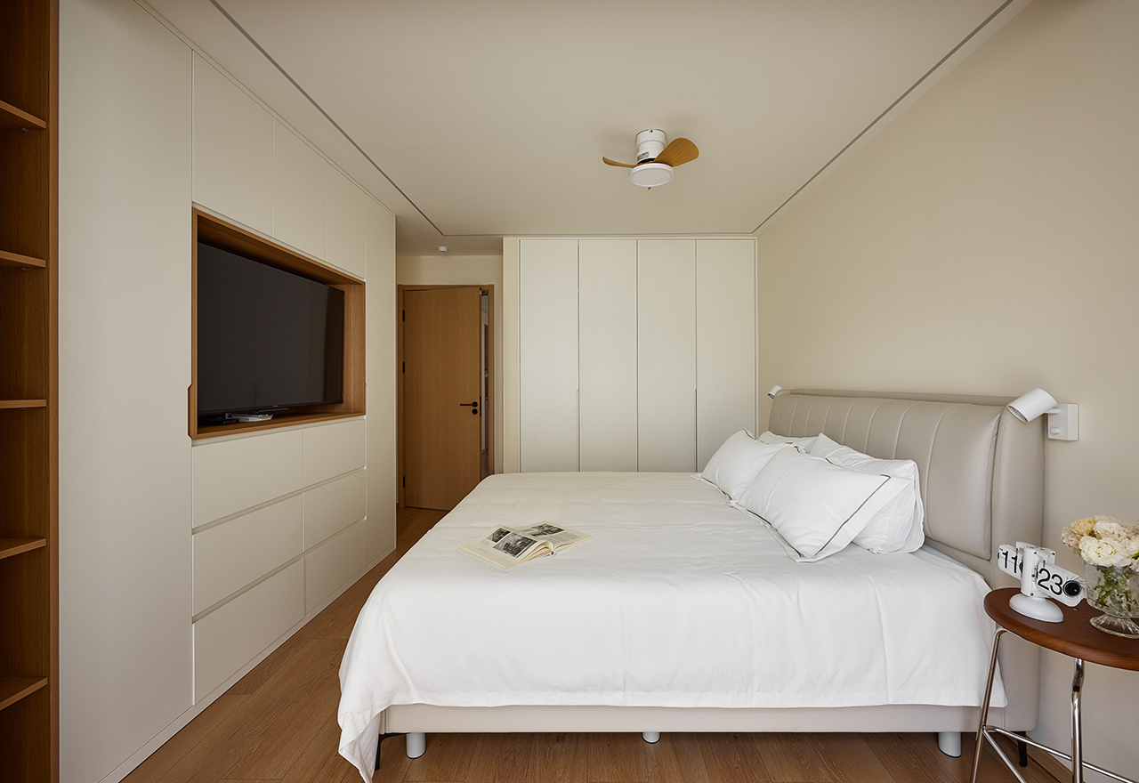 本次改造项目的环境风格创新点主要体现在空间布局的优化与功能性的深度整合上,同时融入了温馨、明亮与舒适的家居氛围。现代元素与温馨氛围交织,形成了一种独特的视觉美感。整体色调以白色搭配原木色,自然舒适为主,搭配精心挑选的家具与装饰,营造出一种宁静而雅致的生活氛围。同时,设计师在布局上注重实用性与互动性,通过巧妙的空间划分与功能整合,实现了空间的最大化利用,满足了居住者多样化的生活需求。