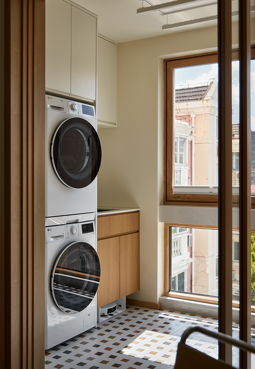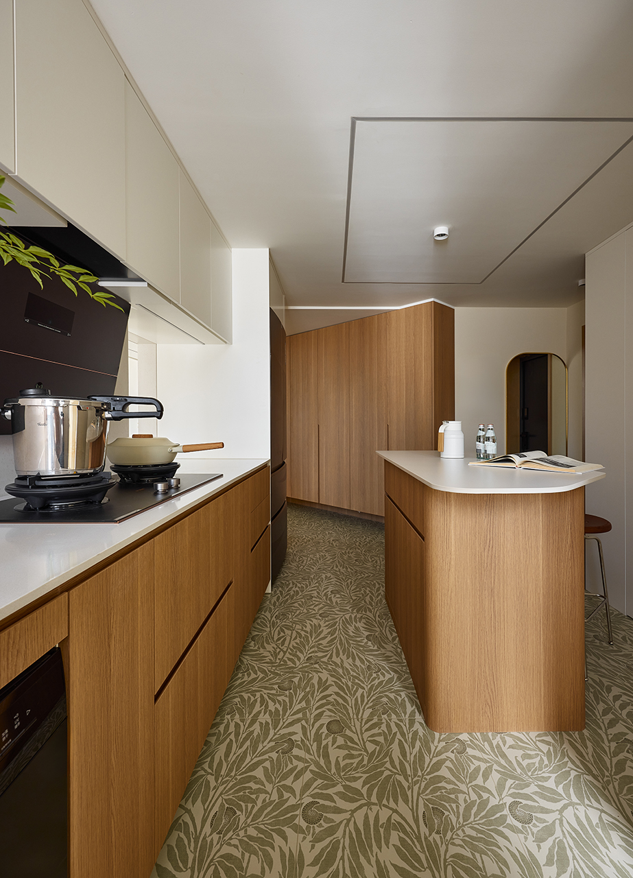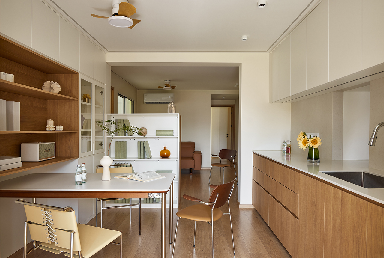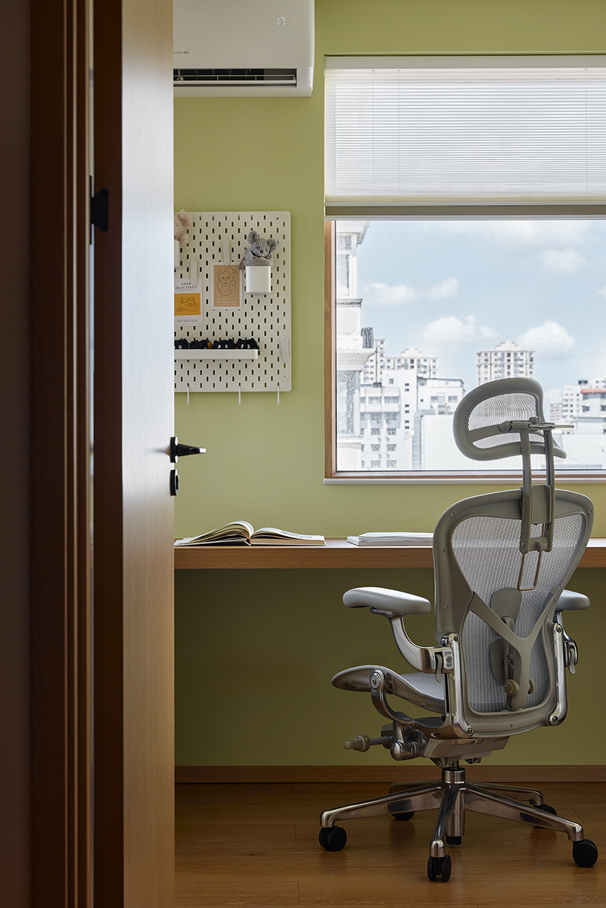通过重新梳理狭长的一字型户型,巧妙利用异形空间,成功划分出独立的餐厅与洗衣阳台,极大地提升了空间利用率与功能性。厨房采用开放式设计,搭配个性化岛台与白色岩板,既温馨又不失清爽,与餐厅之间的窗洞设计更是增强了家人间的互动性。客厅作为家的情感纽带,通过半高电视柜的设计,巧妙连接餐厅,增加了空间的通透感与层次感。女儿房与主卧则分别营造了绿色小清新与宁静舒适的氛围,满足了不同家庭成员的需求。此外,卫生间实现干湿分离,提升了使用体验。整体而言,本次改造在保持空间充裕与收纳充足的基础上,通过细致入微的设计,创造了一个既实用又充满温情的家居环境。