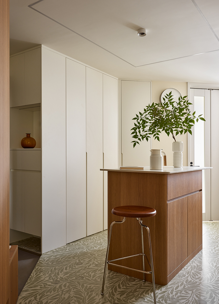对居住者一家三口的实际情况与需求,通过精细化空间布局与多功能设计,最大化利用空间,打造出一个明亮、温馨、舒适且功能完备的家。设计重点包括恢复原有卫生间以满足家庭需求,实现餐厨分离以优化生活动线,增加收纳空间以提升生活品质,以及满足业主个性化需求如设置佛龛、按摩椅、大水槽等。同时,通过半高电视柜、窗洞设计、复古地砖等元素,增强空间通透感与层次感,营造温馨怀旧的氛围。整体设计旨在提升居住者的生活便捷度与幸福感,让每个角落都充满家的温暖与美好。