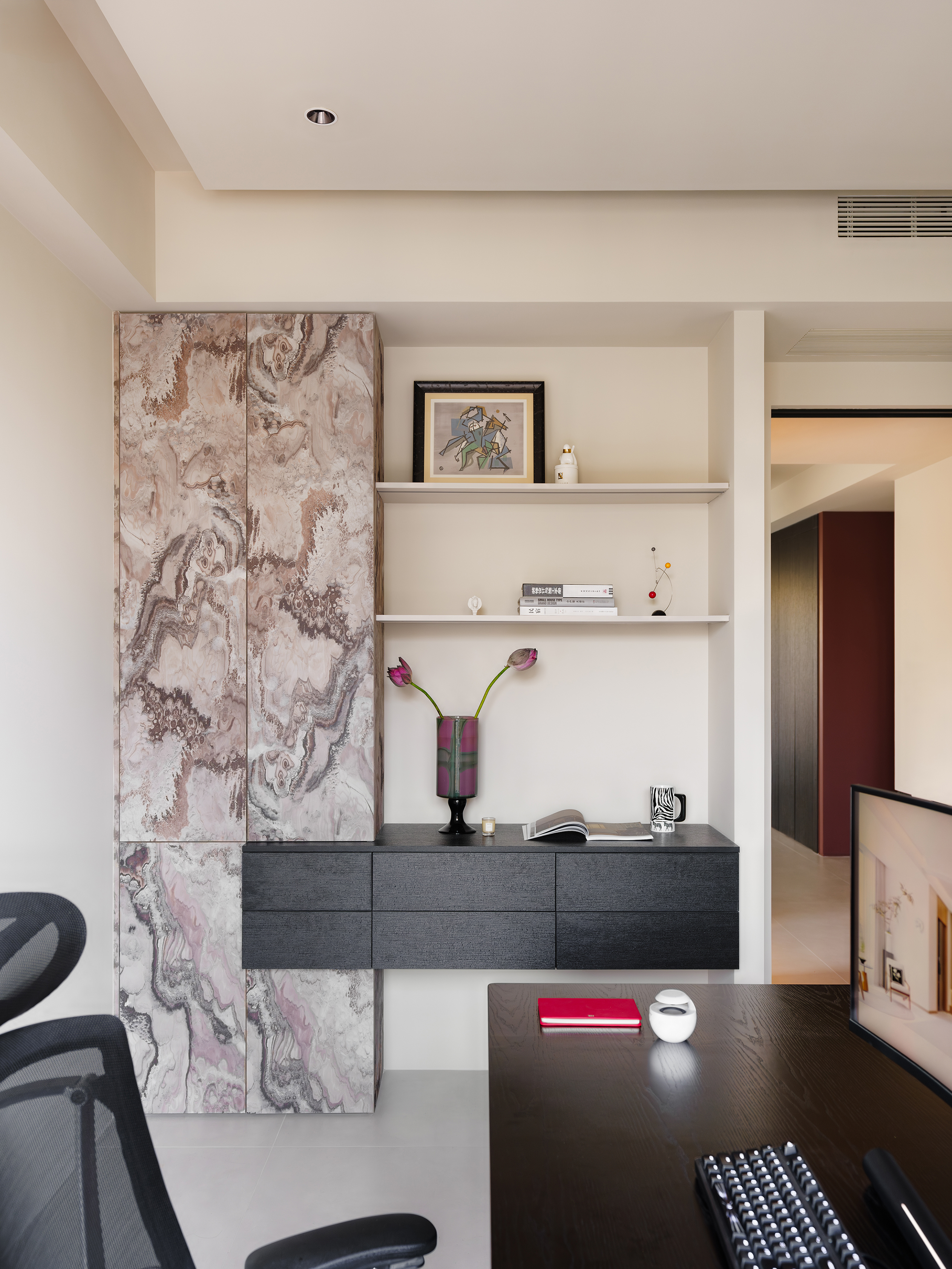 仿石材岩板的木质柜门,个性同时也不失性价比