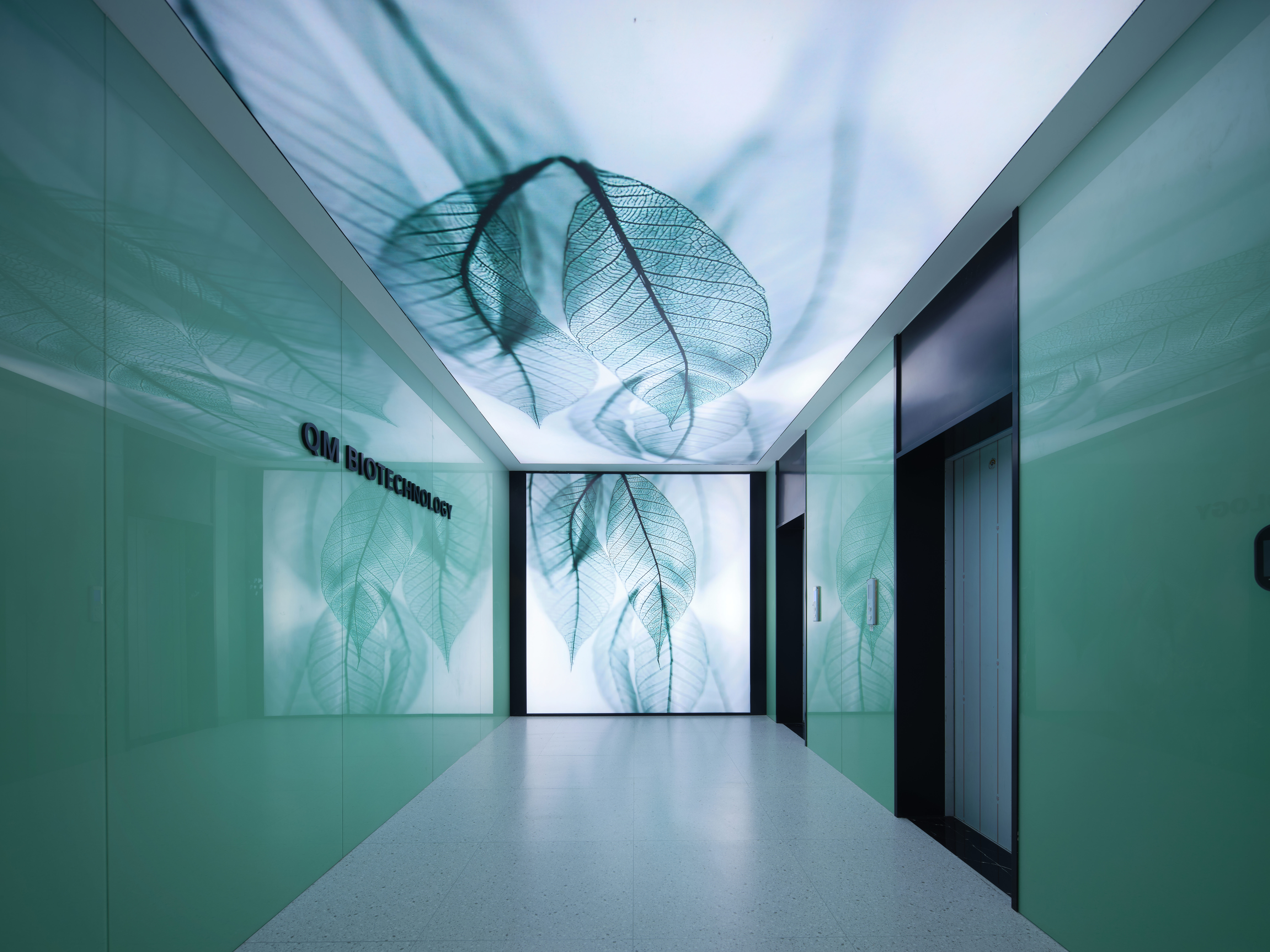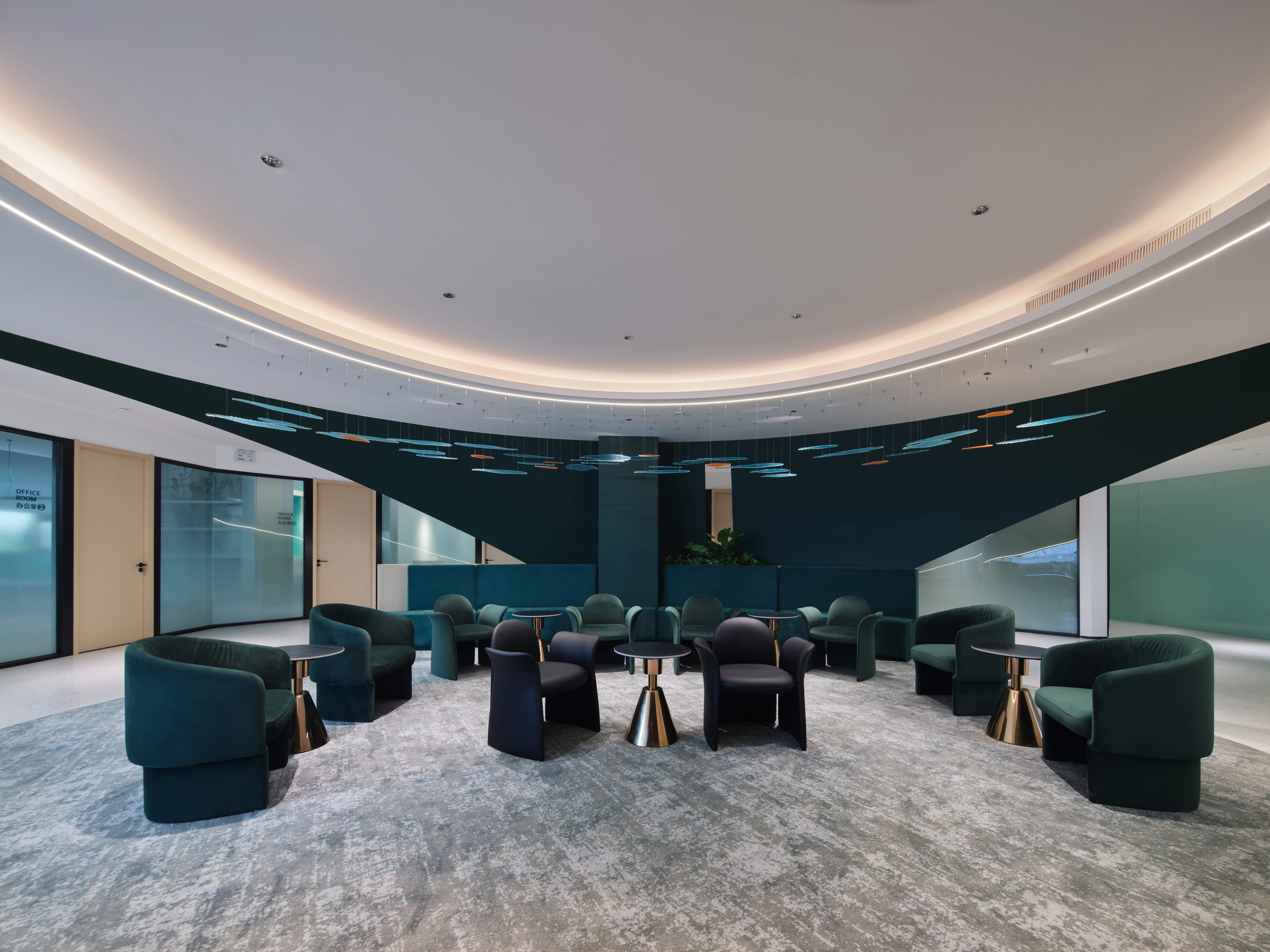 《用细胞再生,追溯空间生命力》项目独特的设计理念以“细胞、绿色、再生”为核心,强调生物学和生态学的融合,创造出一个充满现代感、环保性和科技感的办公空间。
