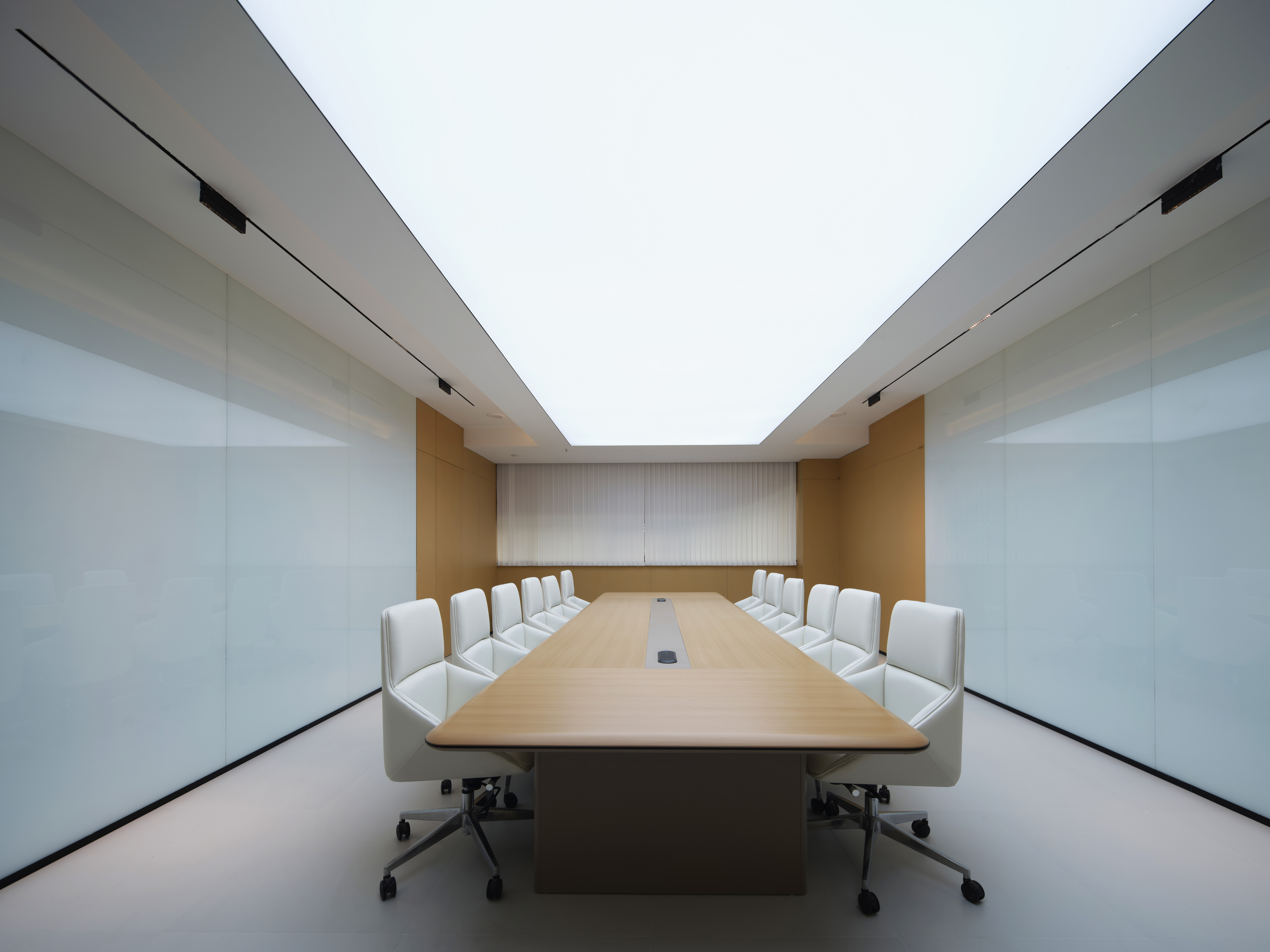 设计中选用了环保艺术涂料,这类涂料不仅无毒、低污染,还能减少对环境的负面影响。相比传统涂料,环保涂料的生产和使用过程中碳排放较低,有助于降低空间的整体碳足迹,同时满足了公司对可持续发展的承诺。广泛使用玻璃材料,尤其是透明和半透明玻璃,这不仅能够最大程度地利用自然光,减少人工照明的需求,从而节约能源,还增强了空间的通透感与视觉开阔感,提升了工作环境的舒适度和美观度。