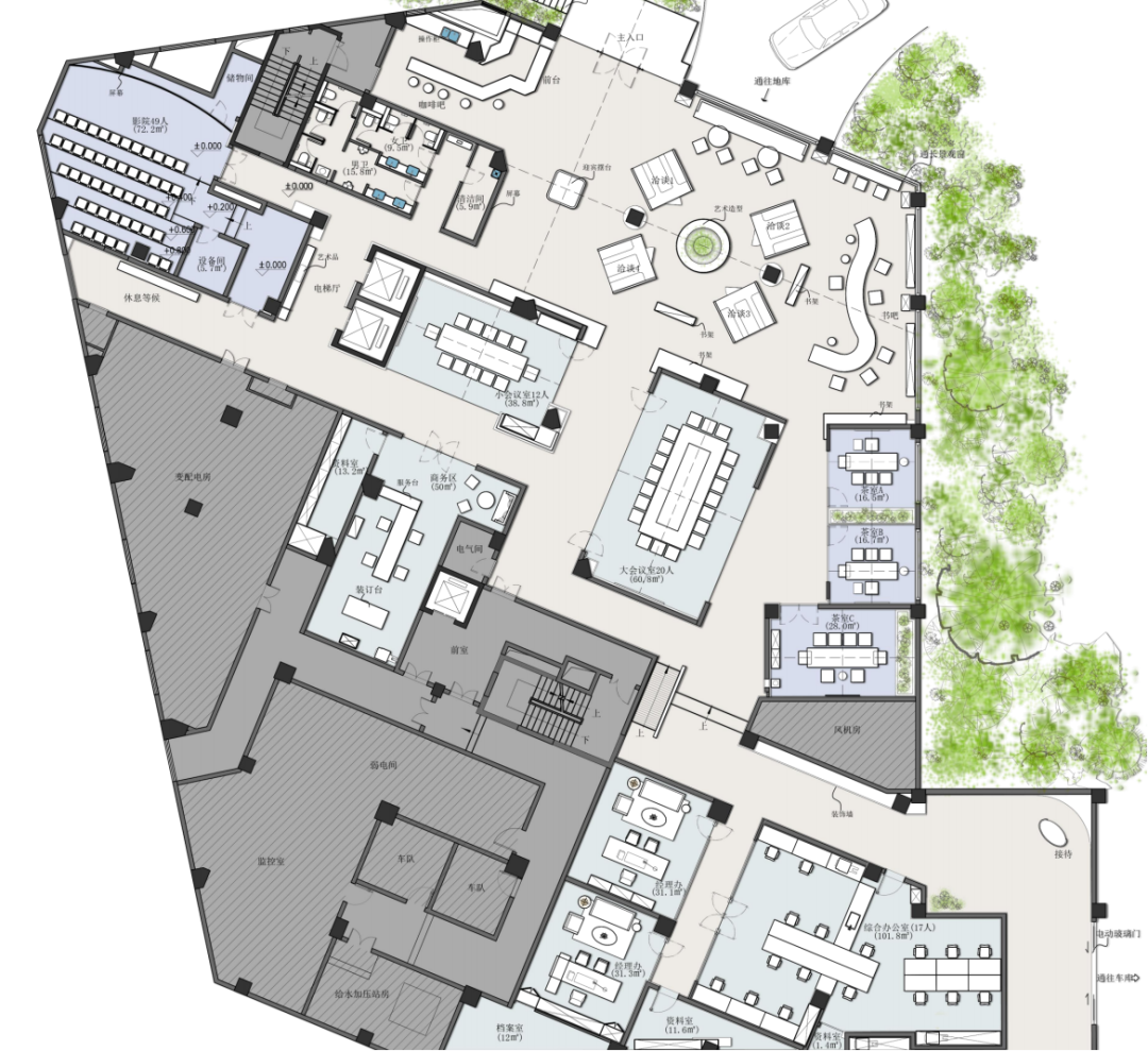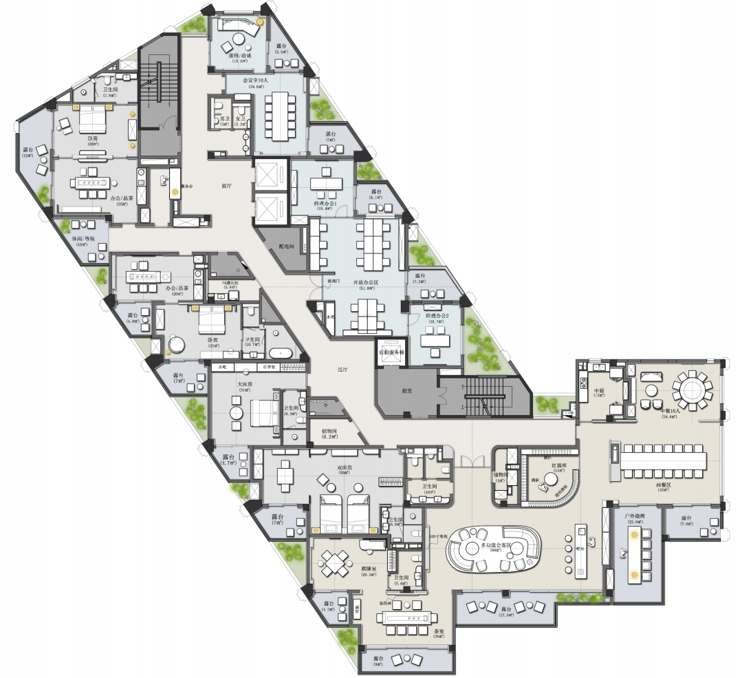 充分利用三亚湾的海滨资源,将自然景观引入室内,让使用者在办公、接待等活动中能够近距离感受大海的魅力,实现与自然的亲密对话。通过大面积的落地窗、观景平台等设计手法,将海天一色的美景尽收眼底,营造出一种宁静、舒适的工作氛围。
