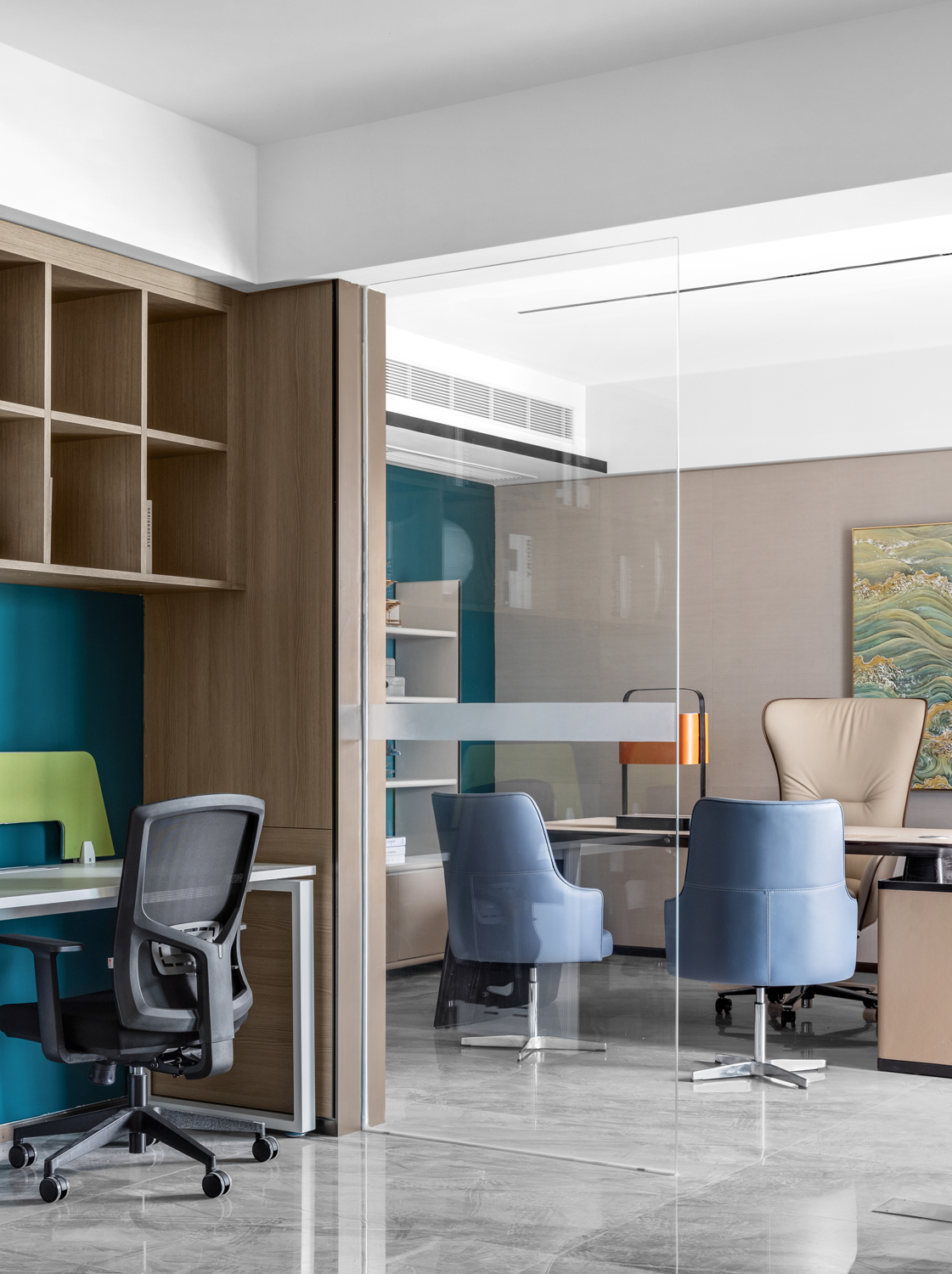 功能区域的灵活融合:在满足接待、展示、洽商、办公等多种功能需求的基础上,打破传统功能区域的界限,采用开放式的空间布局,使各个功能区域相互连通、相互渗透,既保证了工作和交流的顺畅进行,又营造出一种开放、共享的办公氛围,实现了功能与风格的和谐统一。