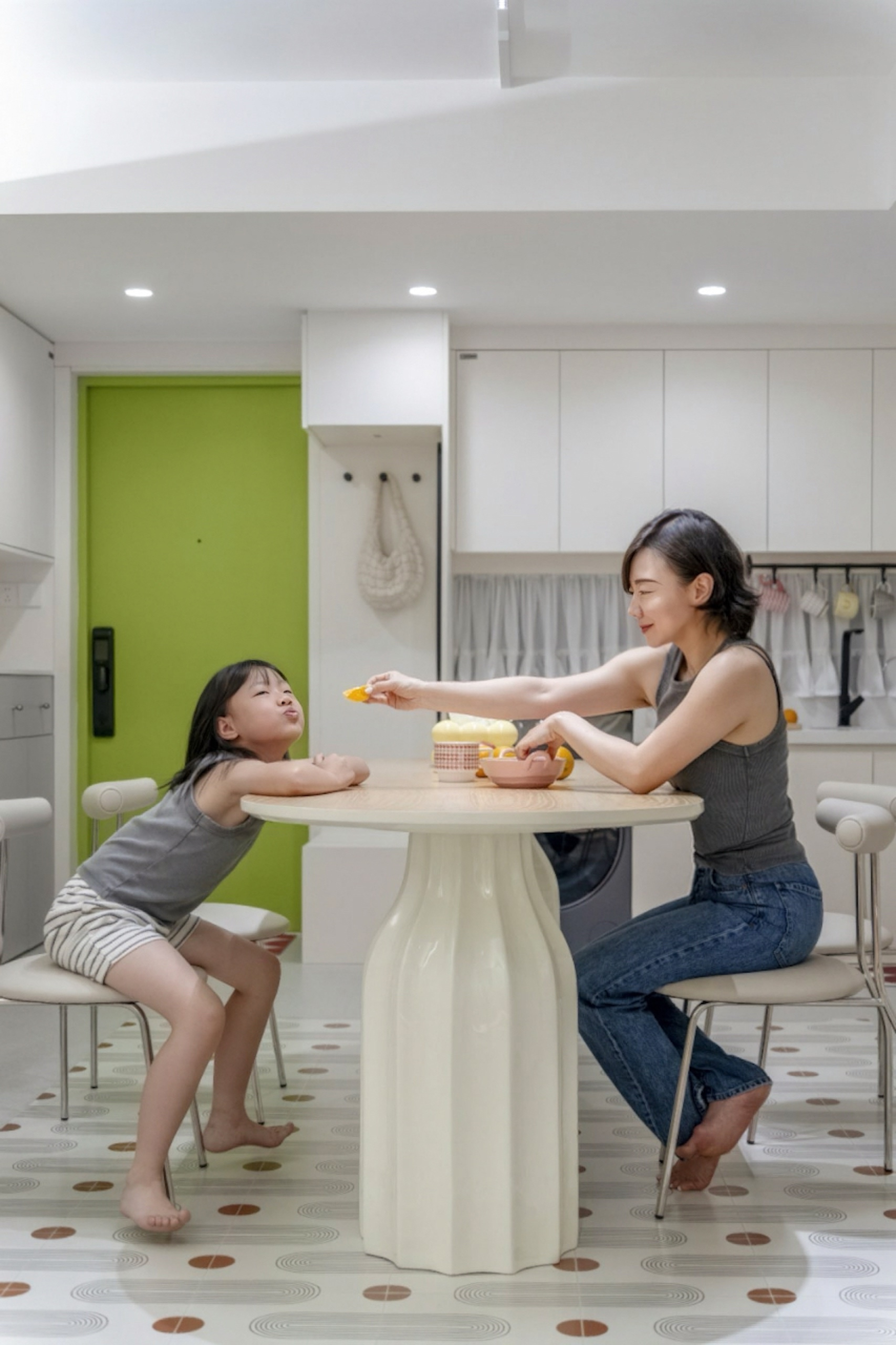 新家是一家三口的多巴胺乐园,女儿入住后更加开朗乐观,色彩的心理疗愈作用不容小觑。