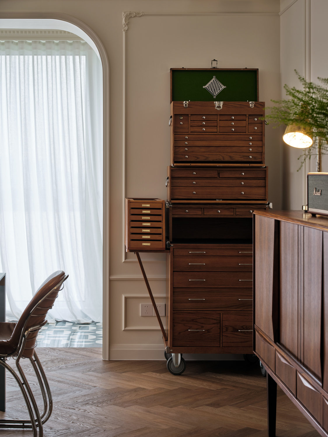 业主独爱法式风情的浪漫与精致,归于空间,表现为线条的婉转,结构的柔和,以及软装与色彩的搭配应用,当室外的景与室内的境相接,塞纳河畔的法式生活便被带到居所之内。