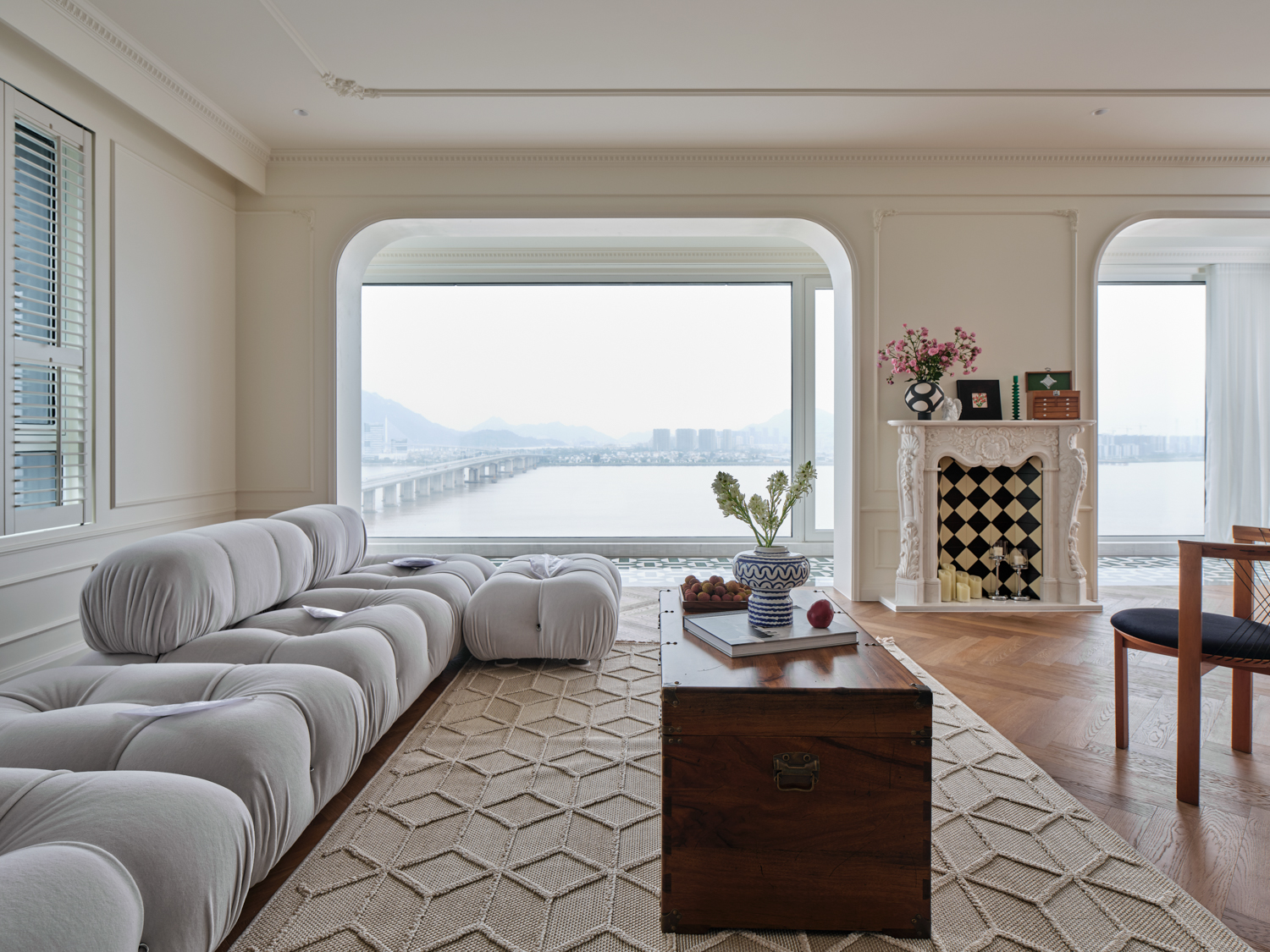 向窗外望去,江景被毫无保留地引入室内,一时间仿佛定居于法国塞纳湖畔。