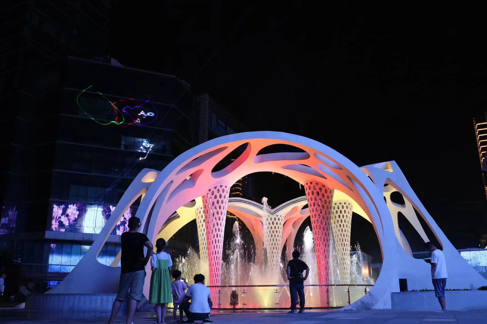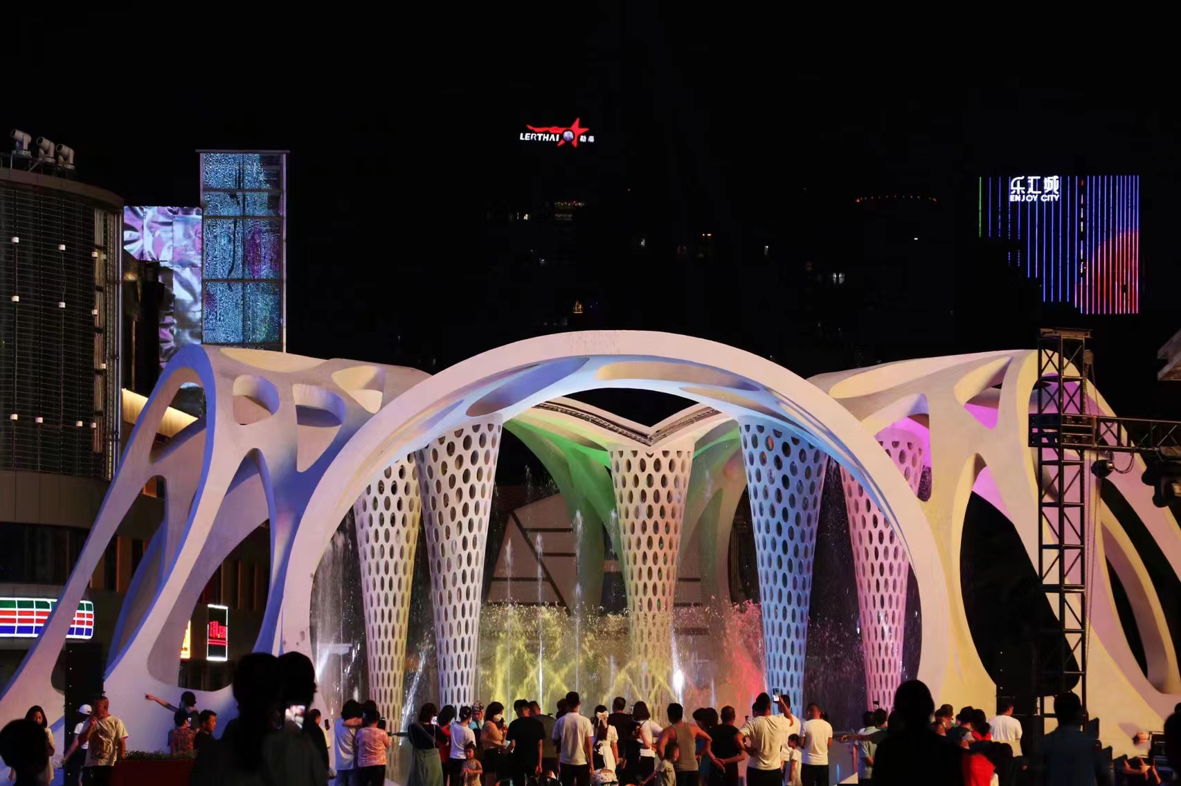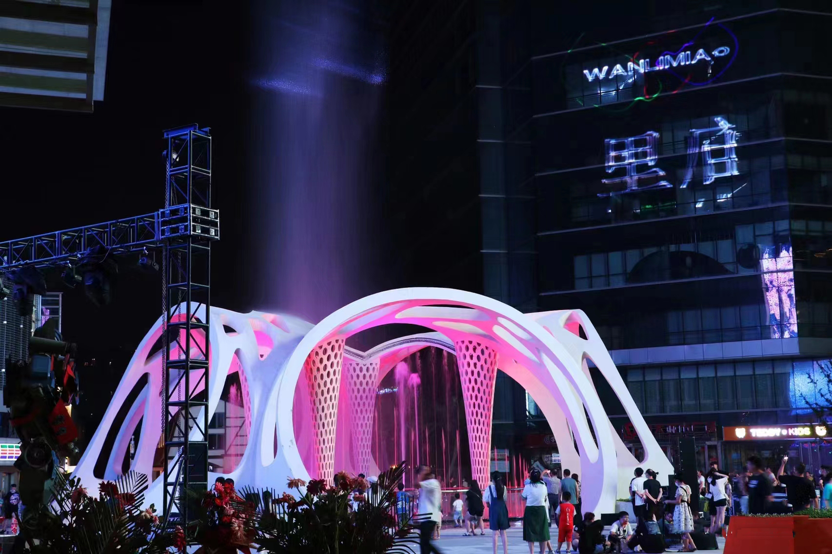 喷泉的内部设计为组装台,可在商业活动时多功能使用,可做音乐商演,可做展览等多元化发展,改变喷泉只能观赏的单一化功能。让喷泉可以形成新的文创商业体系,符合当下年轻人的审美艺术,让石家庄民族路步行商业街形成新的打卡地。