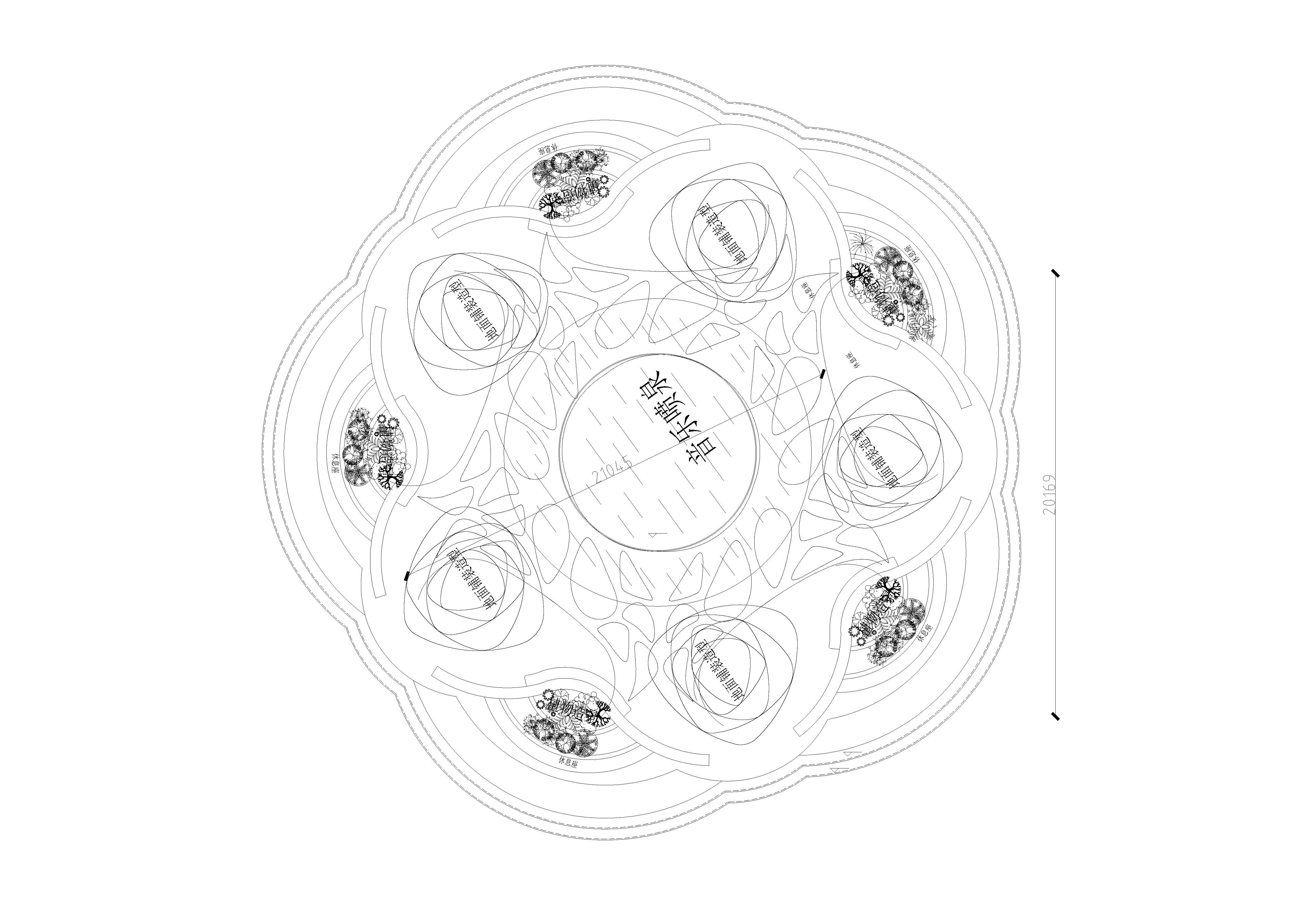 喷泉位于步行街十字路口处,周边建筑群相对比较高耸,为了缓解高楼的压迫感与更好的视觉感,在设计时加入了植物元素缓解高楼的硬朗,同时缓解了十字路口的强风,形成一个天然的避风港。使人与自然和谐共生。入口的曲线结合点为“人”字形结构,从每个路线看过去都可以看到三个“人”字型,从而形成群众的“众”。整体的镂空造型是由月季的花瓣组成,一变二,二生三,自然形成植物的脉络。每个页面的镂空点均有雾化喷头与三棱镜,运用光的折射,把彩虹请到空间内,构成多道彩虹,从而形成网红打卡地。顶部的汇合点形成“五角星”图案,寓意在党的领导下万众一心,把商业街形成新时代的商业业态。考虑美感的同时,跳泉,儿童旱跳泉,吼泉,音乐喷泉秀等,众多可以与人群互动的设施,带来沉浸式体验感,夜晚独特的灯光秀与音乐喷泉相互交映形成城市里独特的风景线。地面采用多种石材拼花,内设灯光,在夜晚形成多种的夜景艺术亮化。喷泉的时间轴设计时考虑春夏秋冬不同季节的变换,除了体验水的美,自然的美,造型的设计还能在冬季里成为独一无二的风景。