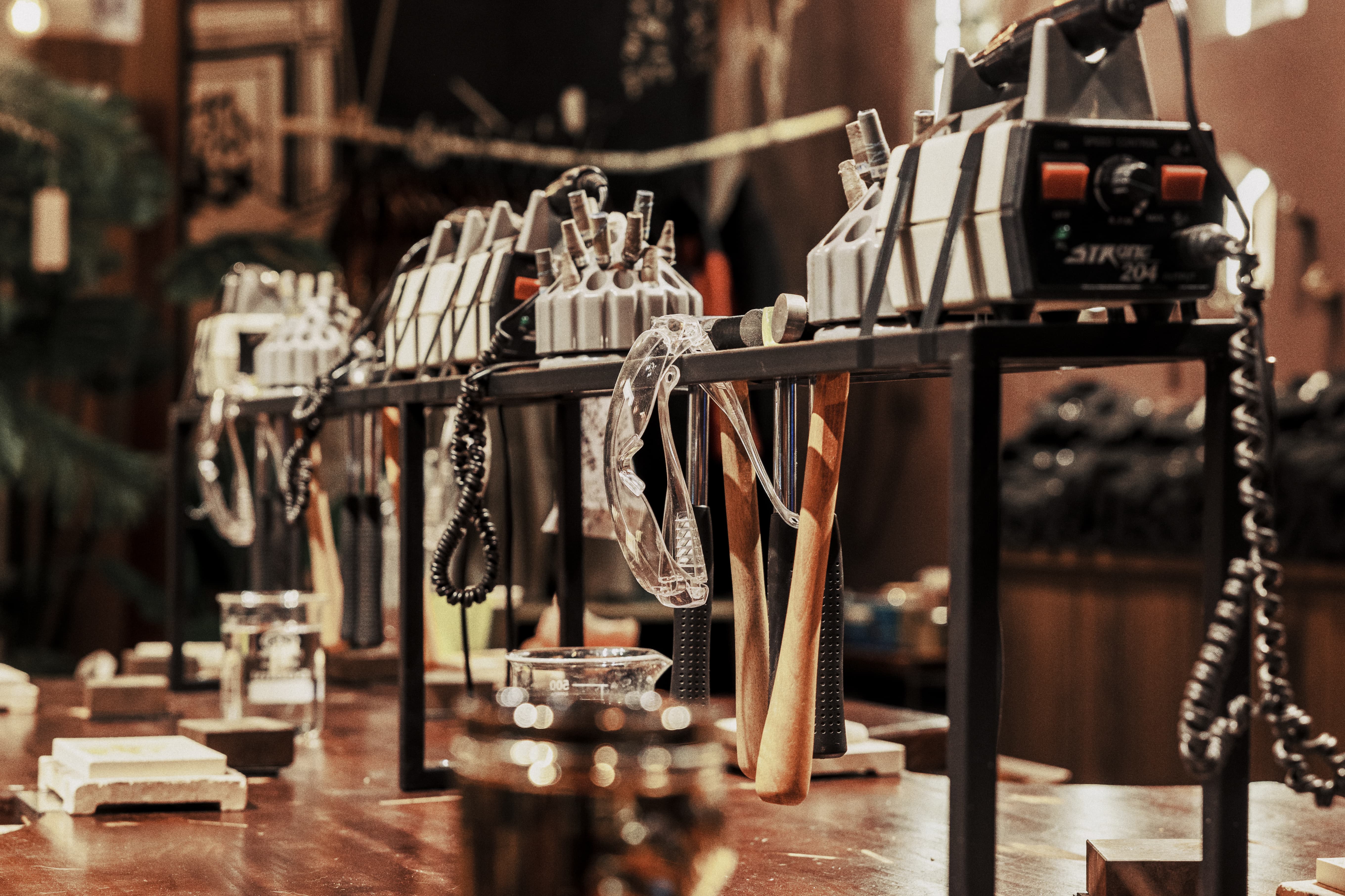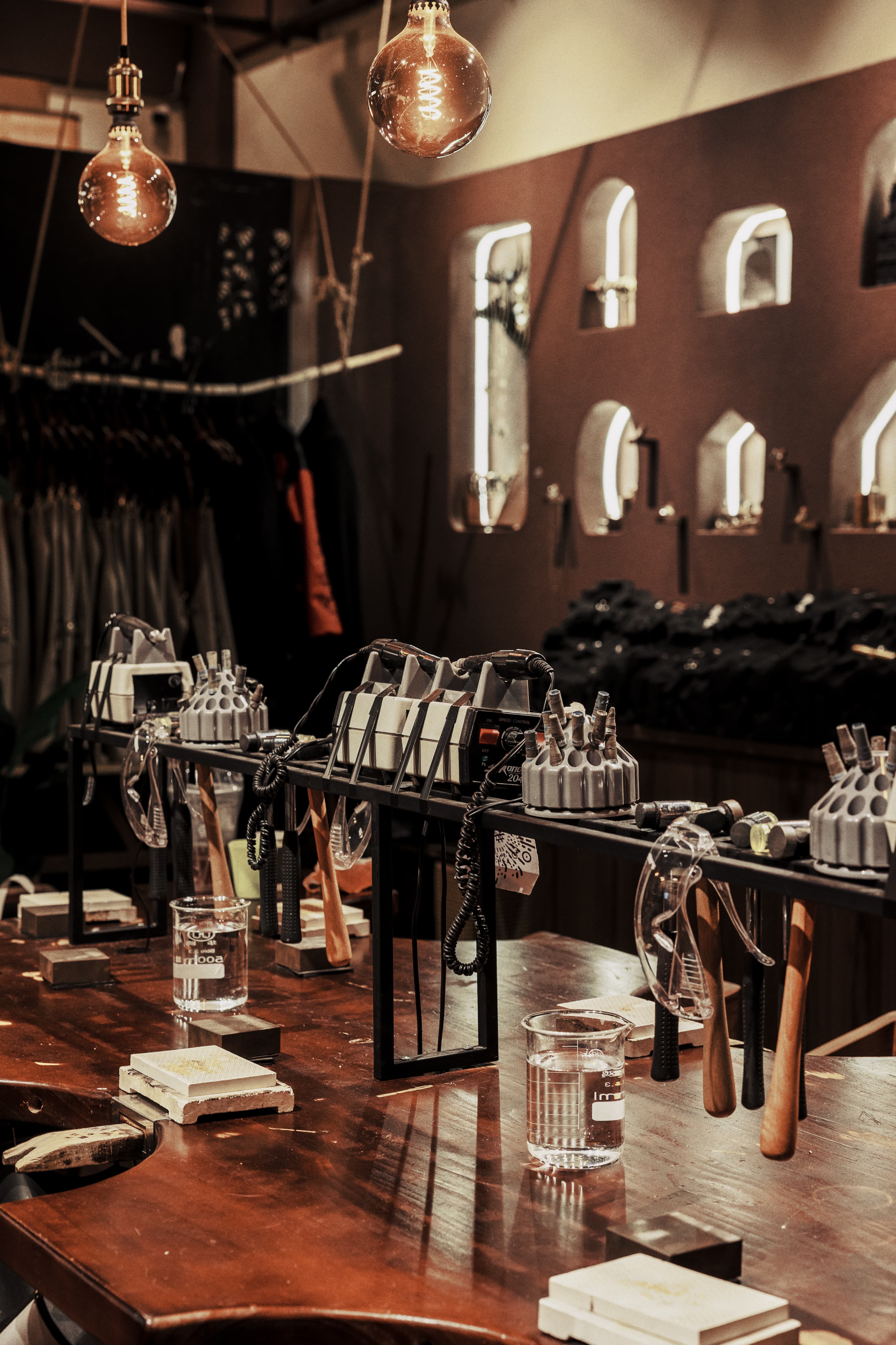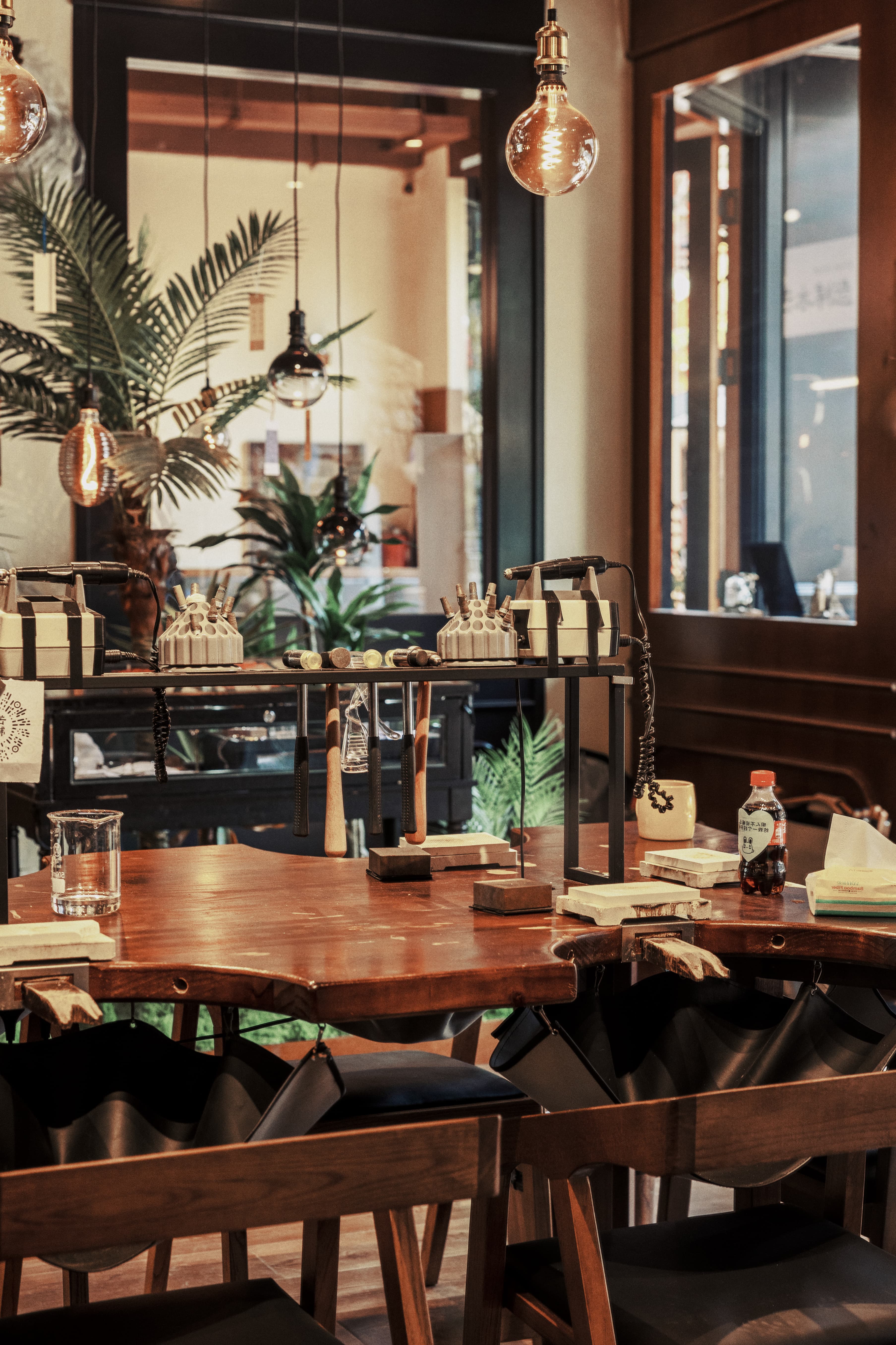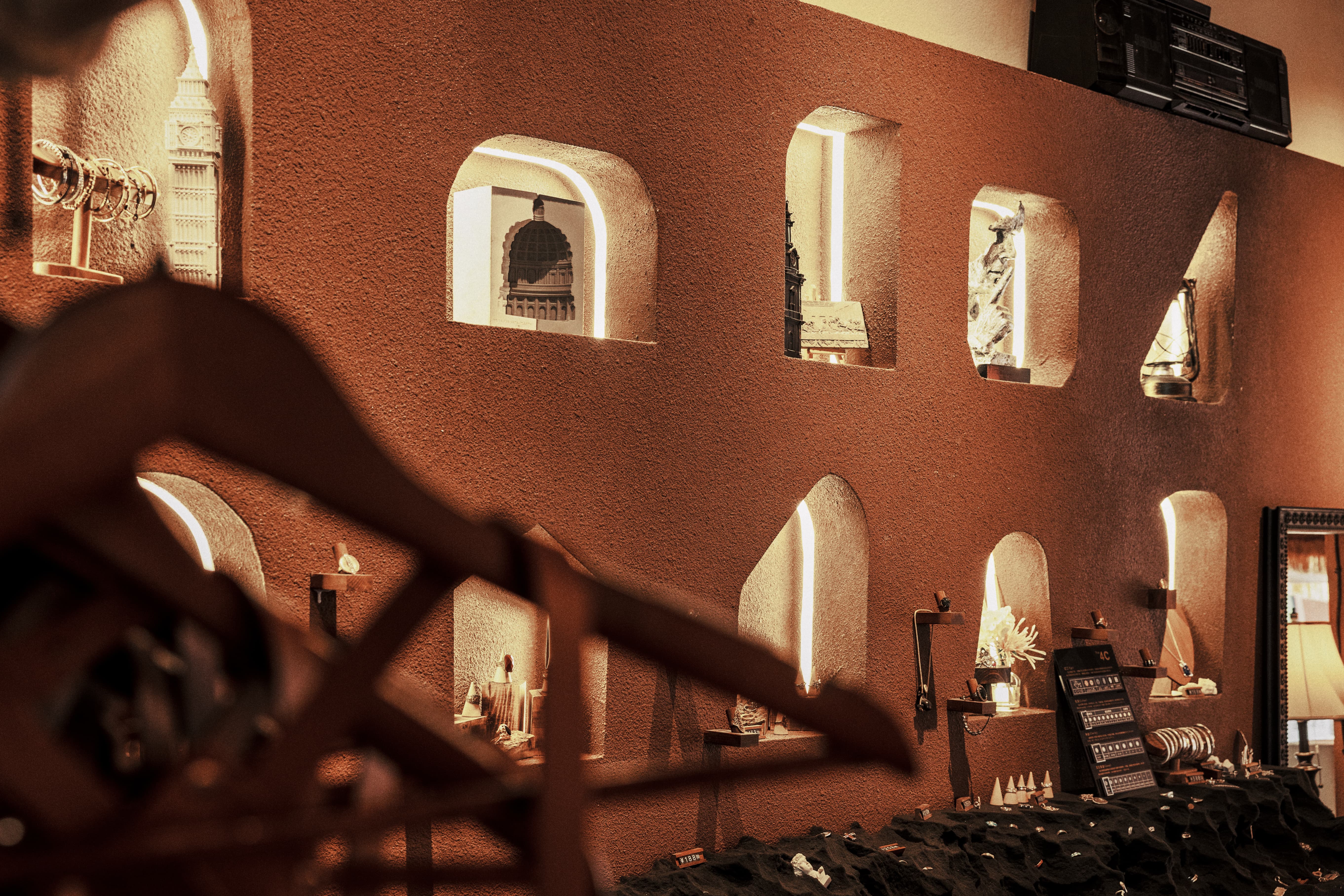 项目定位:银饰与咖啡店结合,设计内推门,巧妙的将黑色与胡桃木色结合穿插运用,增添了空间质感,呈现出经典与现代的融合感。黑色复古弧形造型玻璃门,搭配胡桃木色多种造型墙板,层次分明,凸显出独特的质感,进一步强调了复古风格。这些设计细节不仅提升了空间质感,还营造出一种浓厚的怀旧氛围,使踏入店内的顾客都能感受到独特的时光魅力。走进店内,迎面而来的咖啡香气与银饰的精巧光泽互相交织,营造出一种独特的氛围。每一件银饰品都经过匠心独运的设计与打磨,手工的浪漫,在于,你有权赋予它一切美好与浪漫。让你用自己的双手,来凝固时间与浪漫。复古风格,琳琅满目的工具与作品填满整个空间,在这样氛围下做出来的产品,一定很美好。