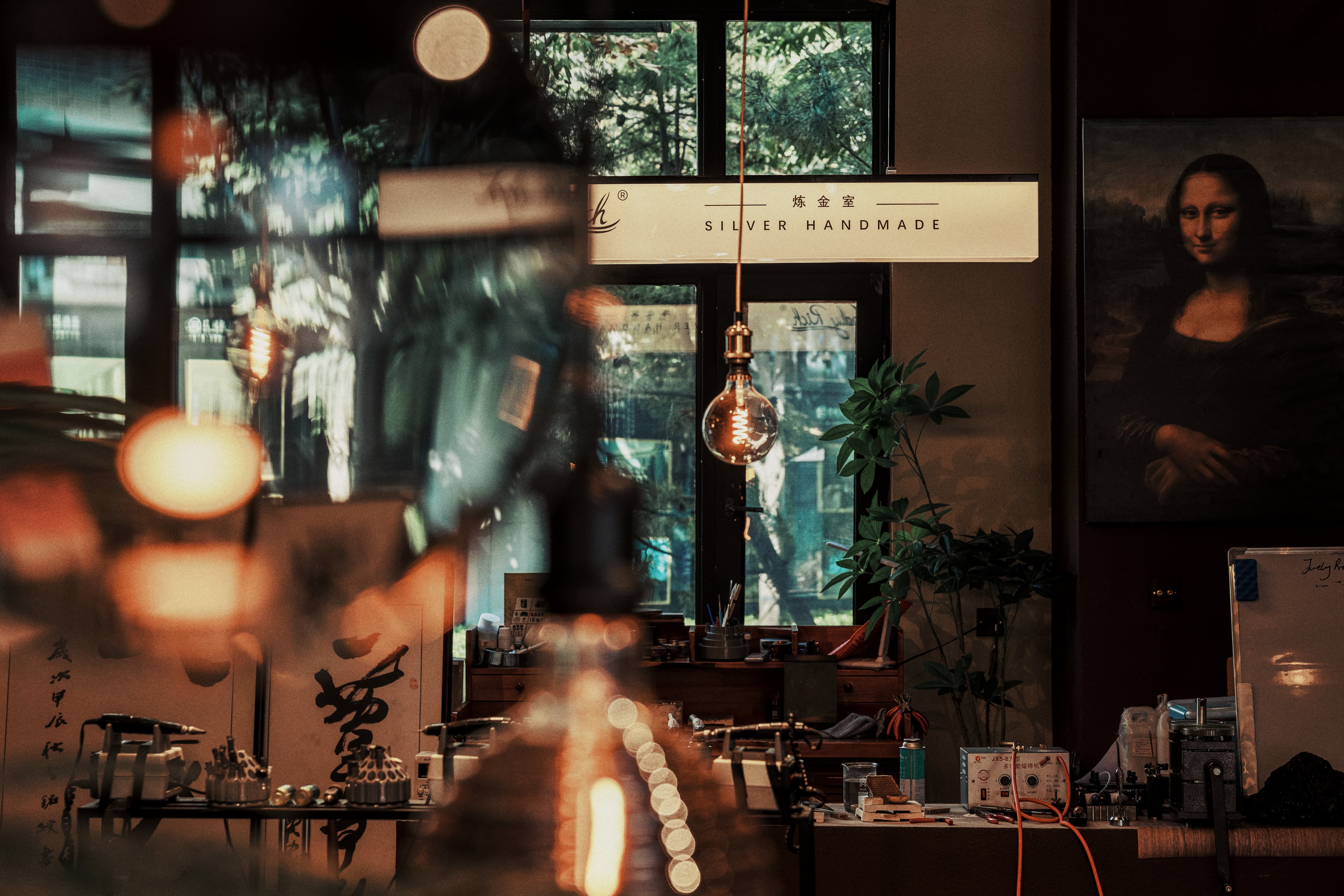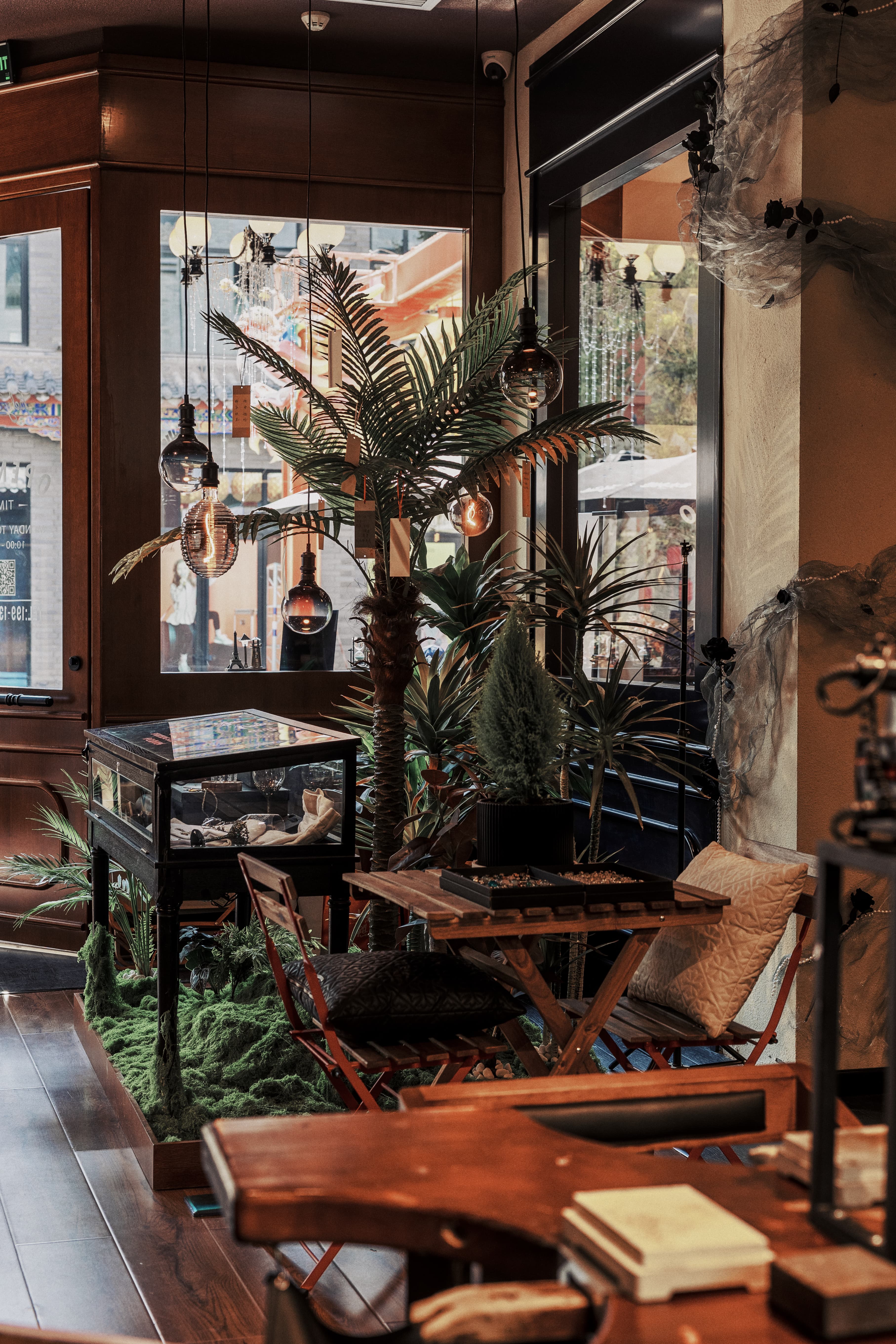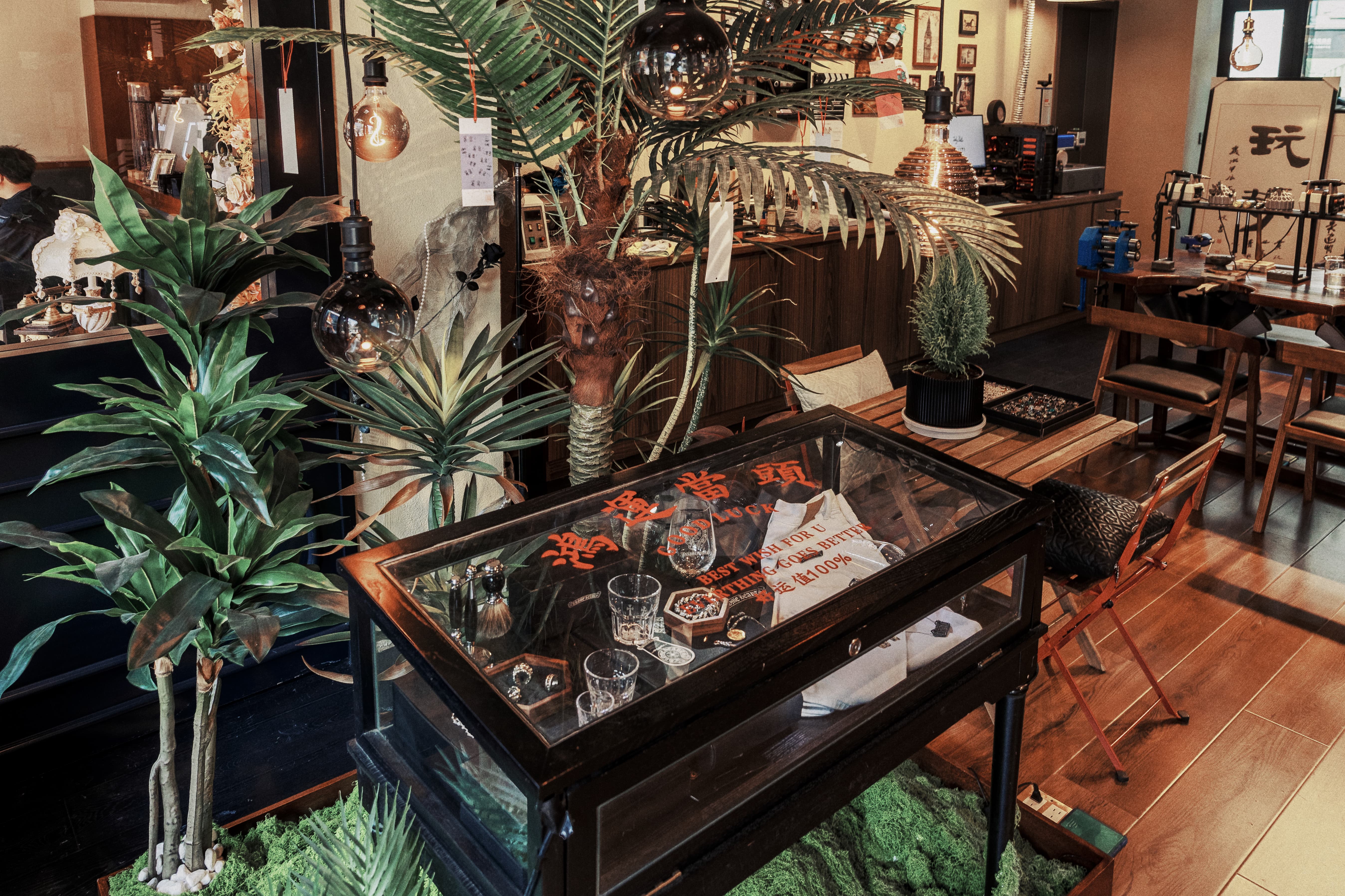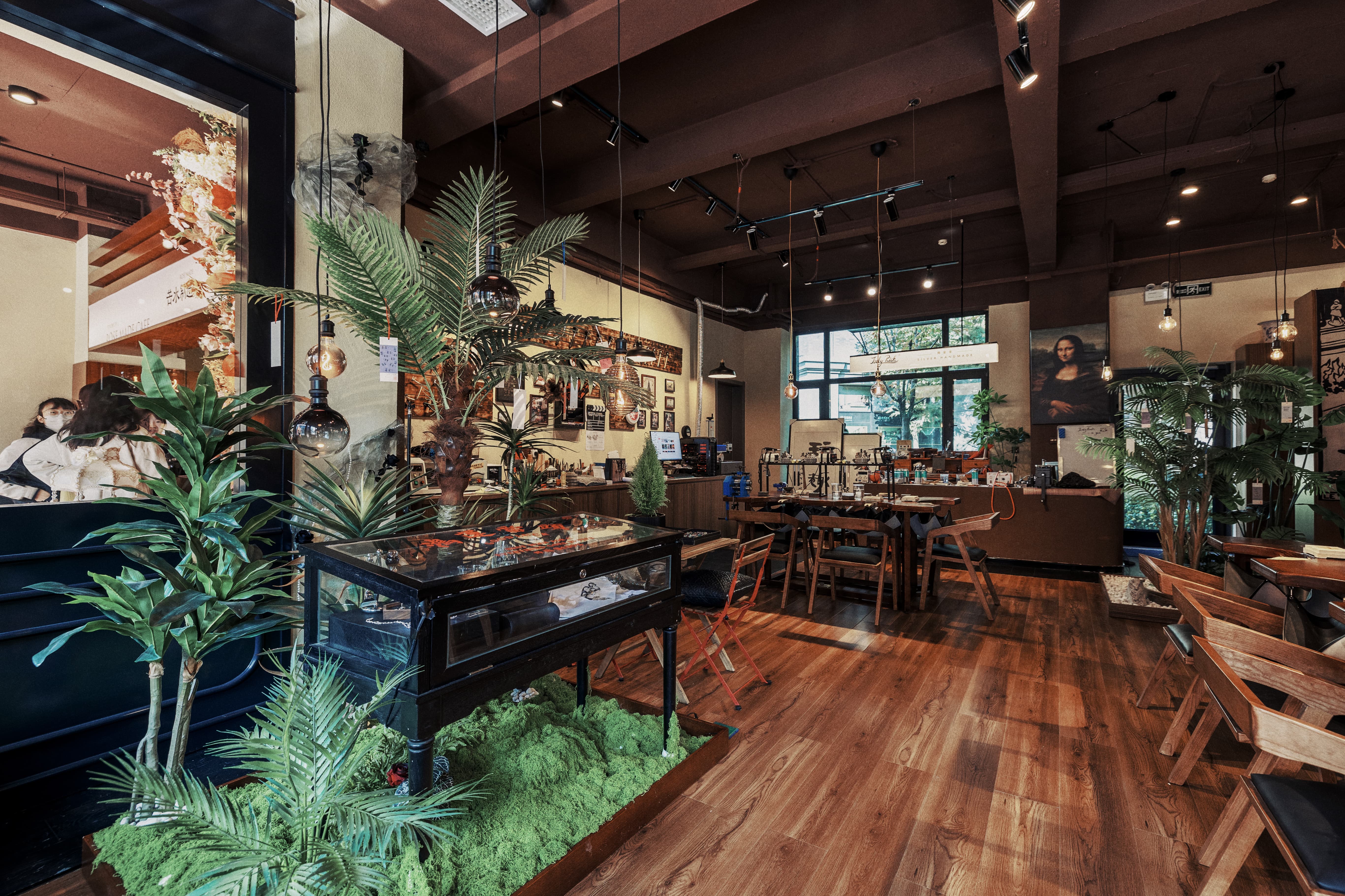 空间布局:温暖的灯光洒在精致的银饰上,反射出柔和的光芒,仿佛每一件银饰都有自己的故事。窗边结合外摆区摆放着小椅子,让人忍不住想坐下来,点一杯手冲咖啡,静静品味这宁静与美好。墙上的装饰画与书架上精心挑选的书籍,为整个空间增添了文化气息。顾客在这里不仅可以挑选到心仪的银饰品,还能在咖啡的香气中享受片刻的悠闲时光,体验到一种久违的慢生活。