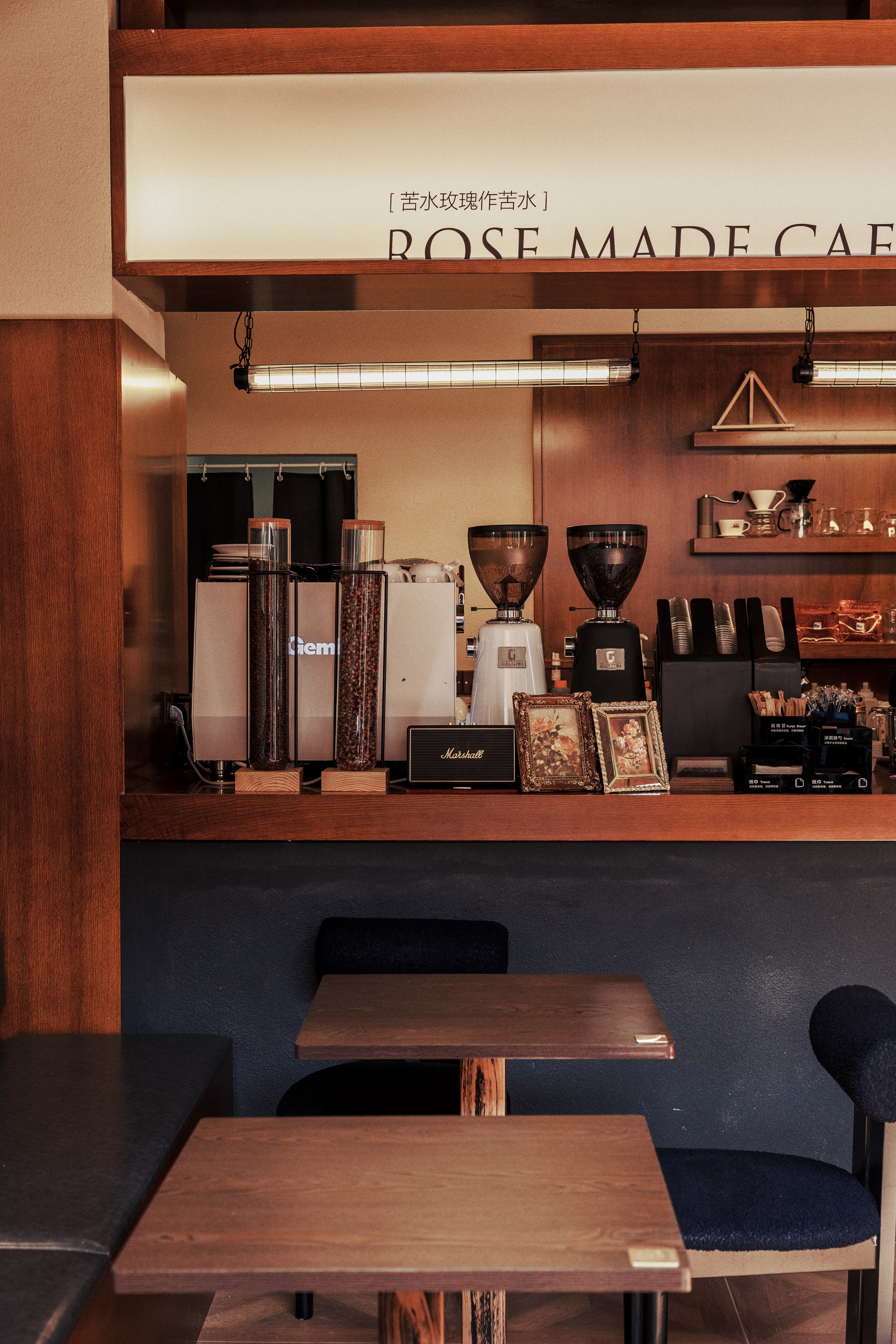 空间意境:以复古的美式风格为主,搭配现代的咖啡设备,让顾客在复古环境中享受现代品质的咖啡体验。店内轻缓的旋律为空间增添一份优雅与从容。吧台后的咖啡师娴熟的操作每一个步骤,为顾客奉上香浓的咖啡,同时与他们分享着咖啡与银饰的故事。每一个来到这里的顾客,都仿佛进入了一个缓冲的地带,在繁忙的都市中找到一片宁静,无论是独自一人,还是与好友相聚。