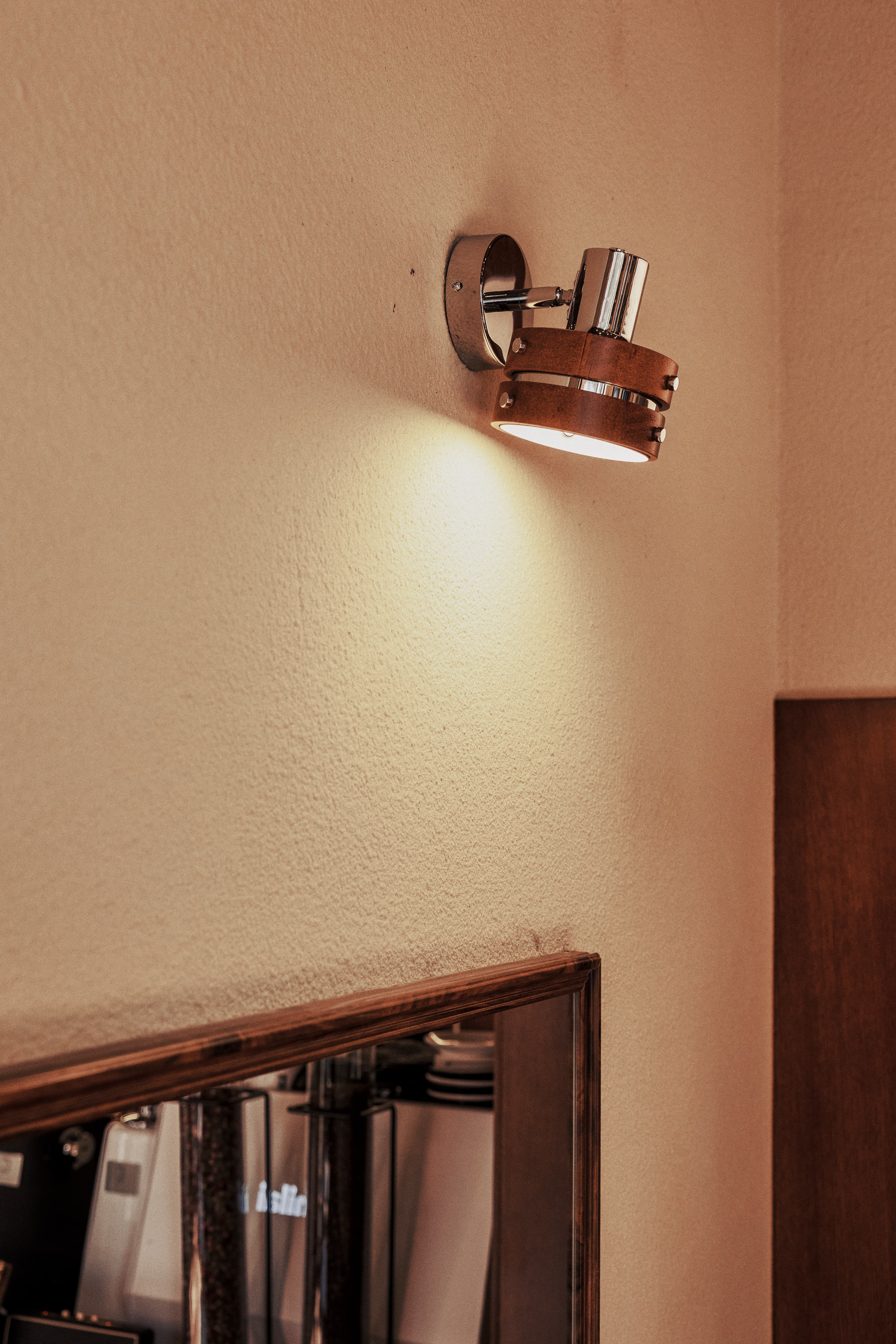 胡桃木色吧台柜搭配水泥质感漆,展现出质朴而现代的美感,灯箱巧妙的结合了金属银色与胡桃木的温暖碰撞,为整个空间增添了一抹亮色与温暖。吧台设计不仅强调功能性,更注重视觉的协调与舒适感。在胡桃木色的温润与水泥质感的粗犷中,金属银色的冷冽与胡桃木的温暖碰撞出独特的火花。从质感细腻的台面到精致的银色金属边框。 -