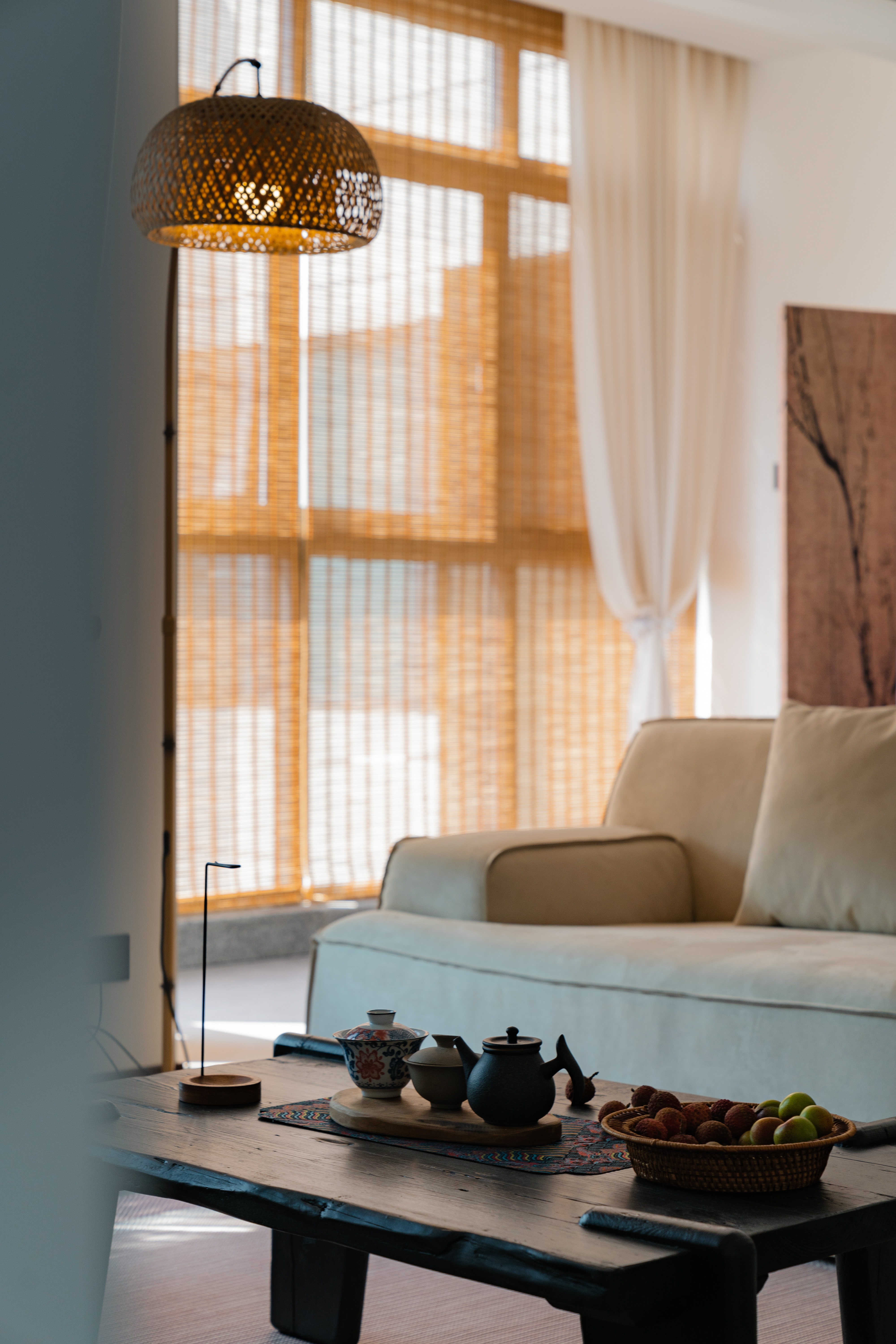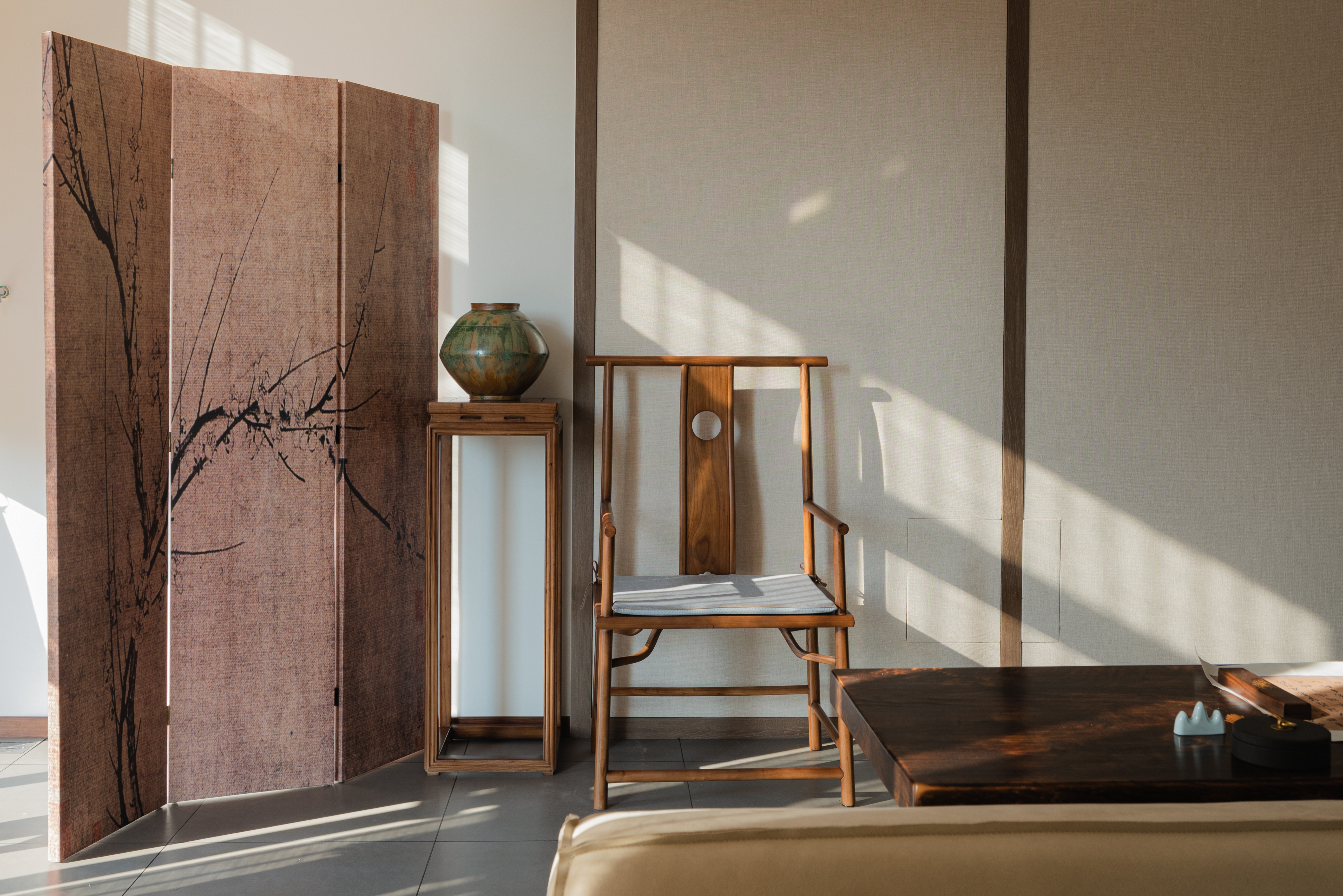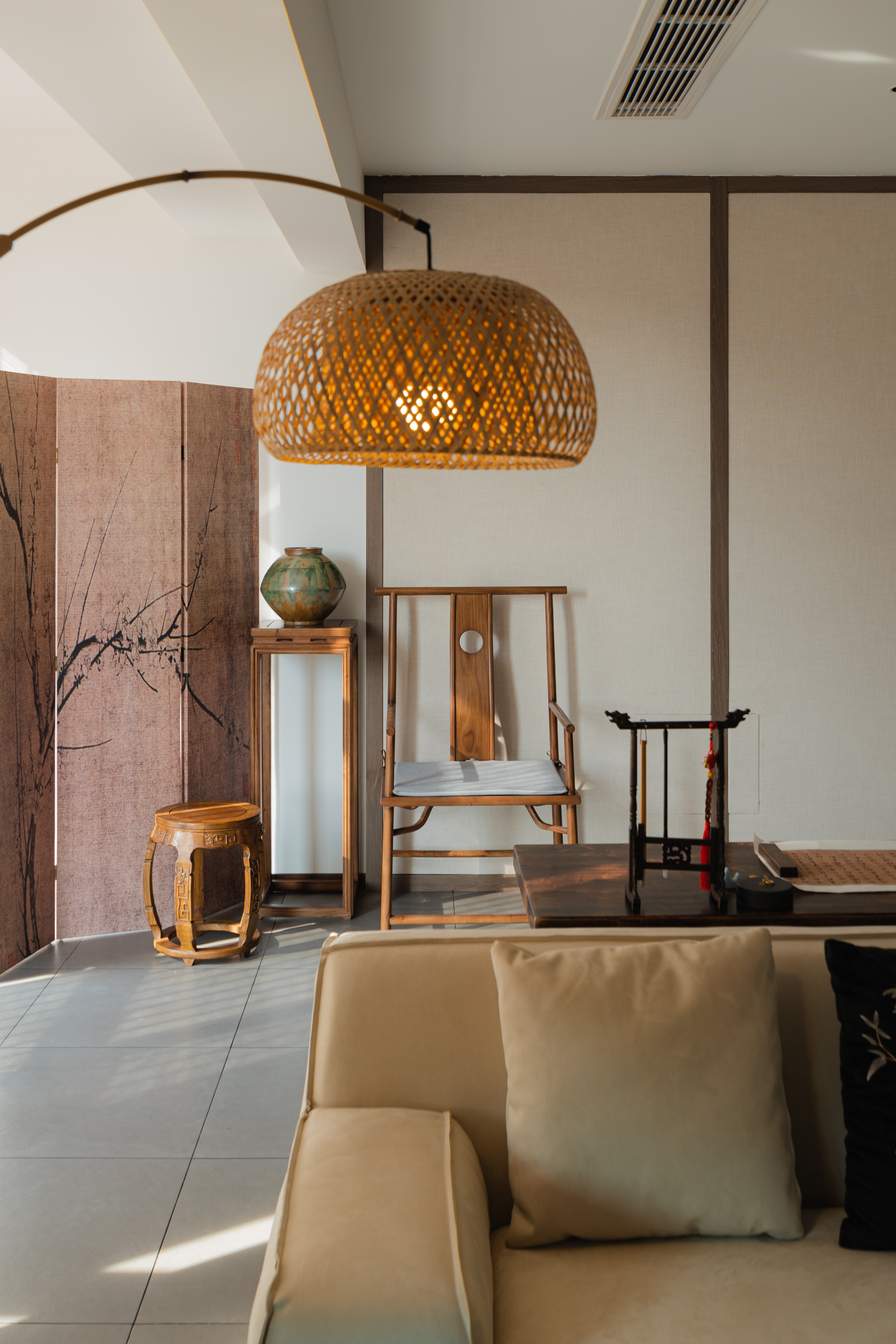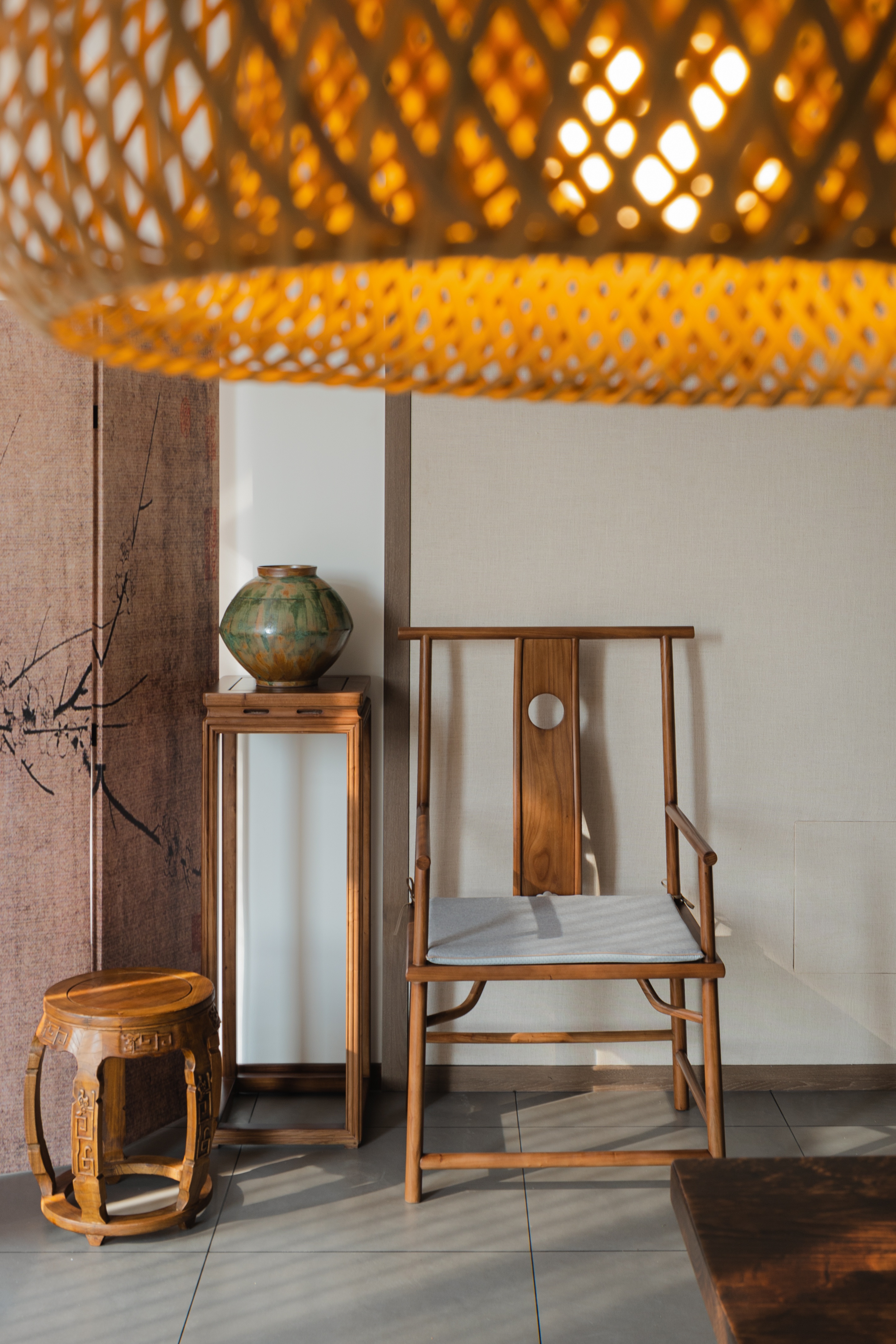 设计选材:多选用环保且具有中式韵味的木质材料,使空间呈现出自然与松弛的氛围。