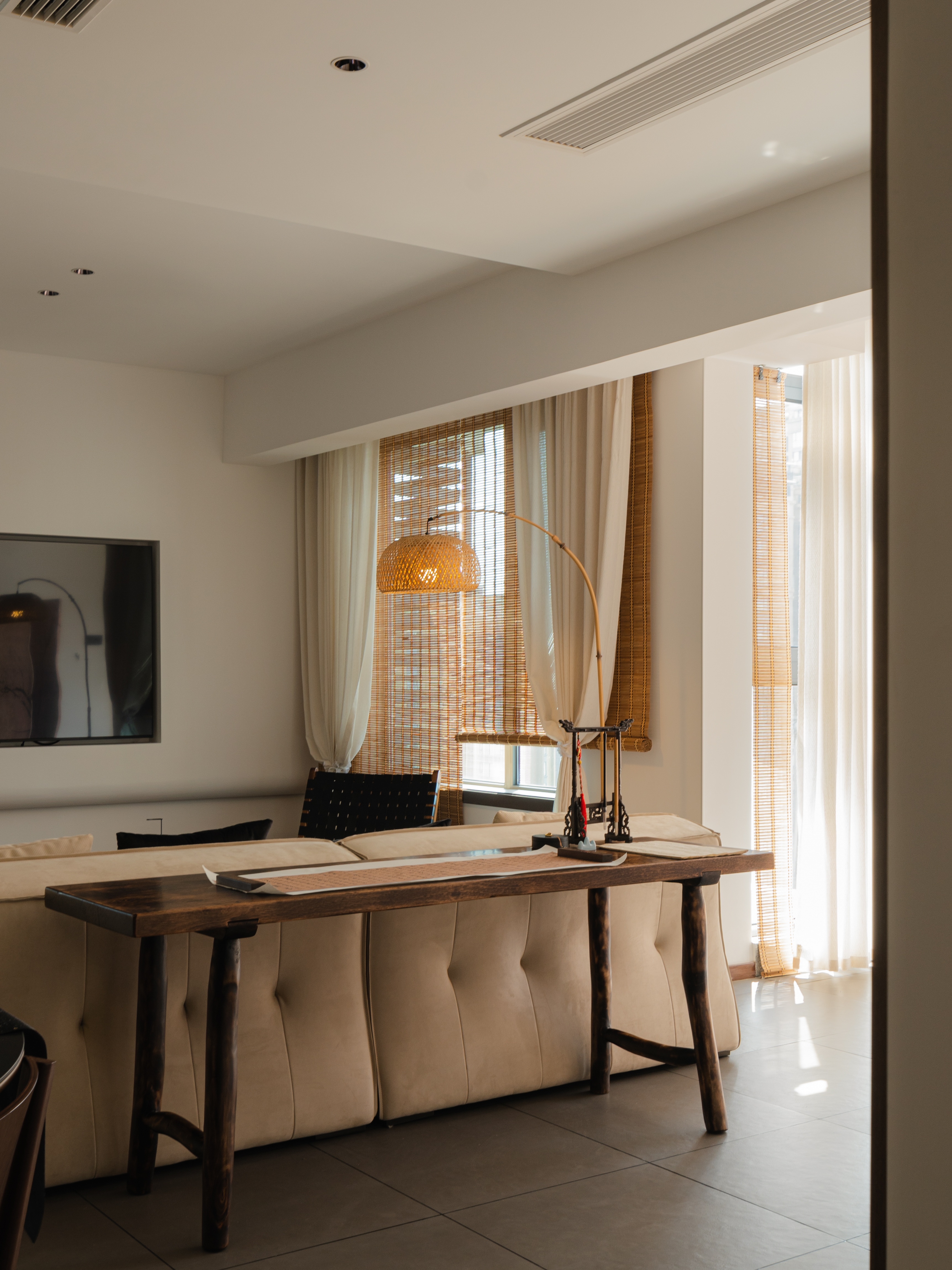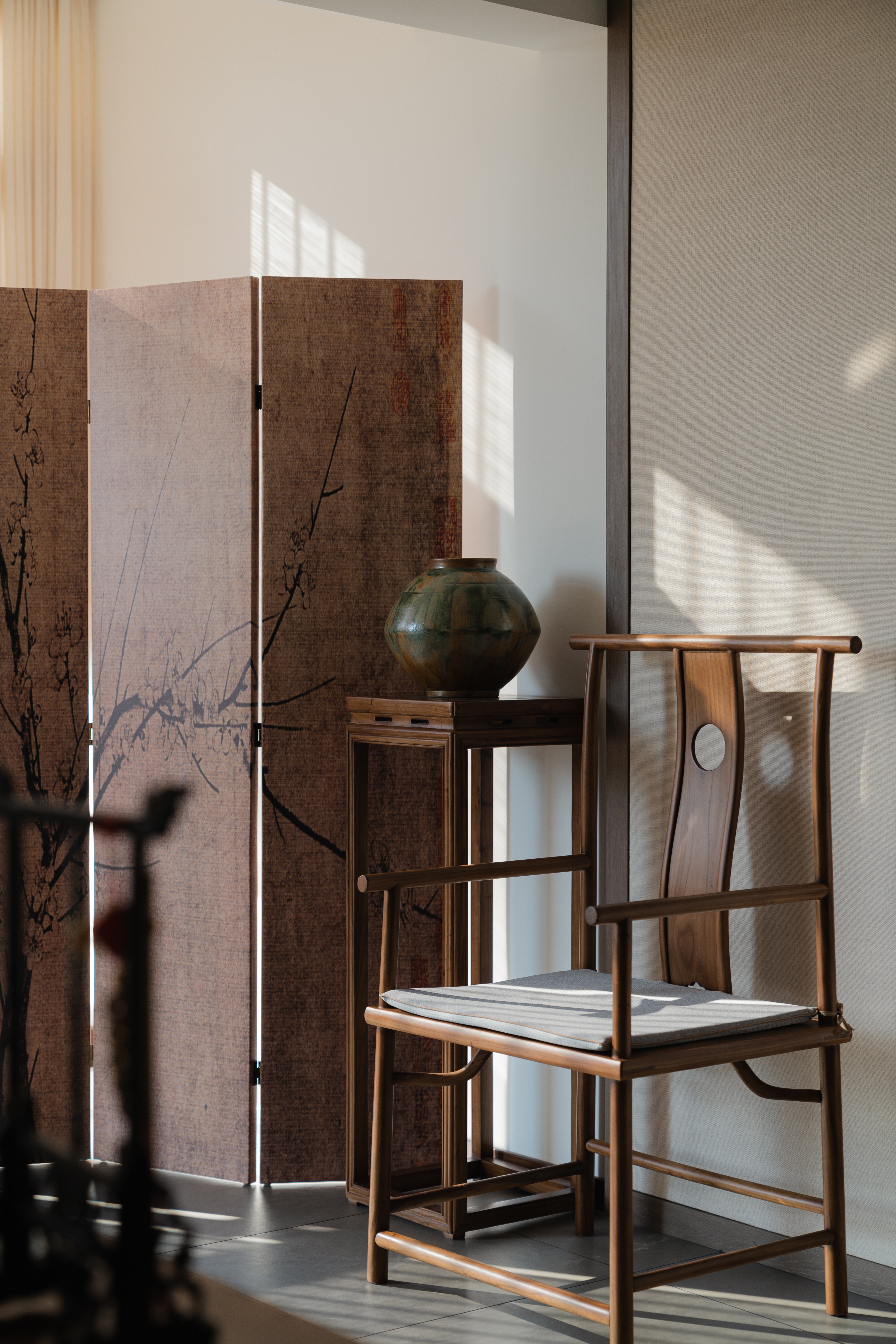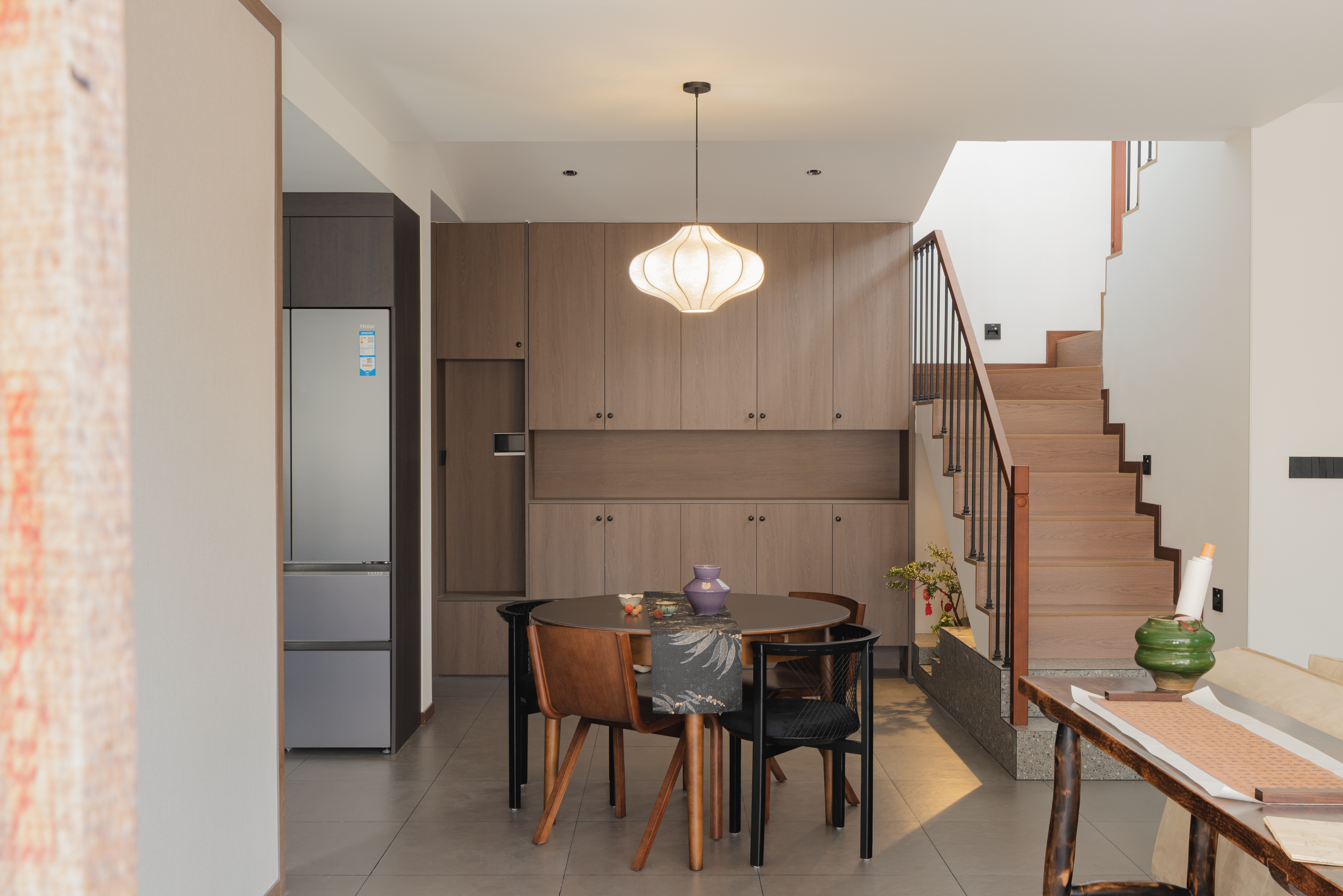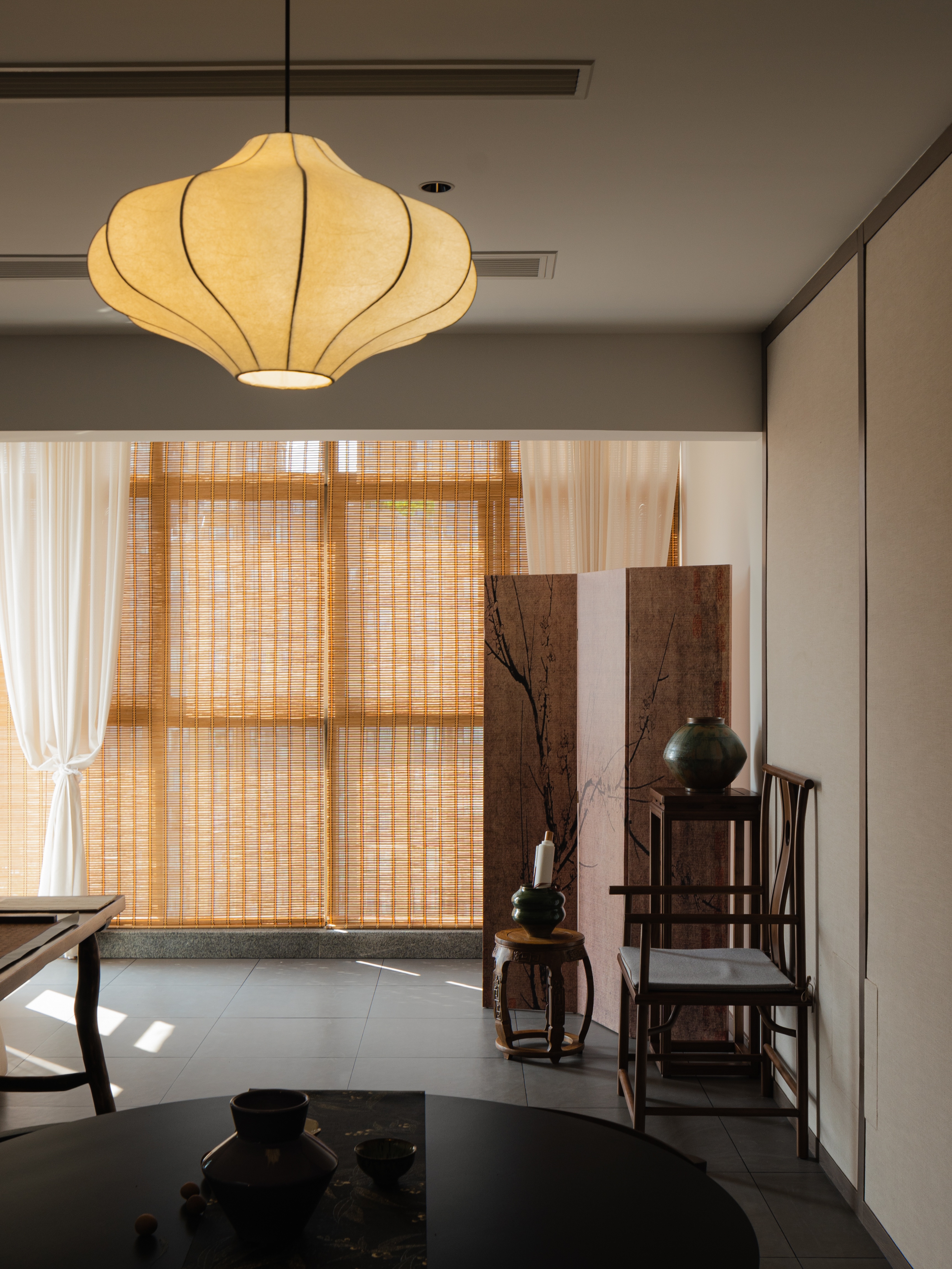 设计选材:多选用环保且具有中式韵味的木质材料,使空间呈现出自然与松弛的氛围。
