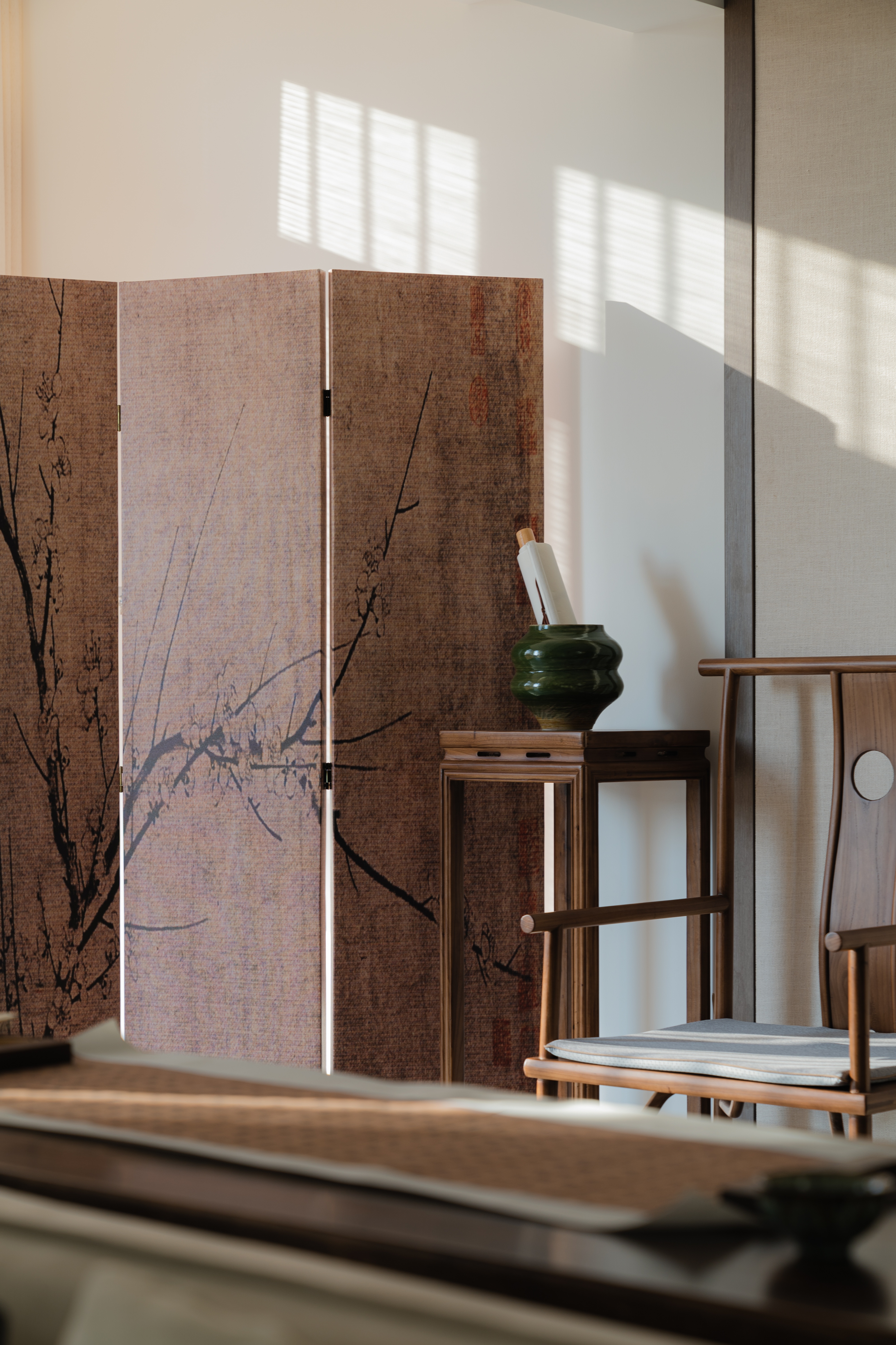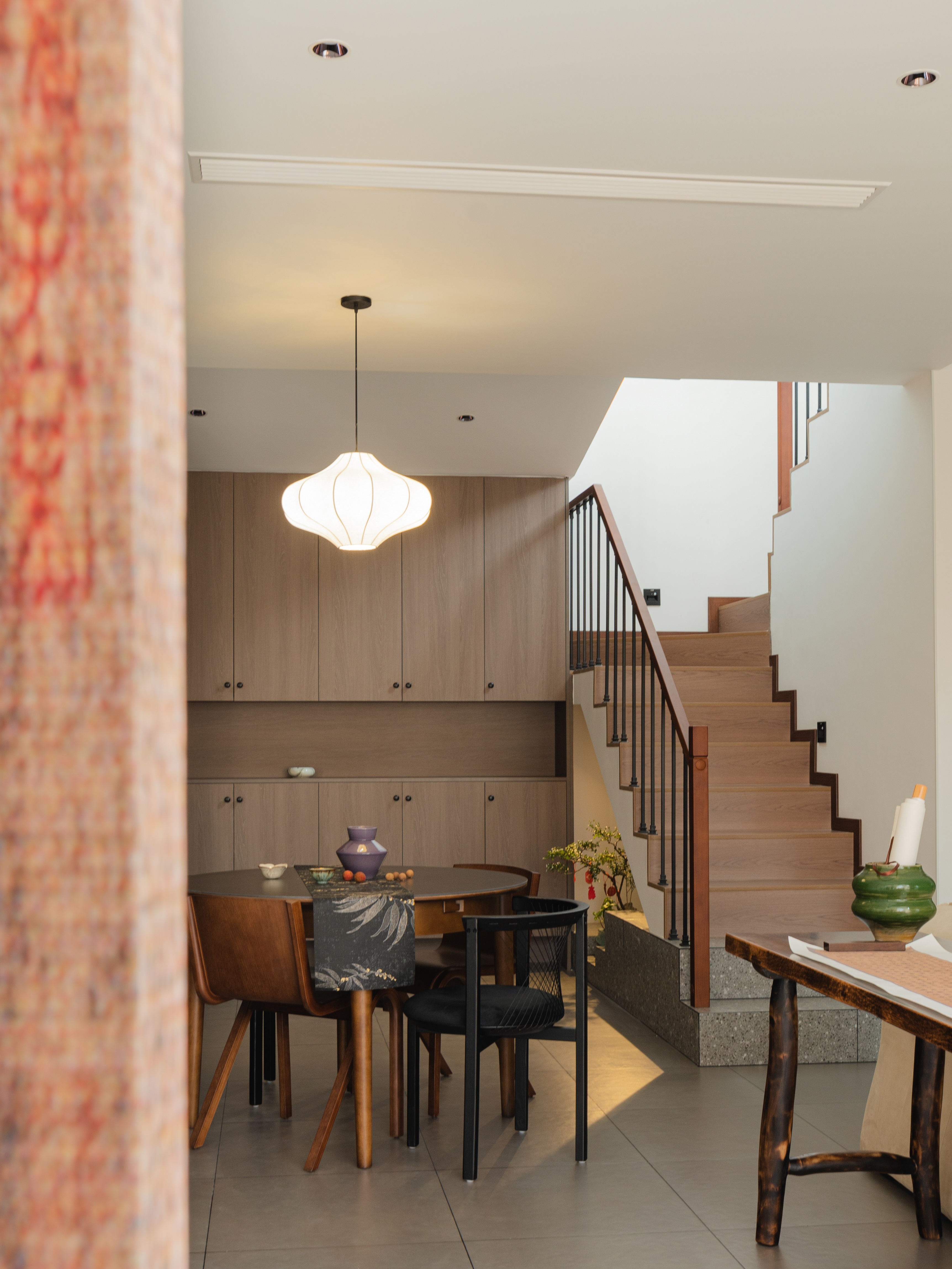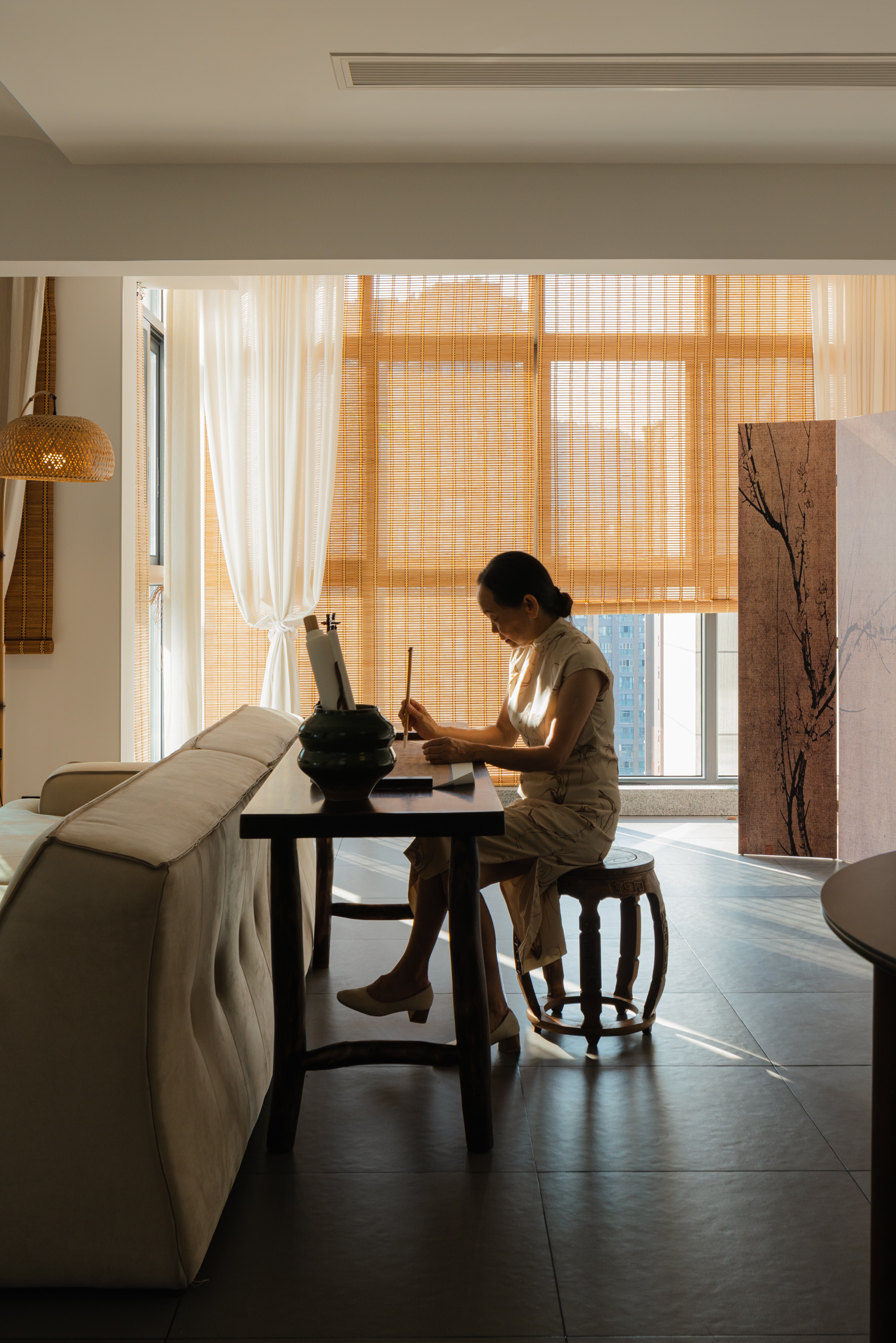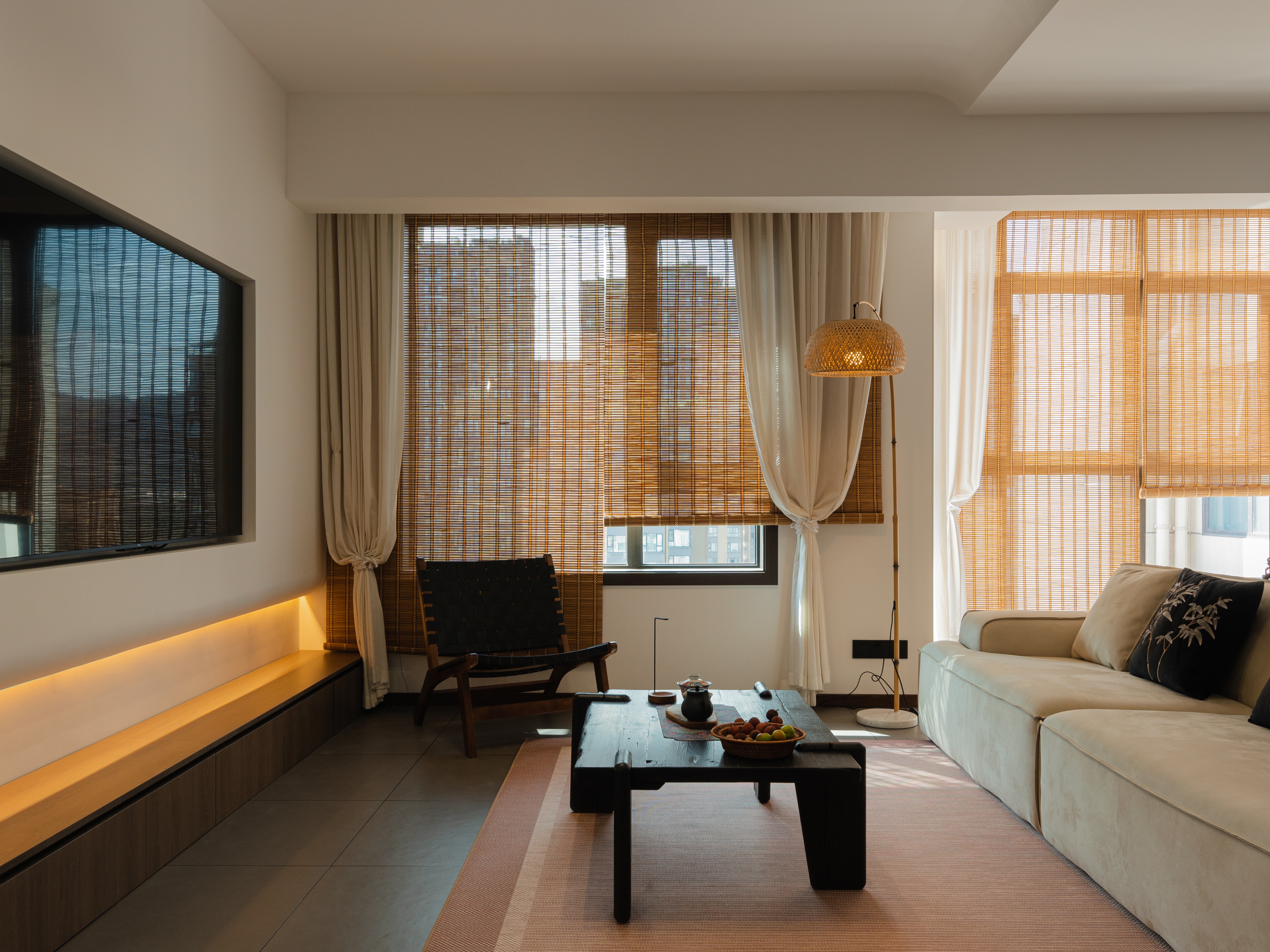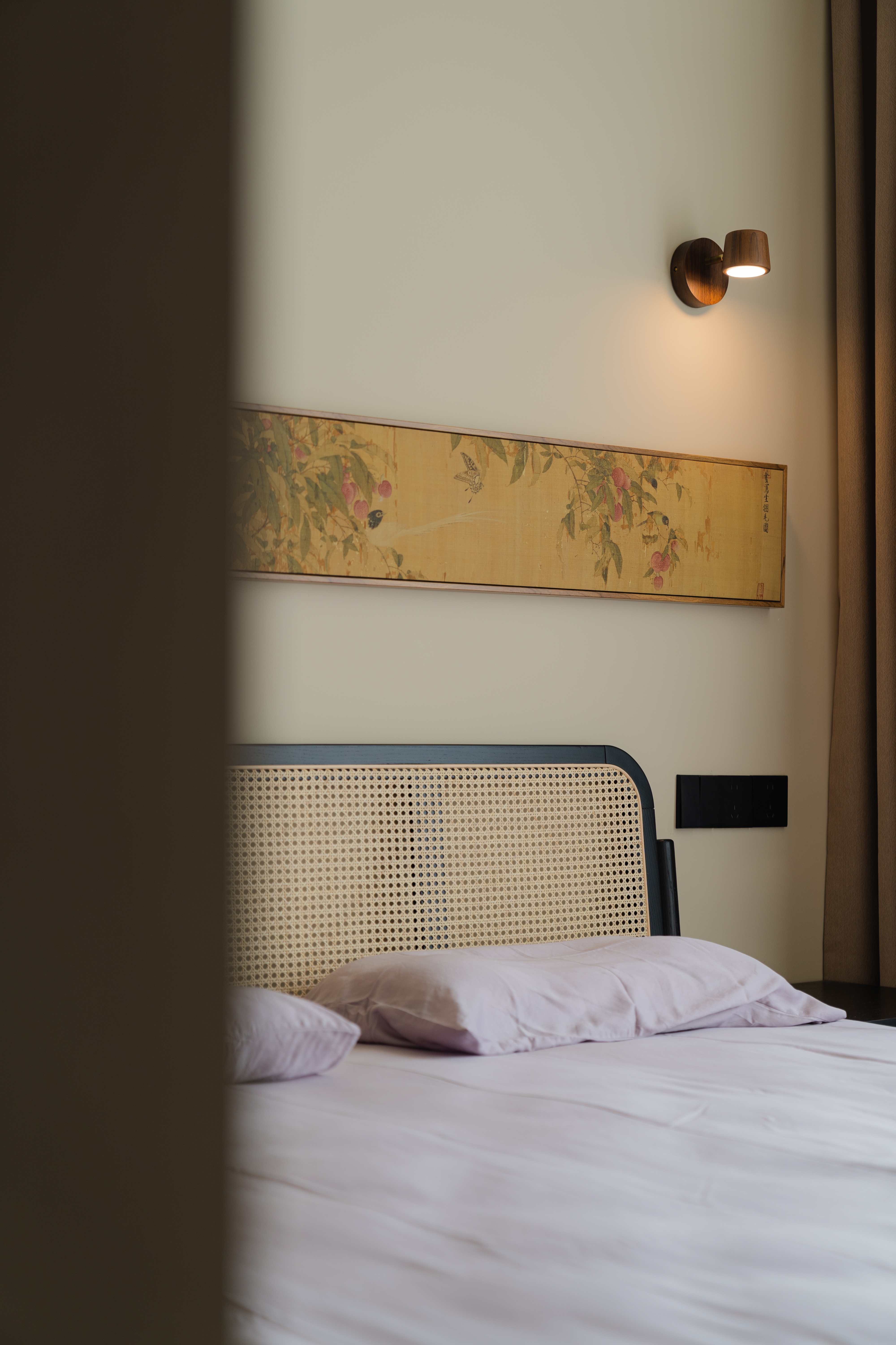 设计选材:多选用环保且具有中式韵味的木质材料,使空间呈现出自然与松弛的氛围。