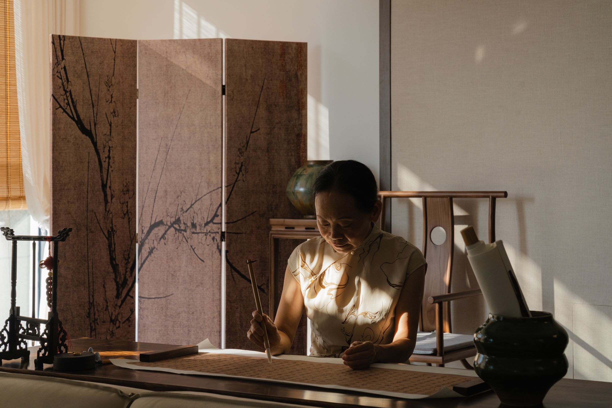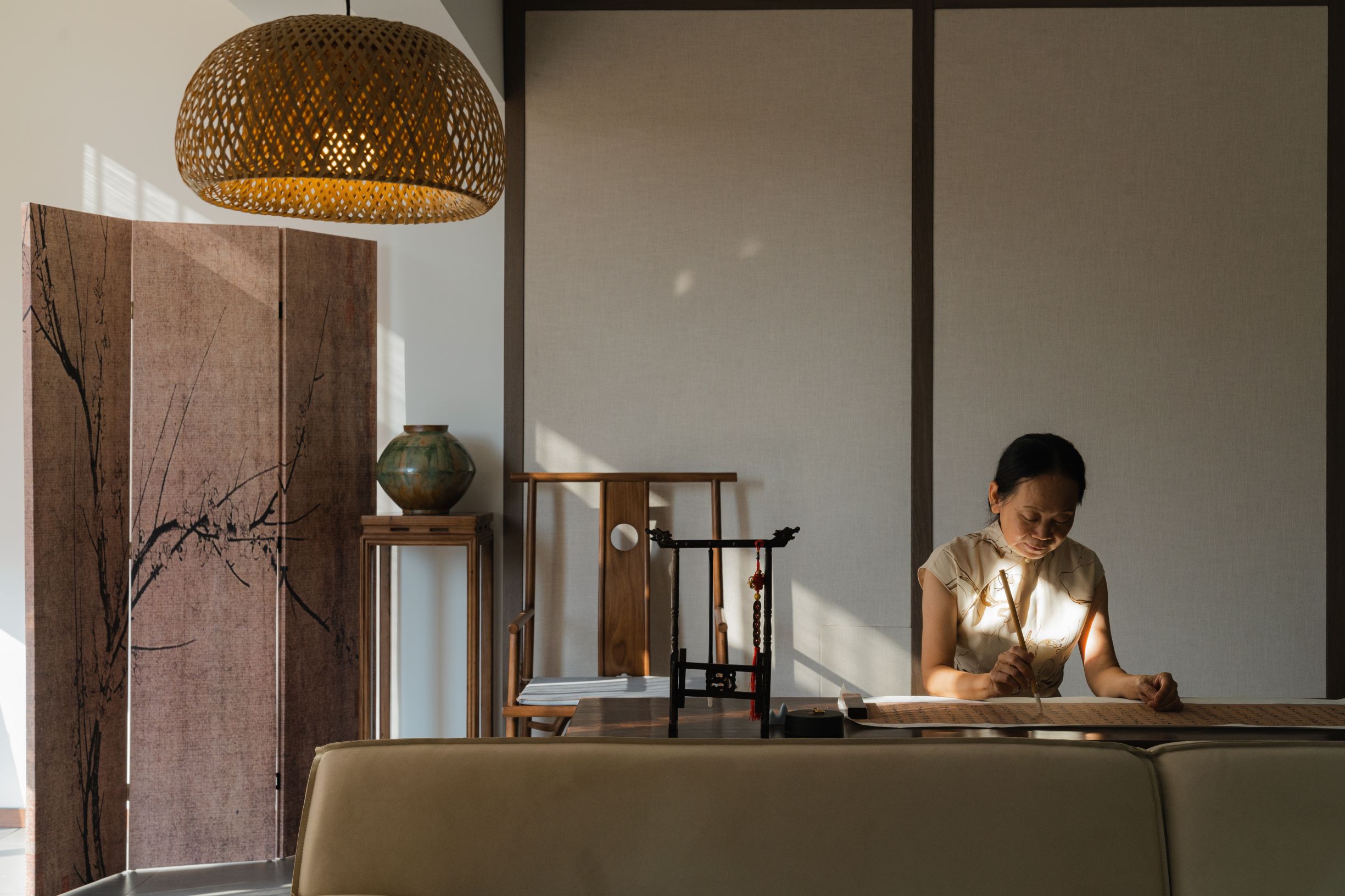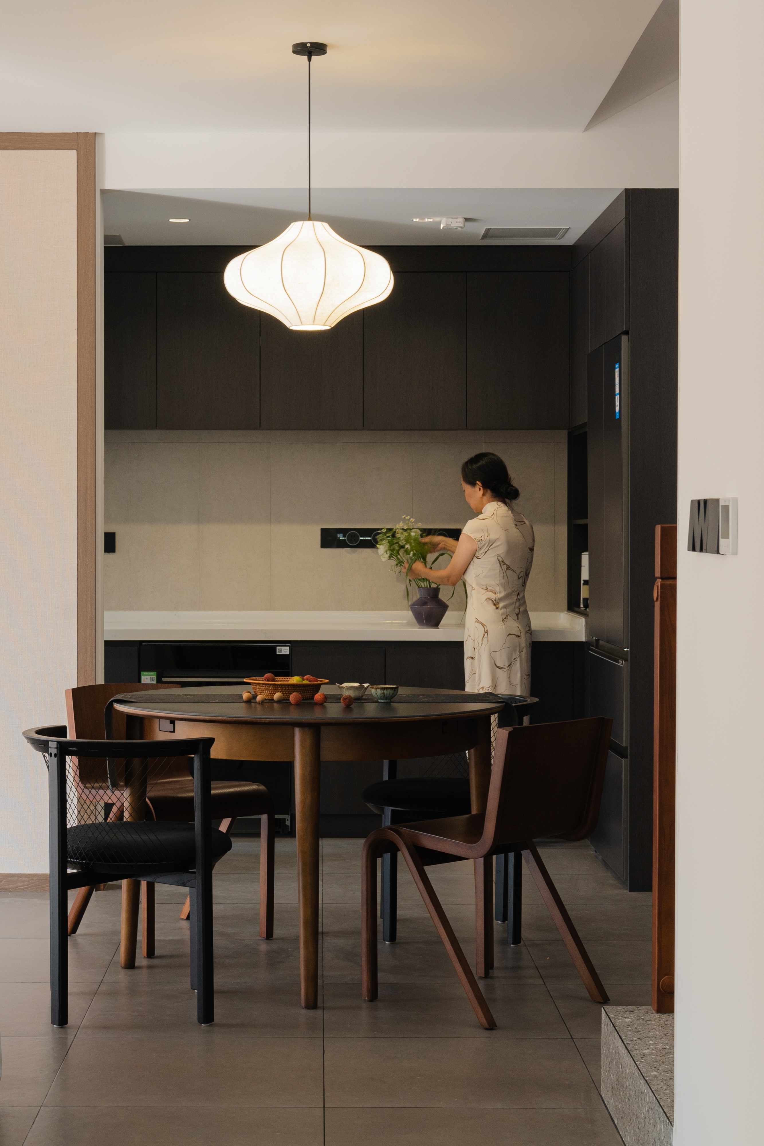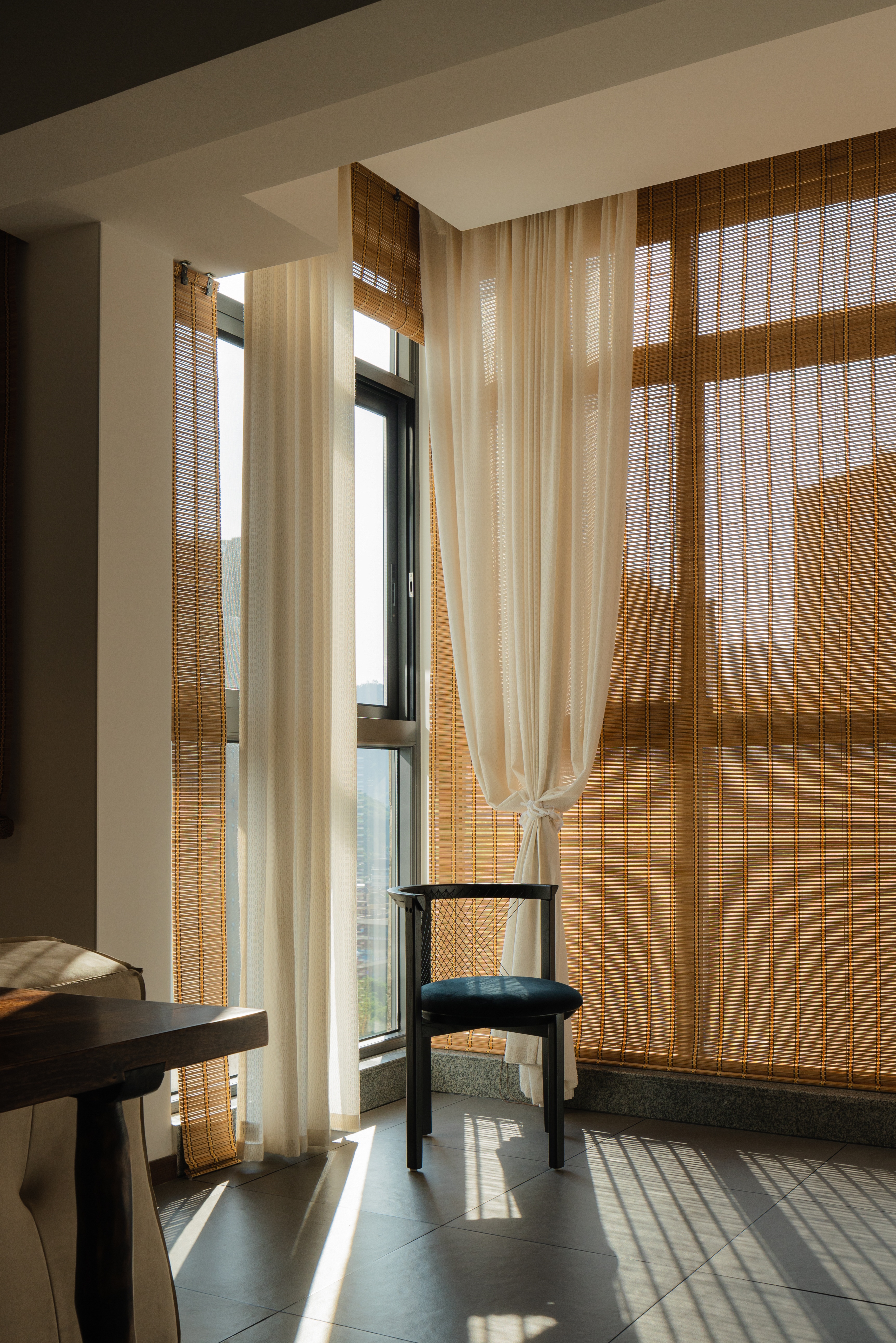 设计选材:多选用环保且具有中式韵味的木质材料,使空间呈现出自然与松弛的氛围。