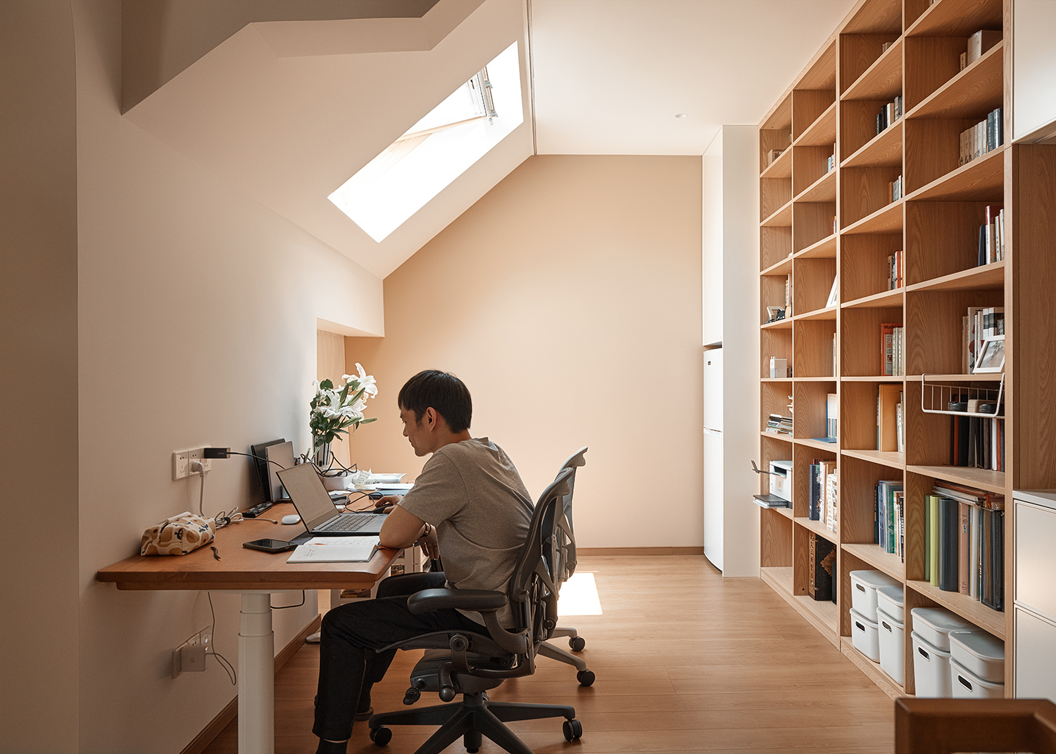 3二楼卧室与公共区域的平等与个性化设计:为了满足两个女儿对公平性的需求,设计师在二楼卧室的设计上力求一致,包括房间大小、家具、床品以及天窗等,都保持相同。同时,通过床头小摆件等个性化元素,展现出姐妹二人的不同喜好。此外,二楼还设置了公共区域,包括工作区、西橱柜和卫浴空间等,既满足了家庭成员的各自需求,又促进了家庭互动。