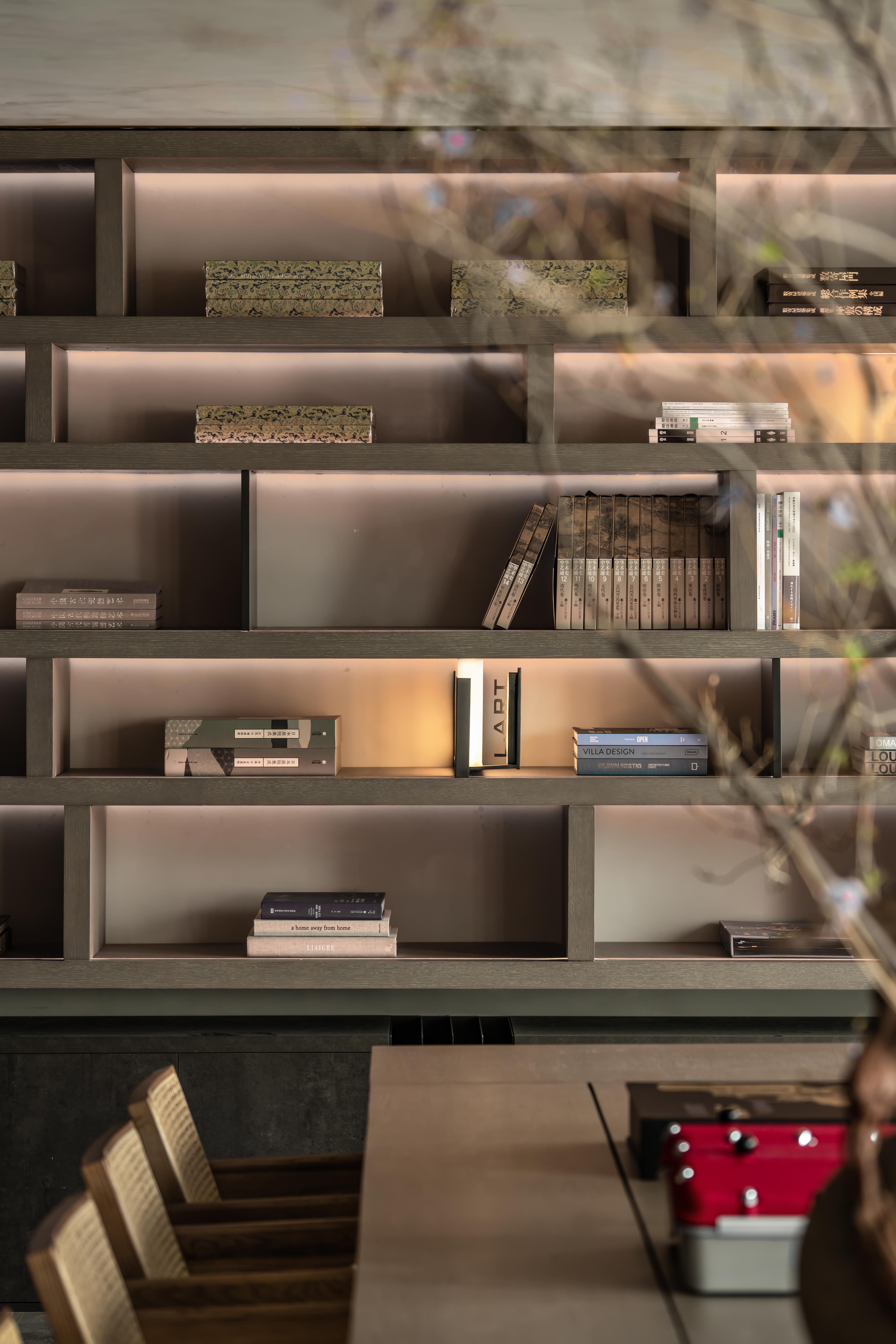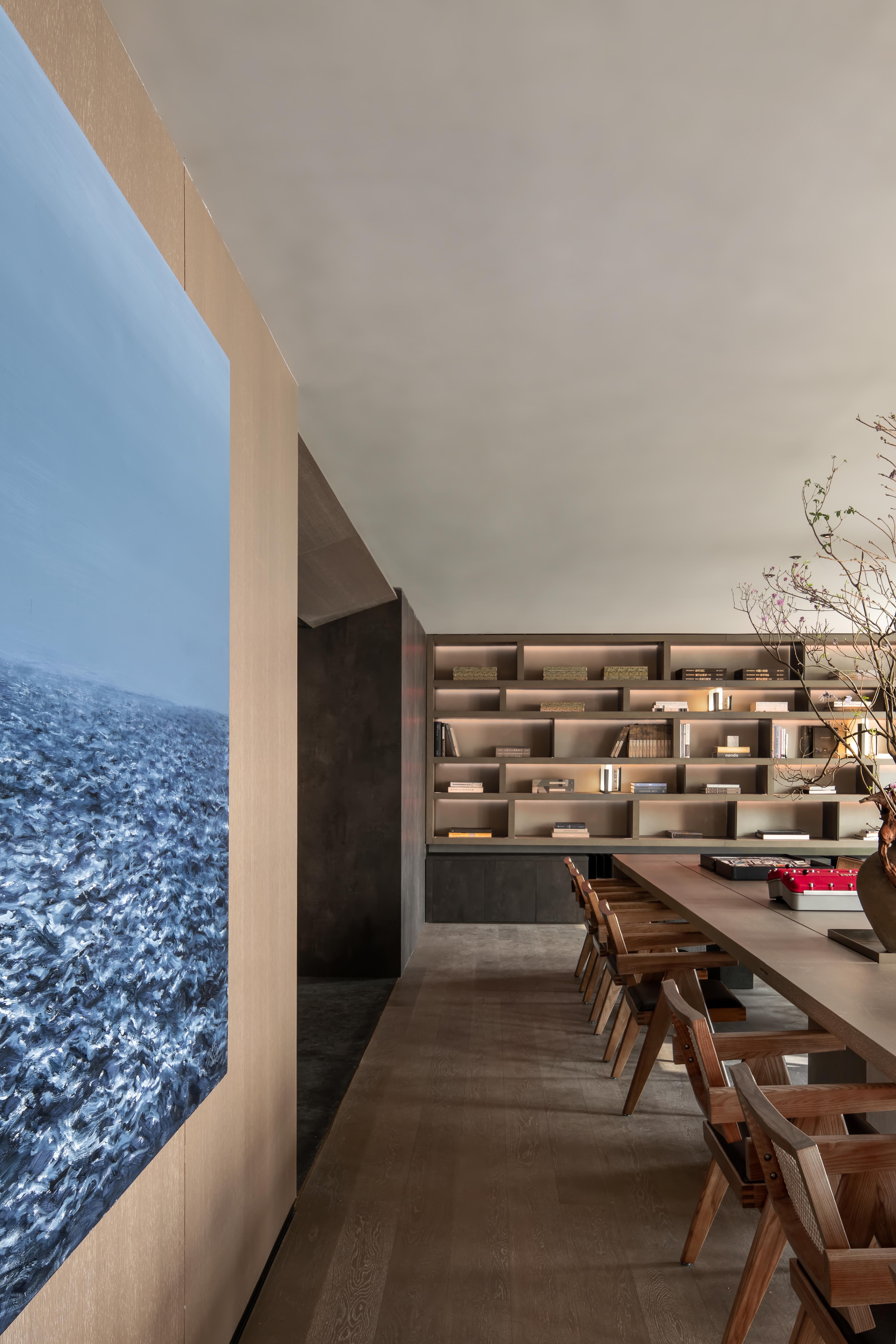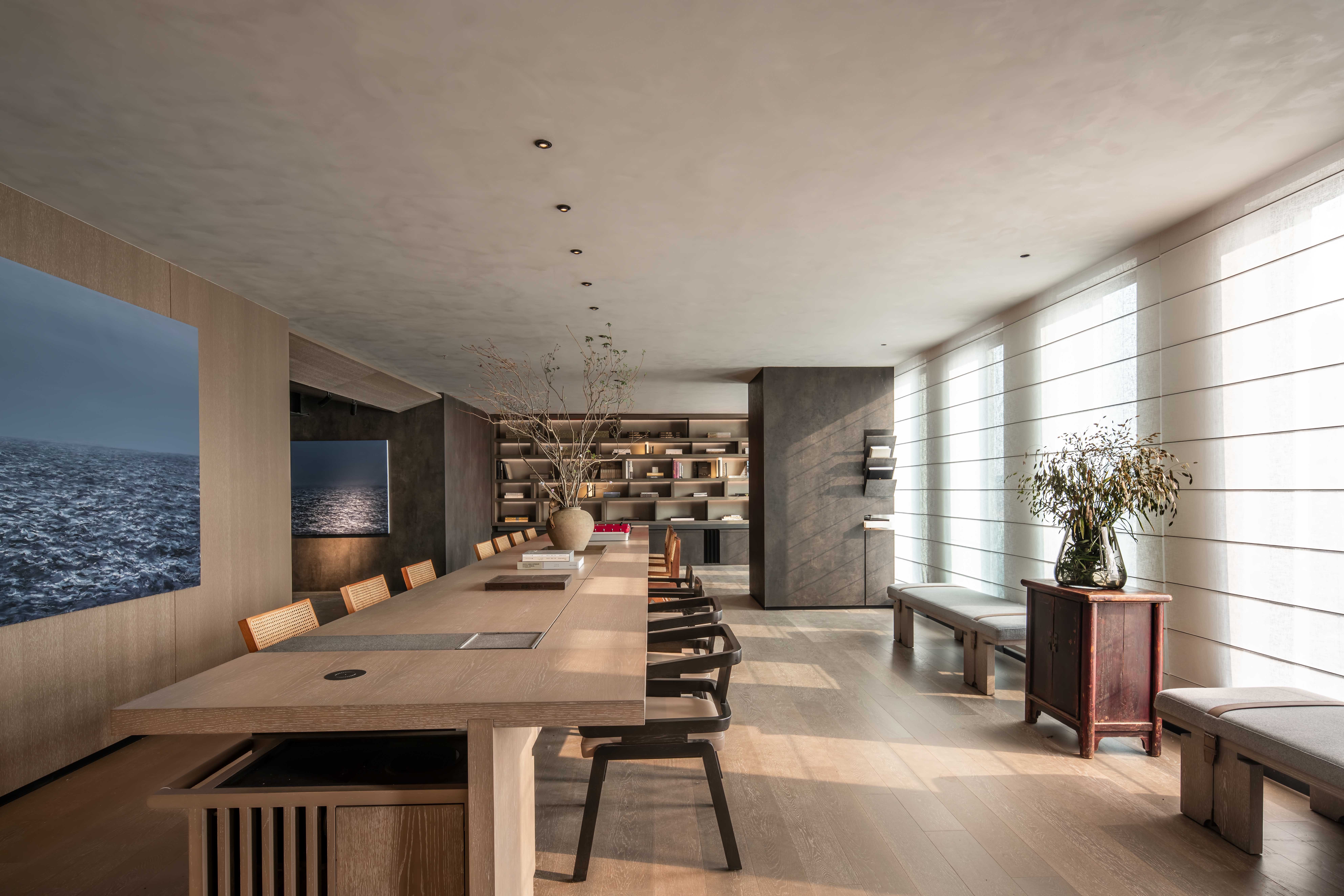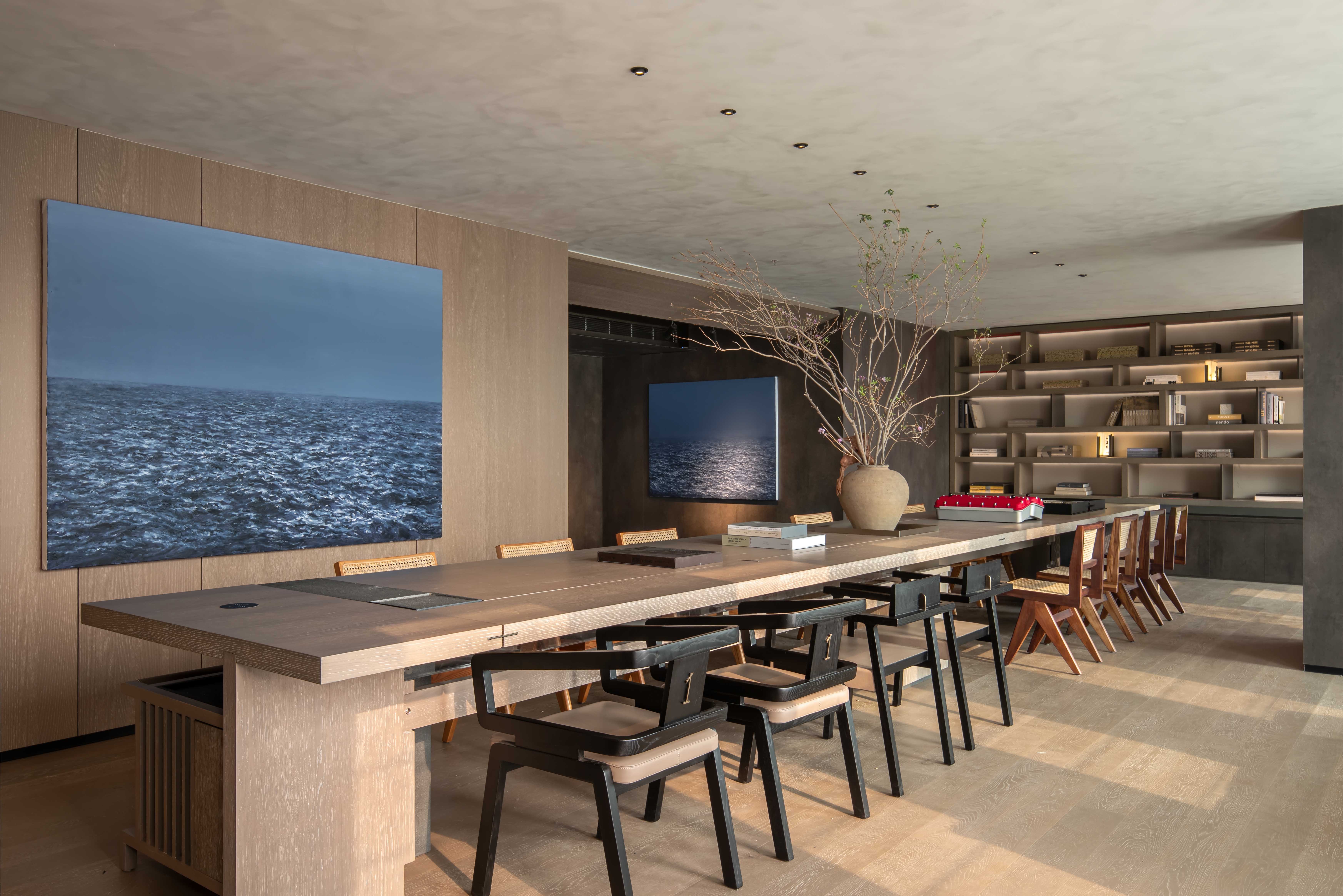 为了打破传统办公区域严肃的刻板印象,「办公艺术馆」中,除办公空间外,设计师将其它空间布局分为茶室、书房、艺术空间等,在保留自身独特性的同时,又顺理成章的串联为一体,承载工作以外的其他多样化场景。