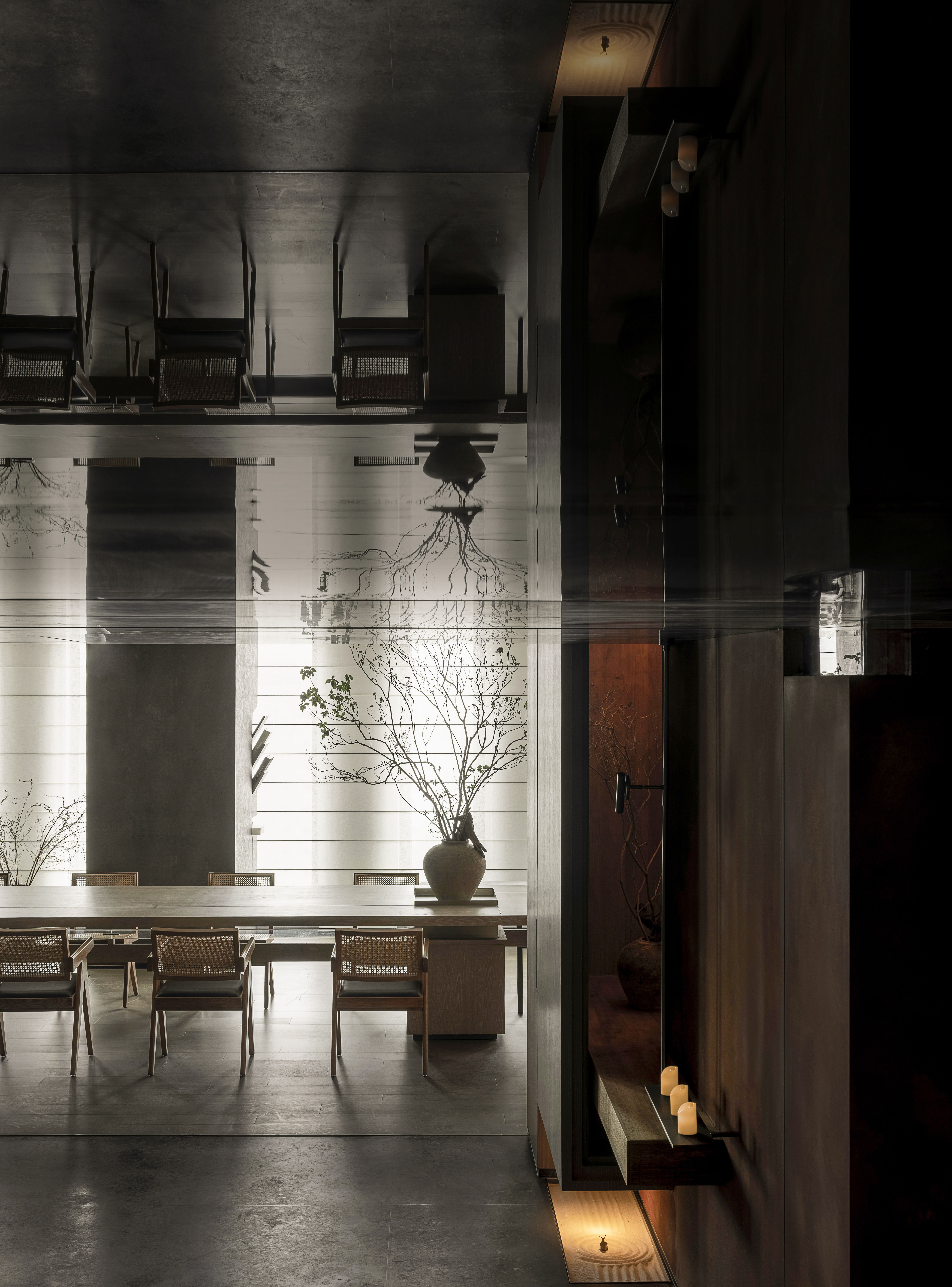 在一个设计师围坐的公共空间里,如何衡量规矩与创造、镜面与空间、平行与交互、虚拟与现实的边界,在多维度视角下拥有不同氛围感知,在一个有限的空间里,给人无限遐想,是我们需要思考的课题。