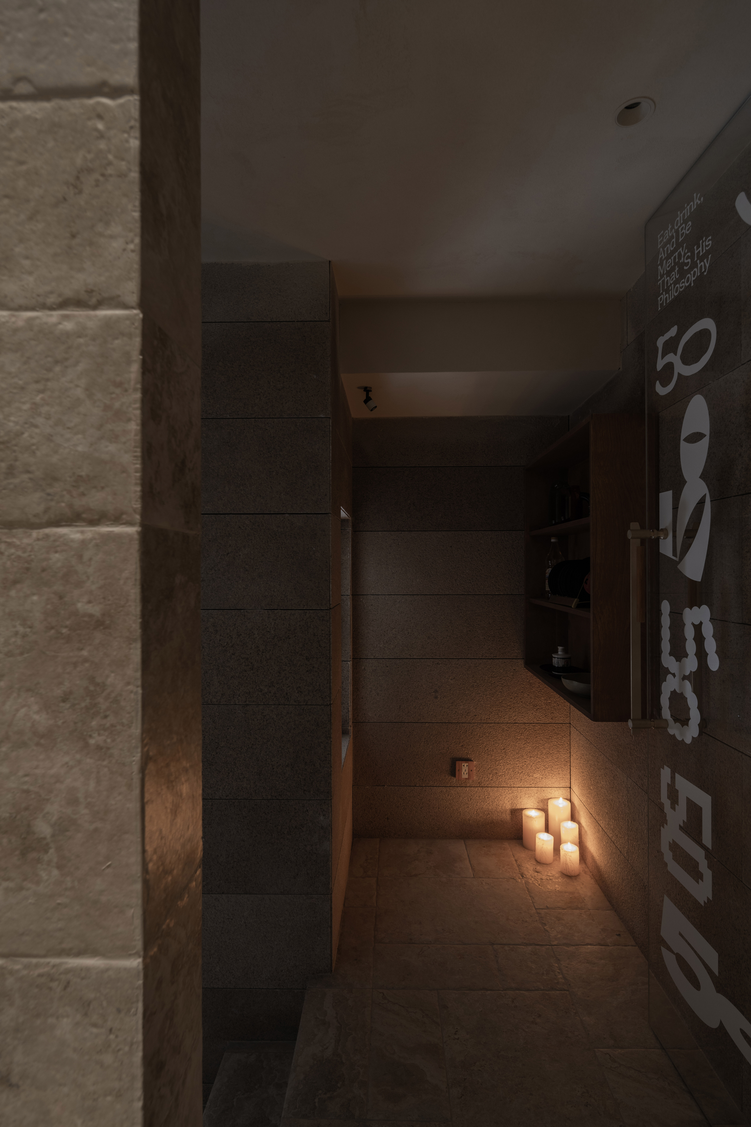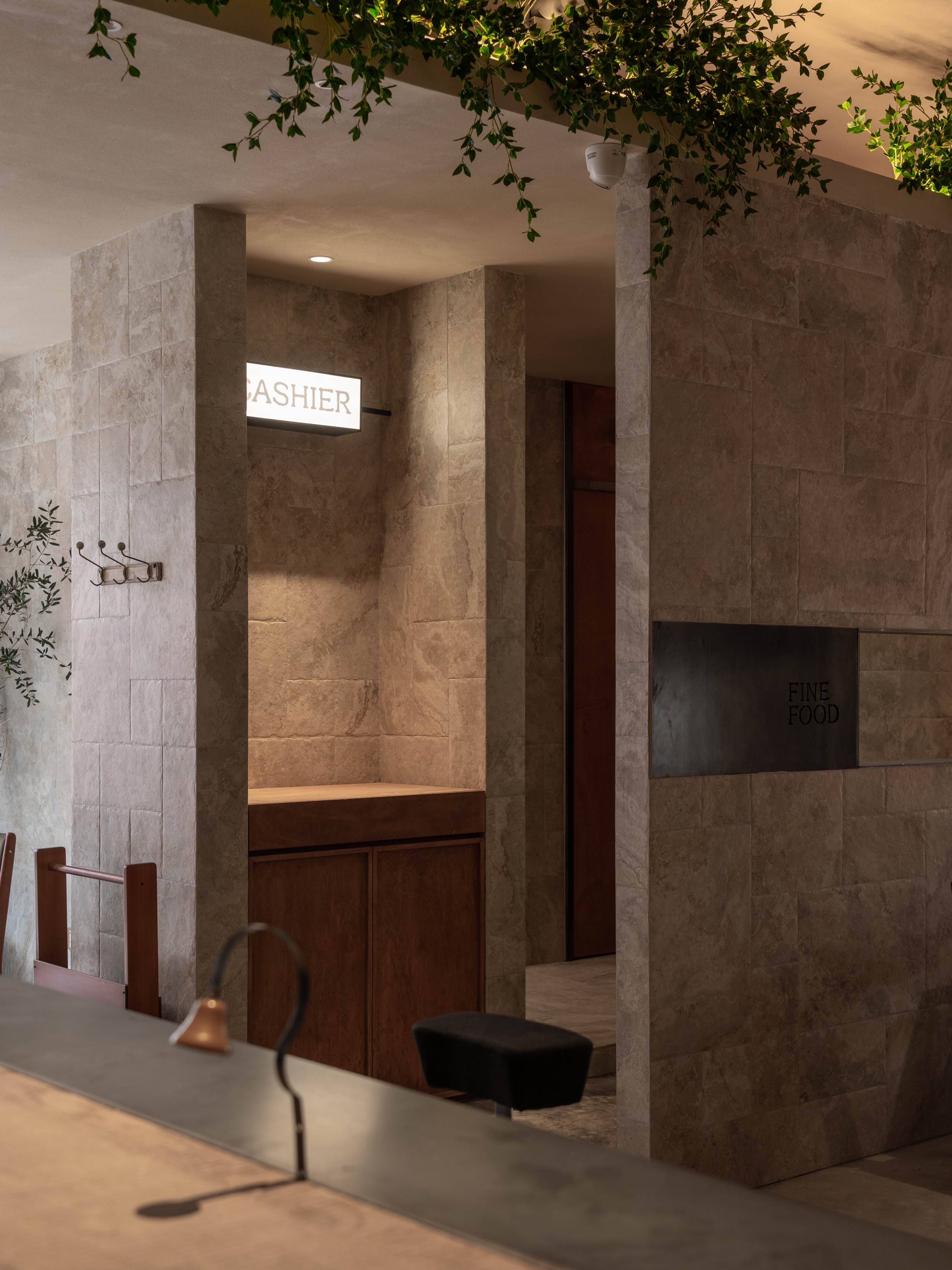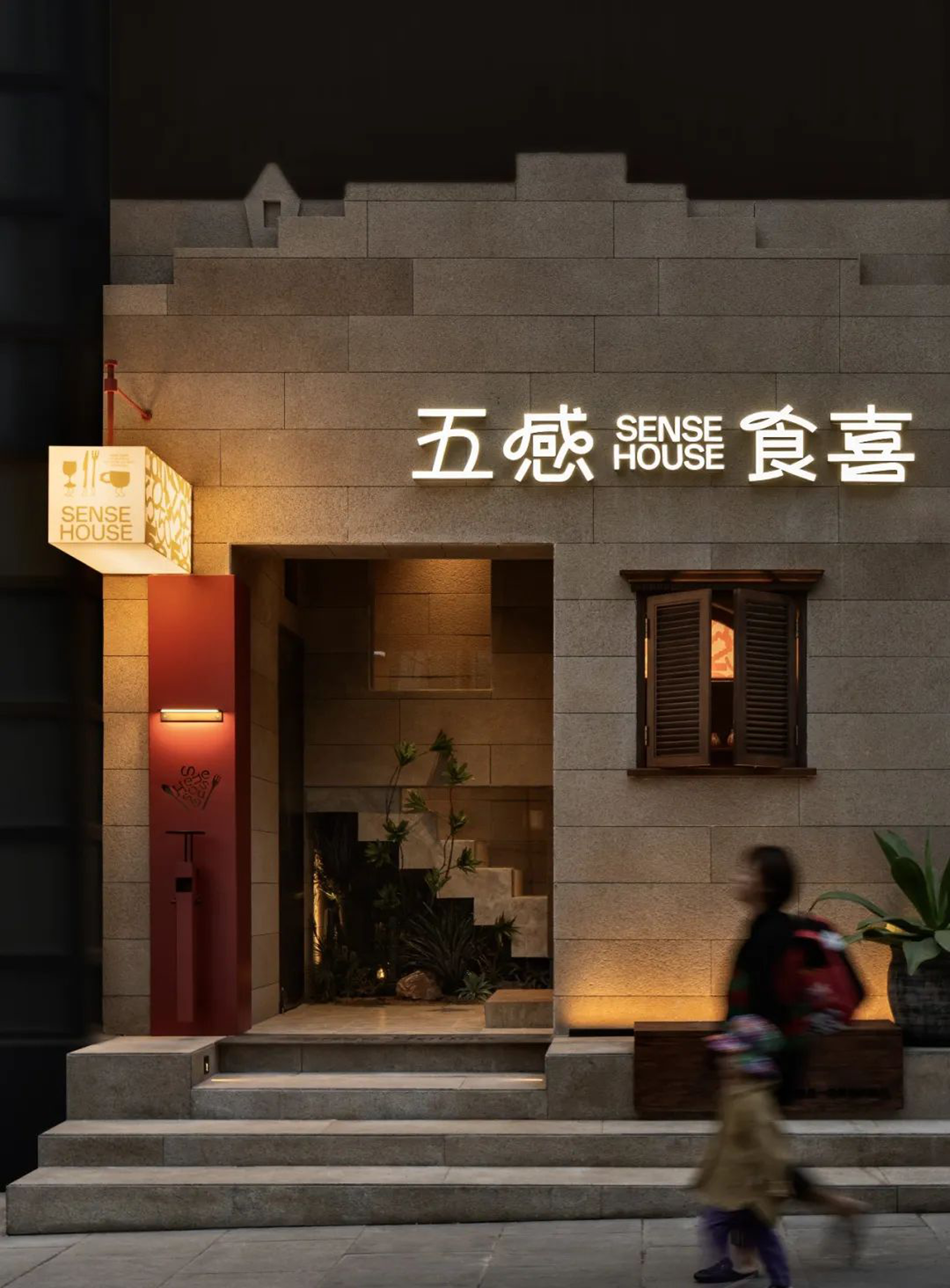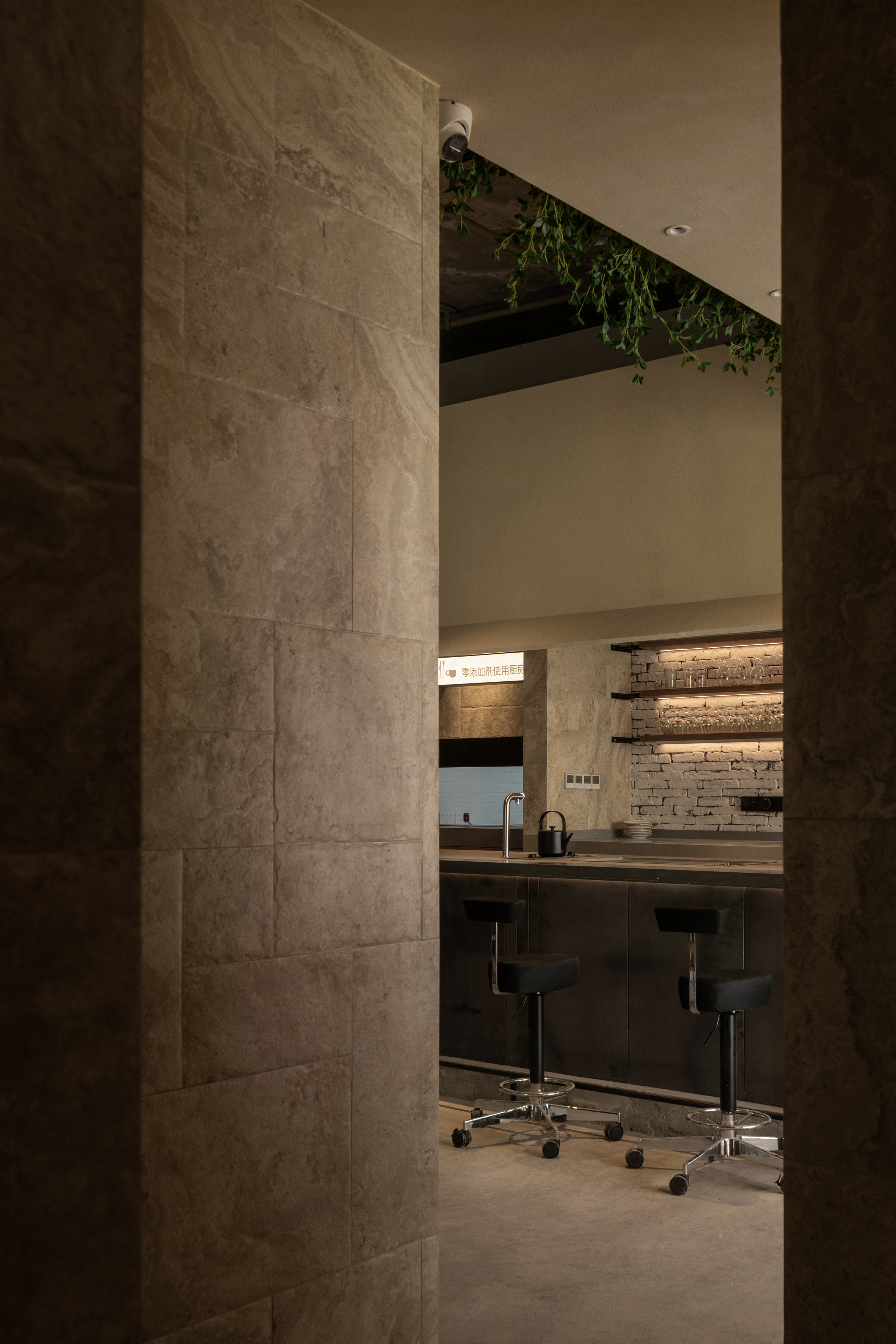 在五感食喜餐吧中,石材的运用旨在消弭传统建筑的隔离感,让整个餐厅在街区里显得别具一格,触摸墙面能感受到天然材料的力量感,这种设计理念源自旧石器时代的居住智慧,那是属于对石头城马泰拉建筑的保留,为现代都市生活提供了独特的安全感和情感价值。