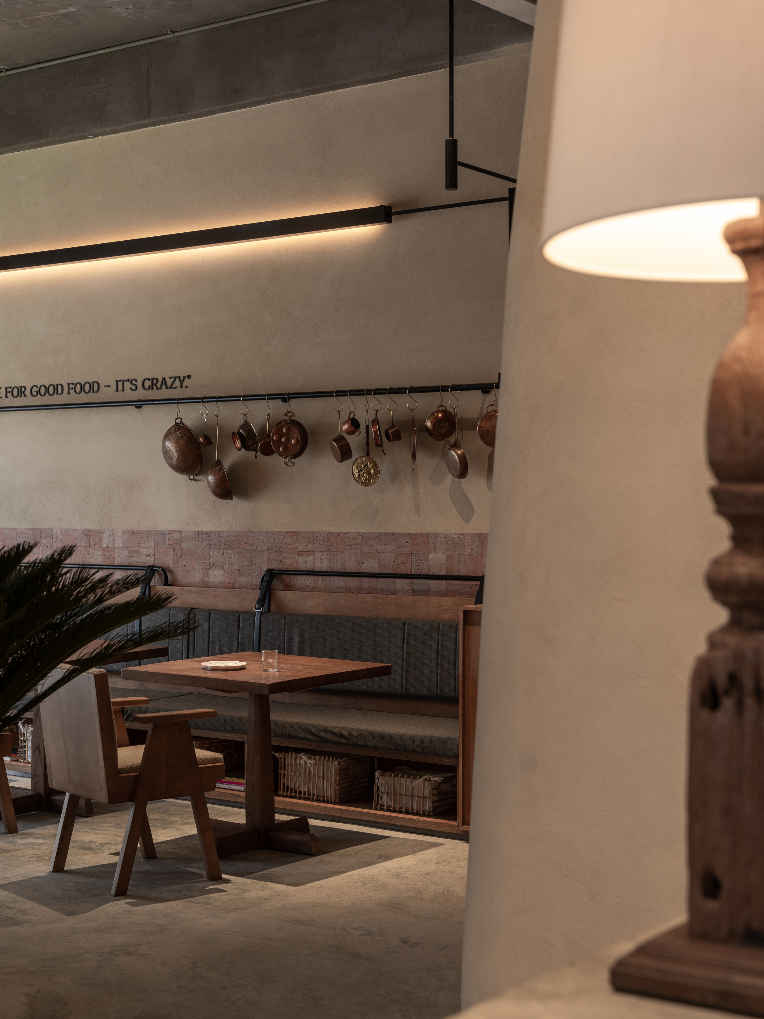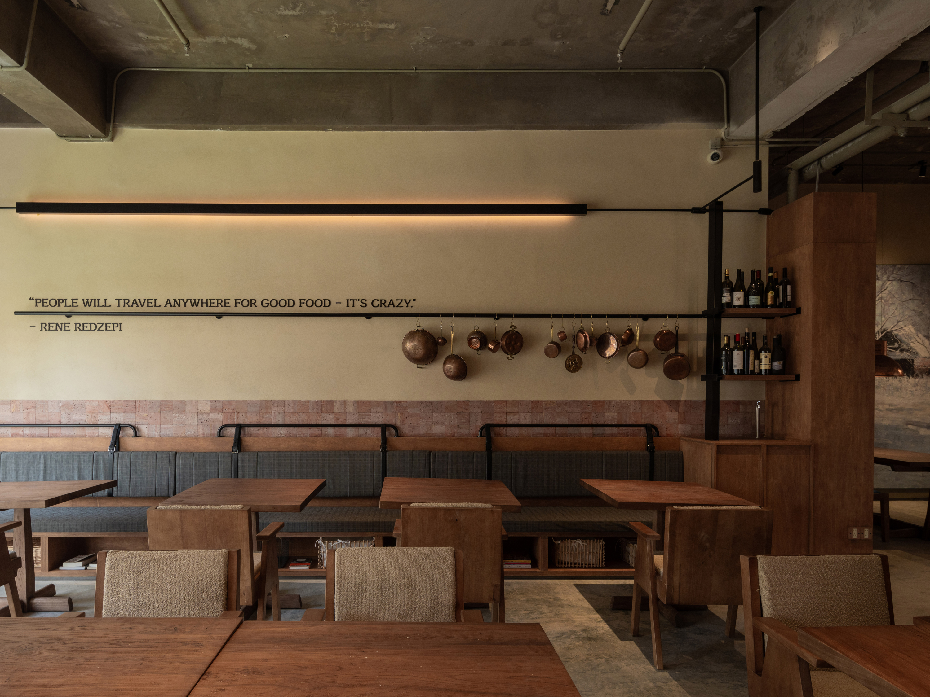 设计中大量运用了木质和石材元素, 以营造质朴而自然的就餐环境。通过这些元素的巧妙运用,空间本身就能够讲述一个关于时间、自然和文化的故事。 -