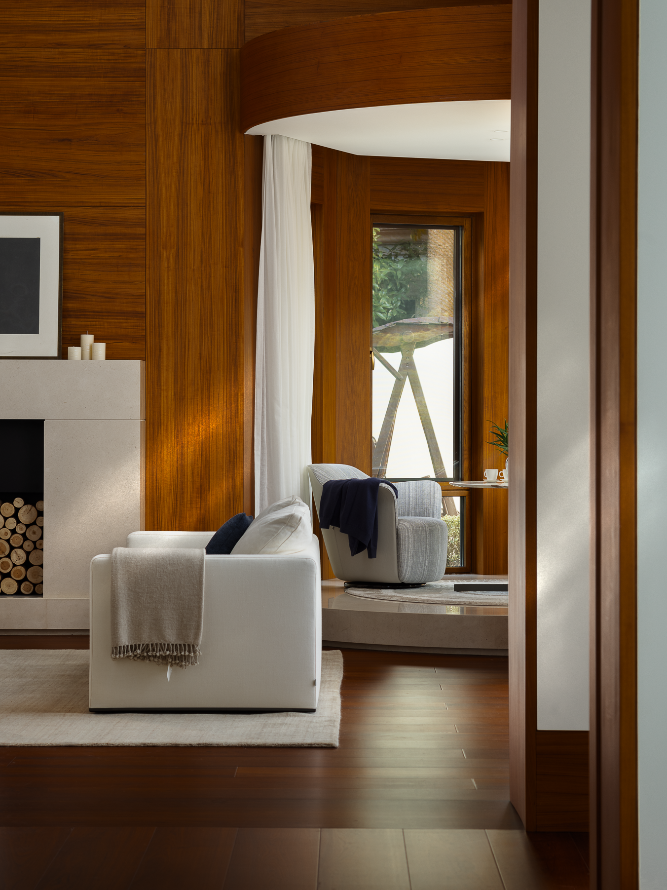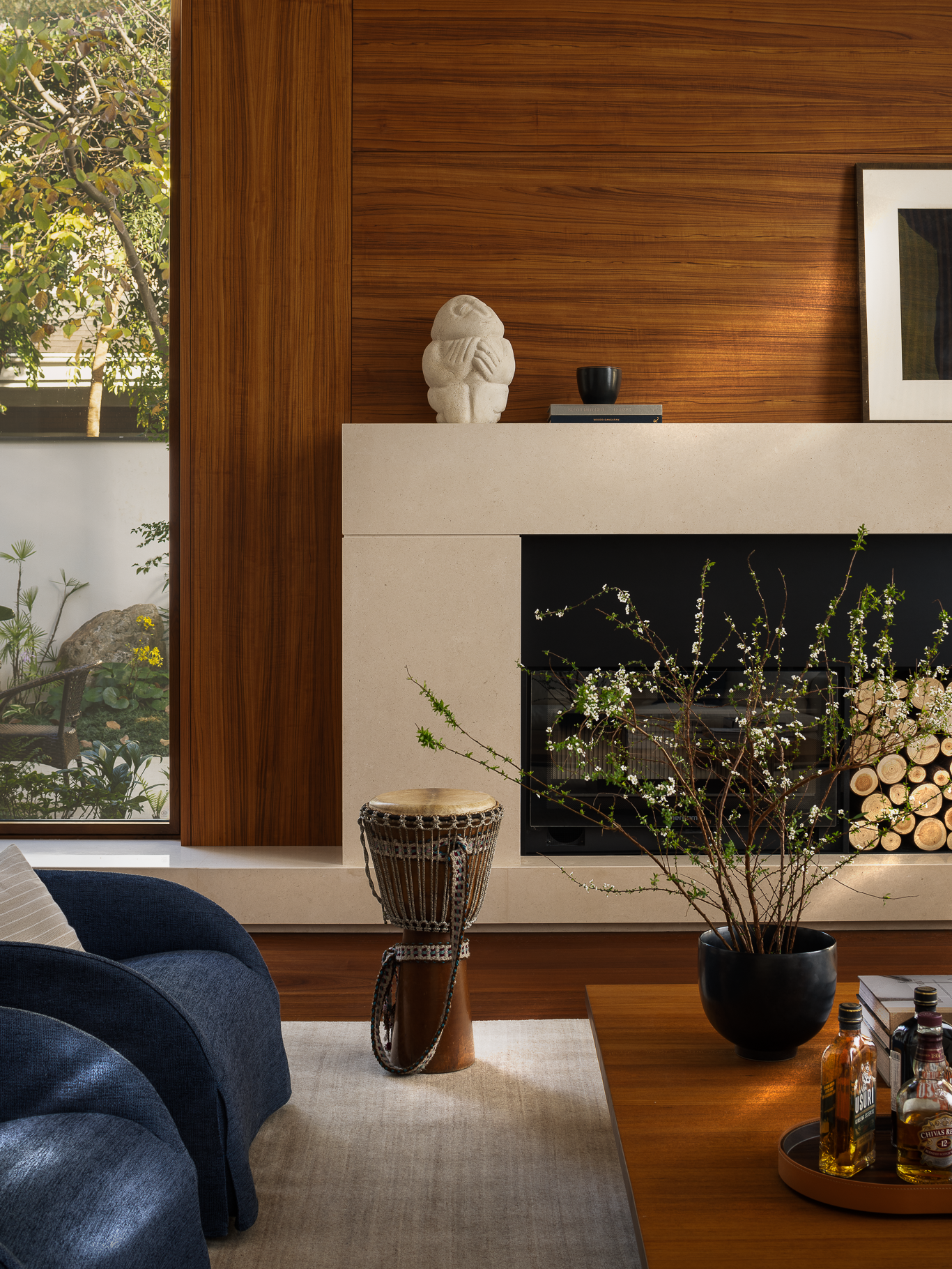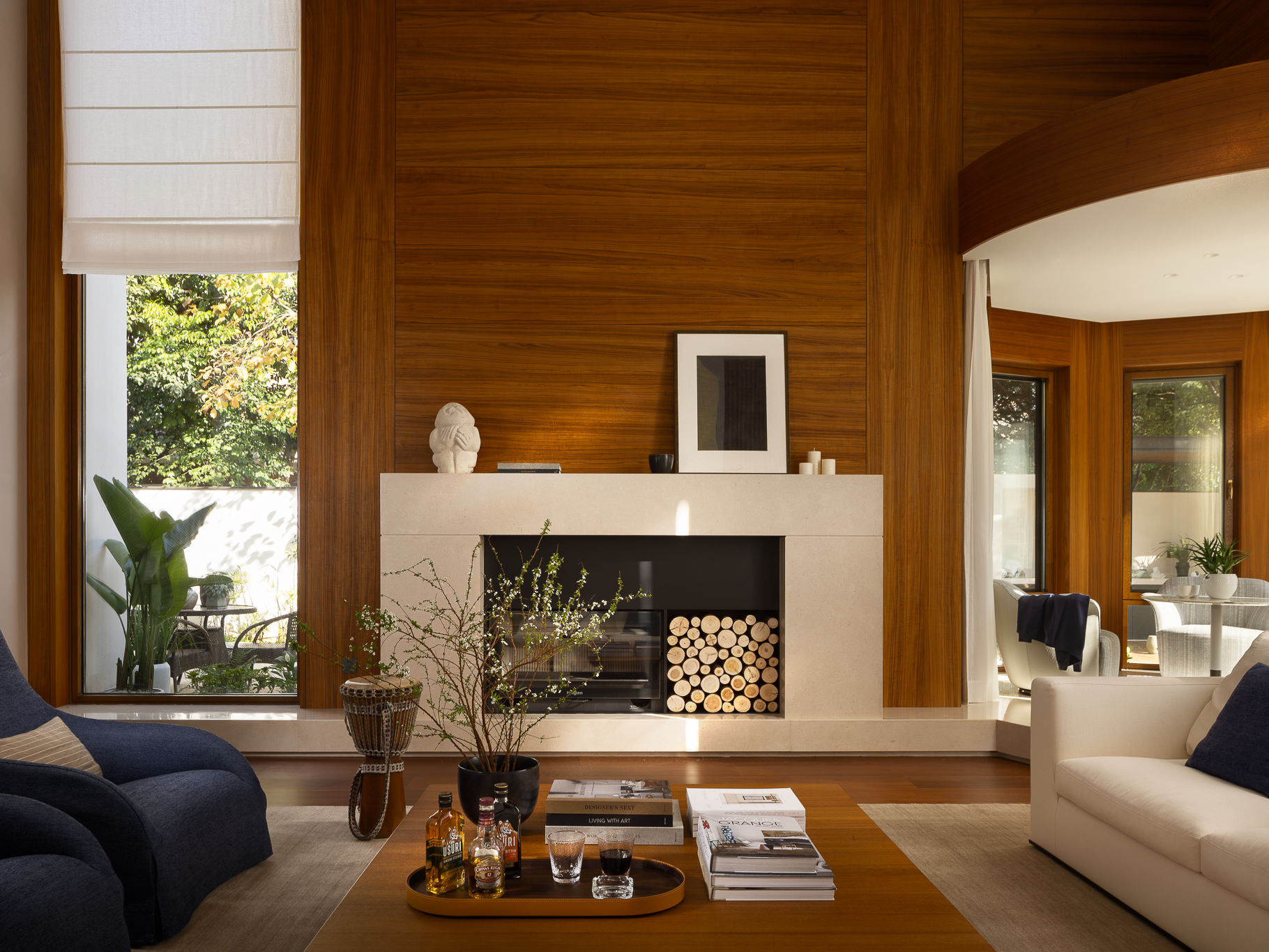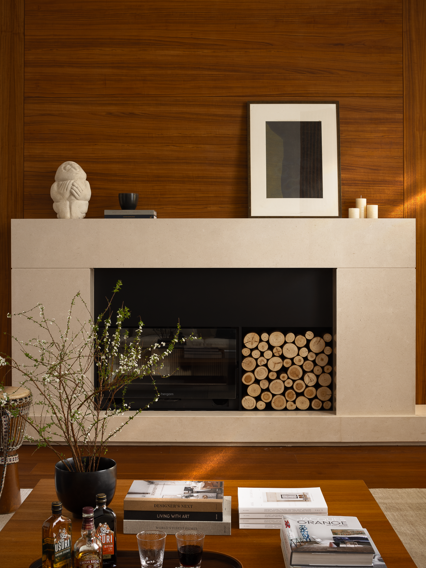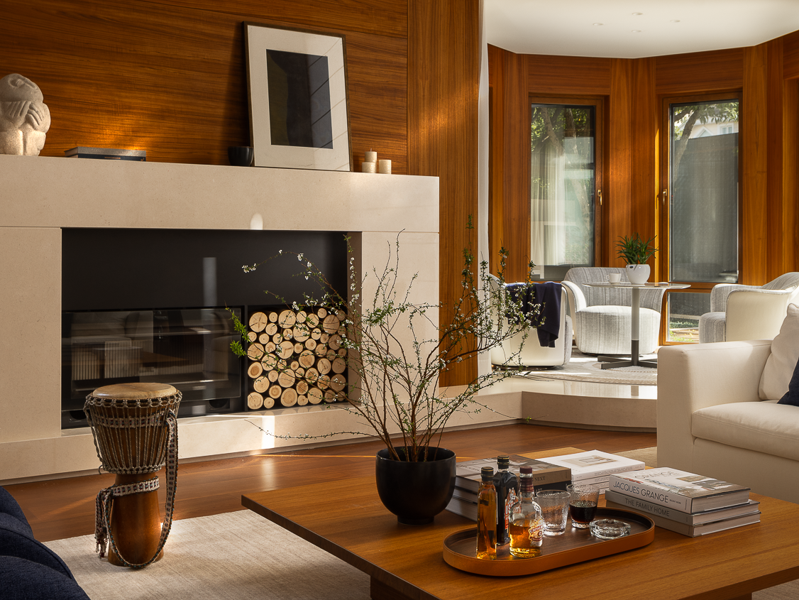 壁炉将山野的原始温度引入室内,模糊了都市与自然的边界,开启一场新的生命力感知。