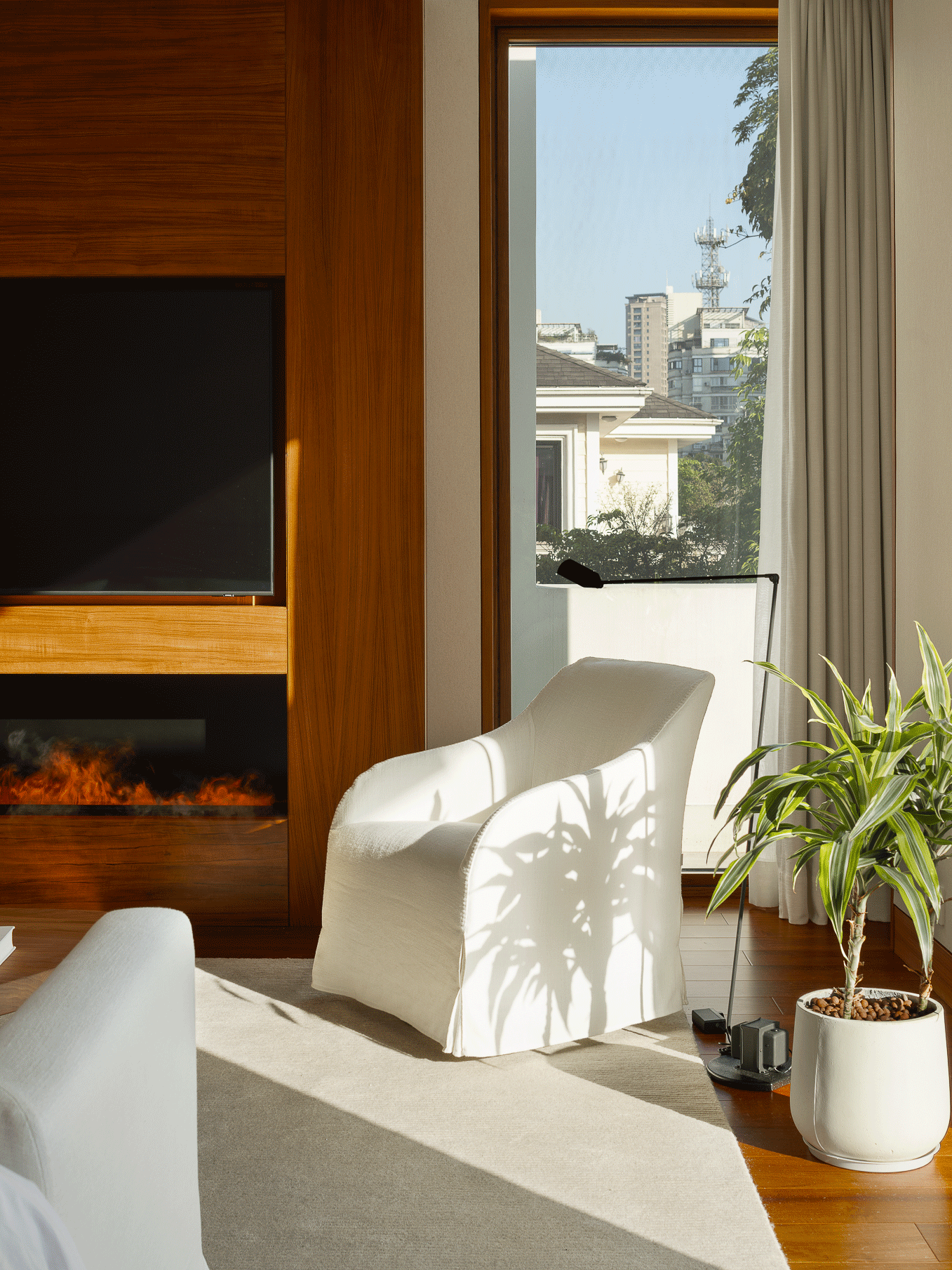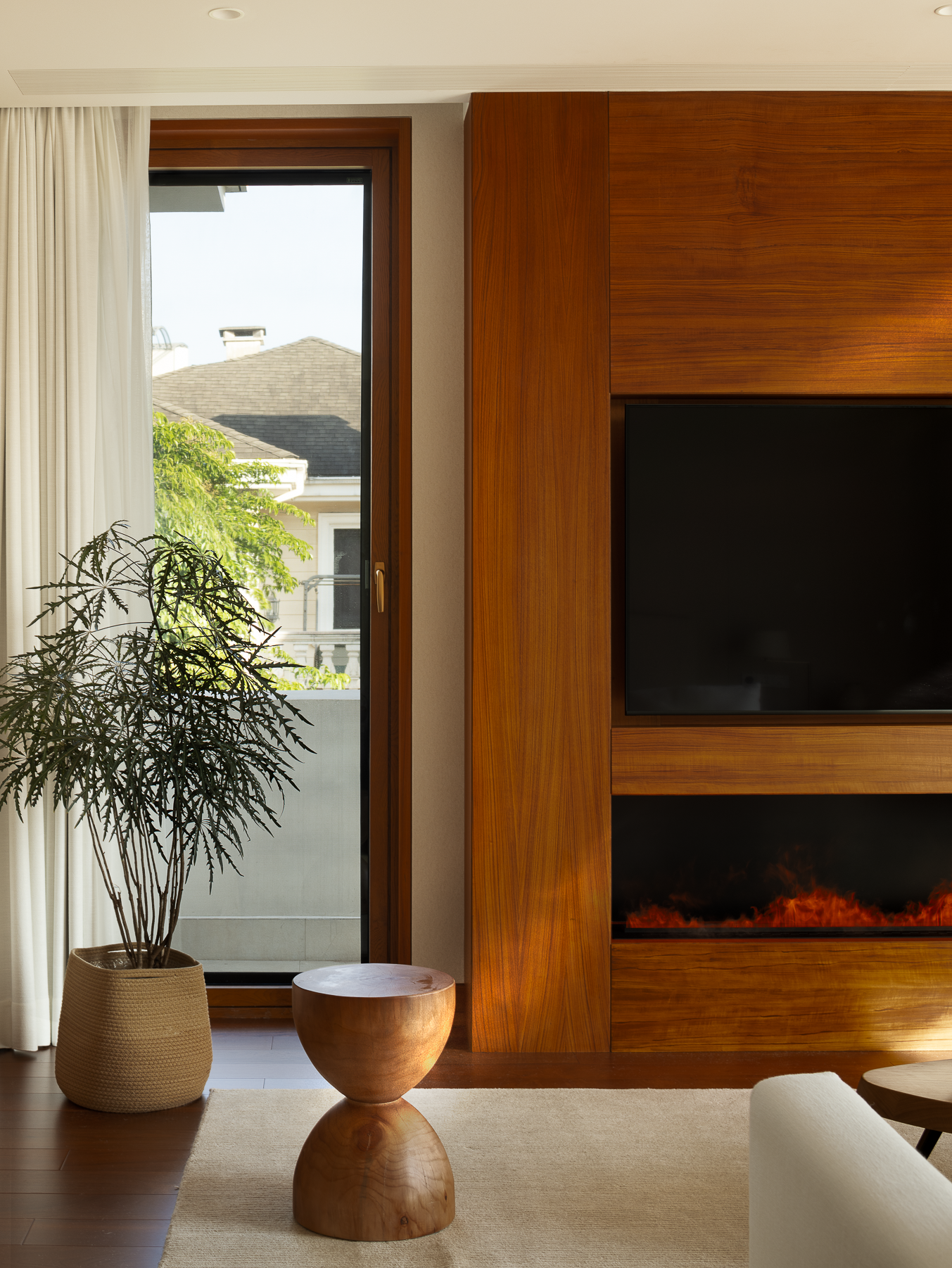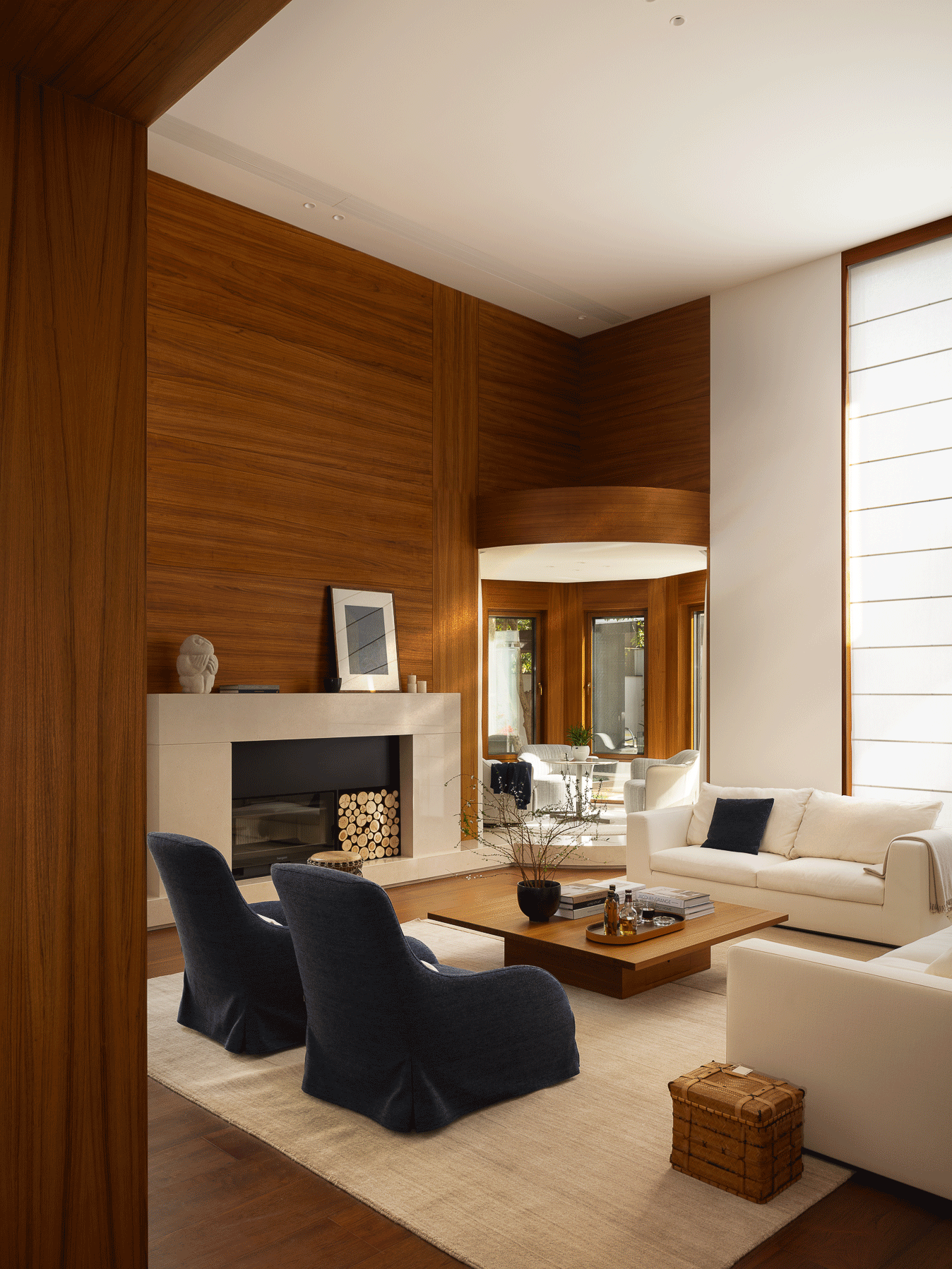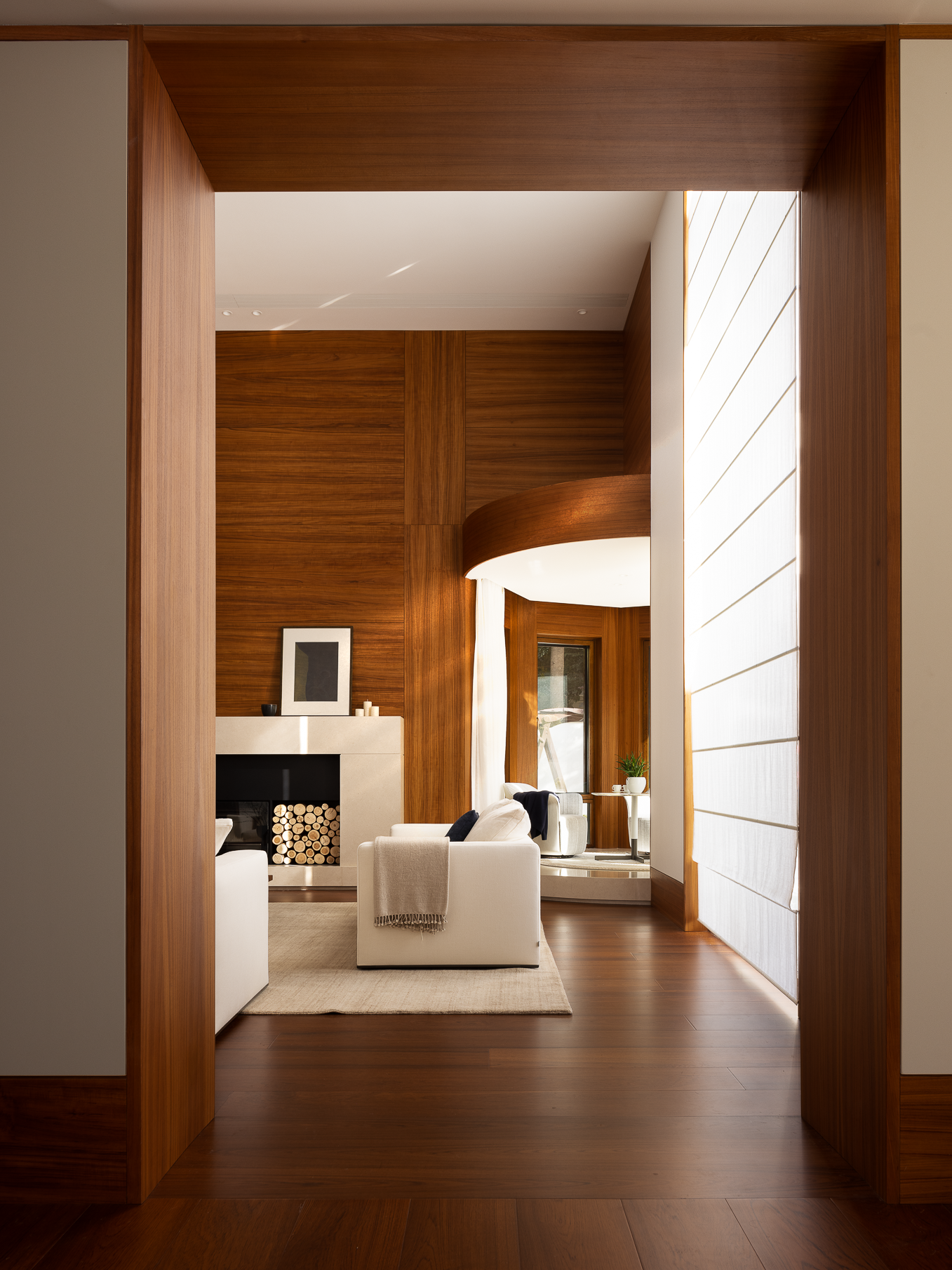壁炉将山野的原始温度引入室内,模糊了都市与自然的边界,开启一场新的生命力感知。