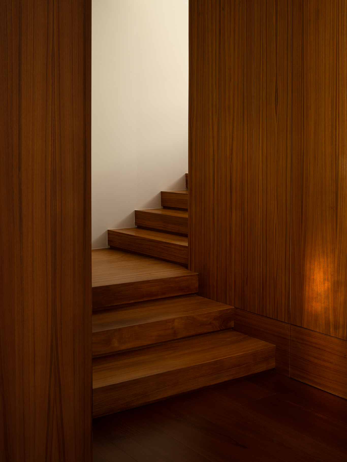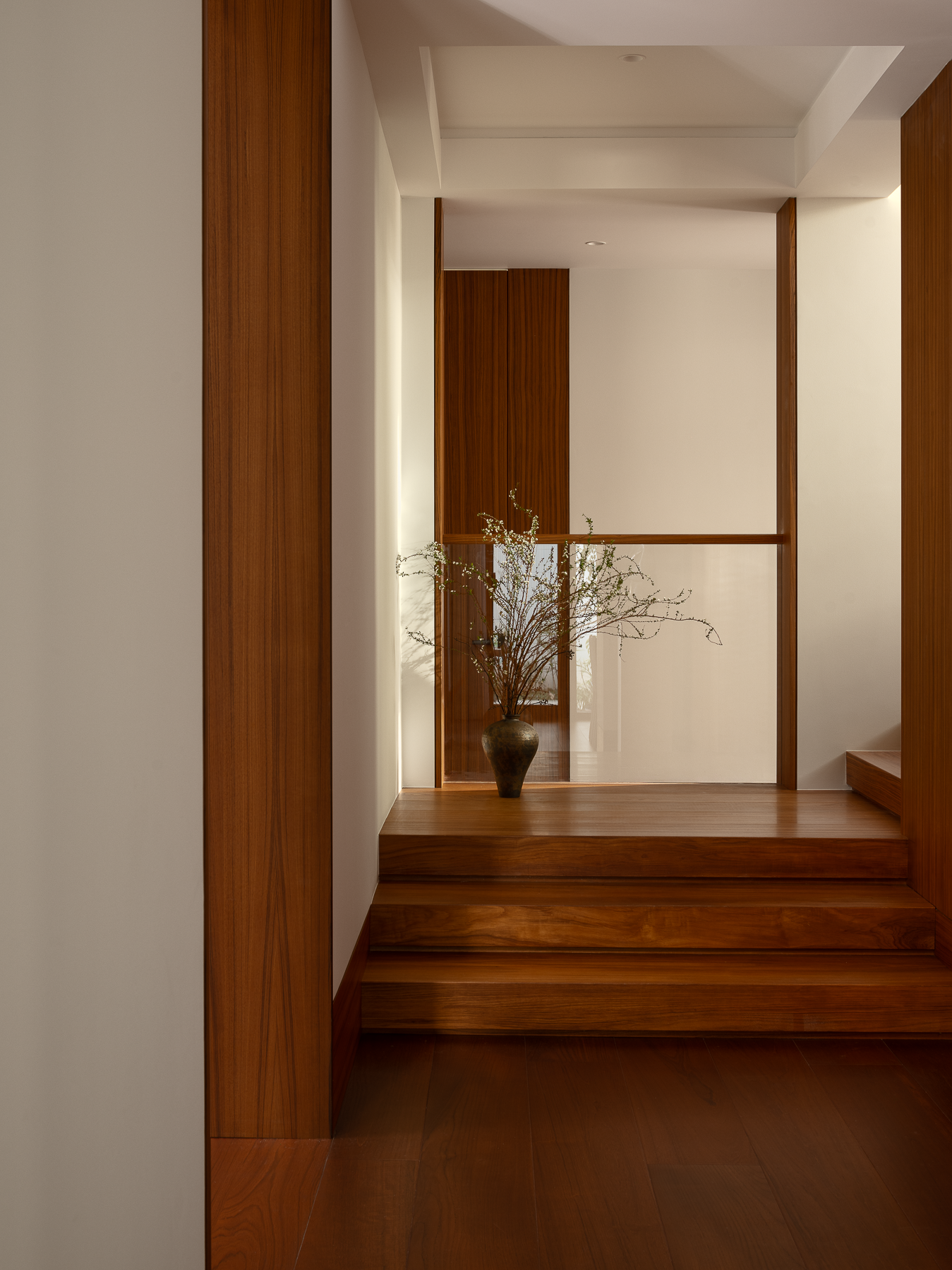 当设计突破审美的惯性表达,便会捕捉到更为韵美的情感体验。楼梯沿着建筑体攀升,秉承木之脉络体系,逐层共和自然底蕴,在每一处转角开启精神世界的序引,展现更加闲适从容的空间过渡。