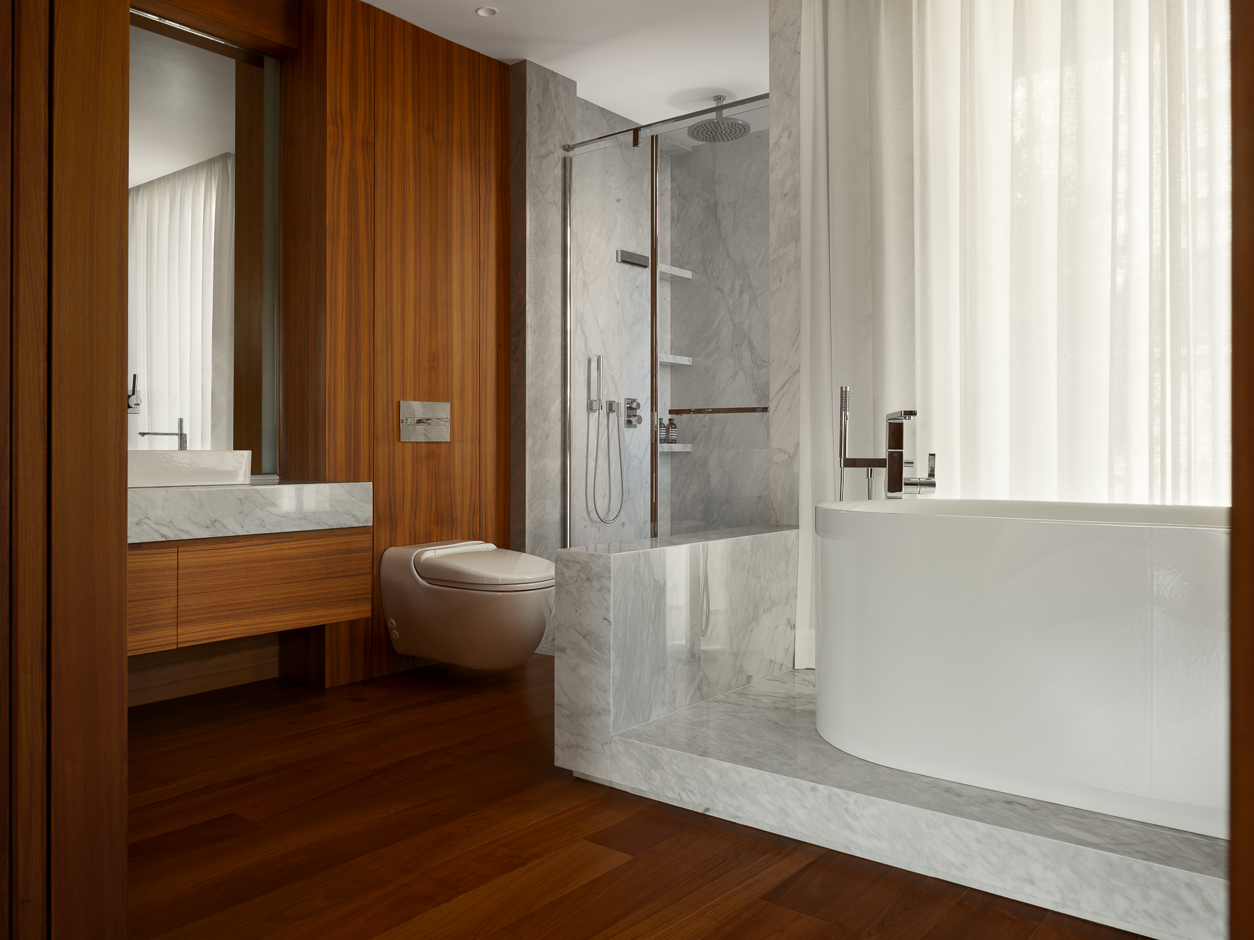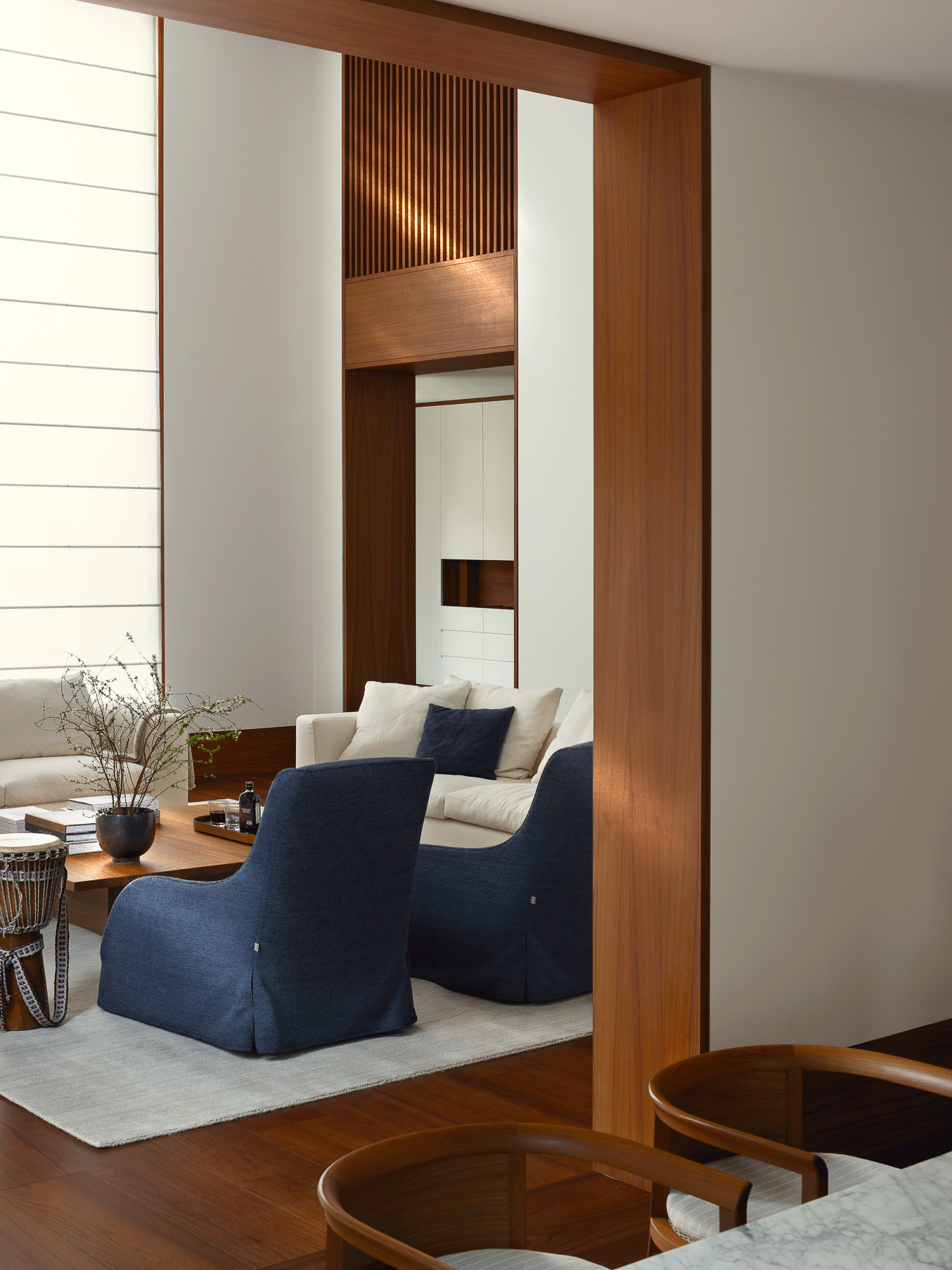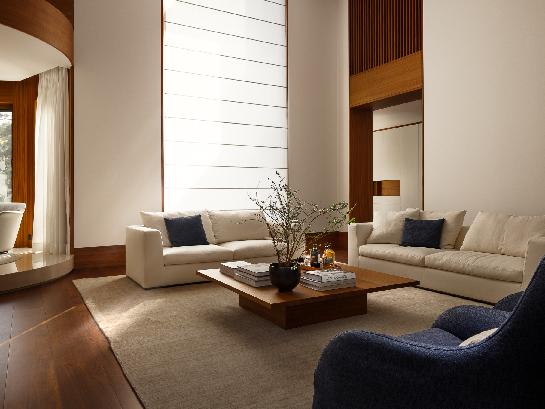 空间糅合了东西方高端家具品牌,在新古典与现代主义的碰撞中塑造优雅与平衡。自然的褶皱、流动的线条、亲肤的肌理,传统工艺赋能质感的同时兼具当代审美,在低调品质背后流露出隐藏的深远内涵。