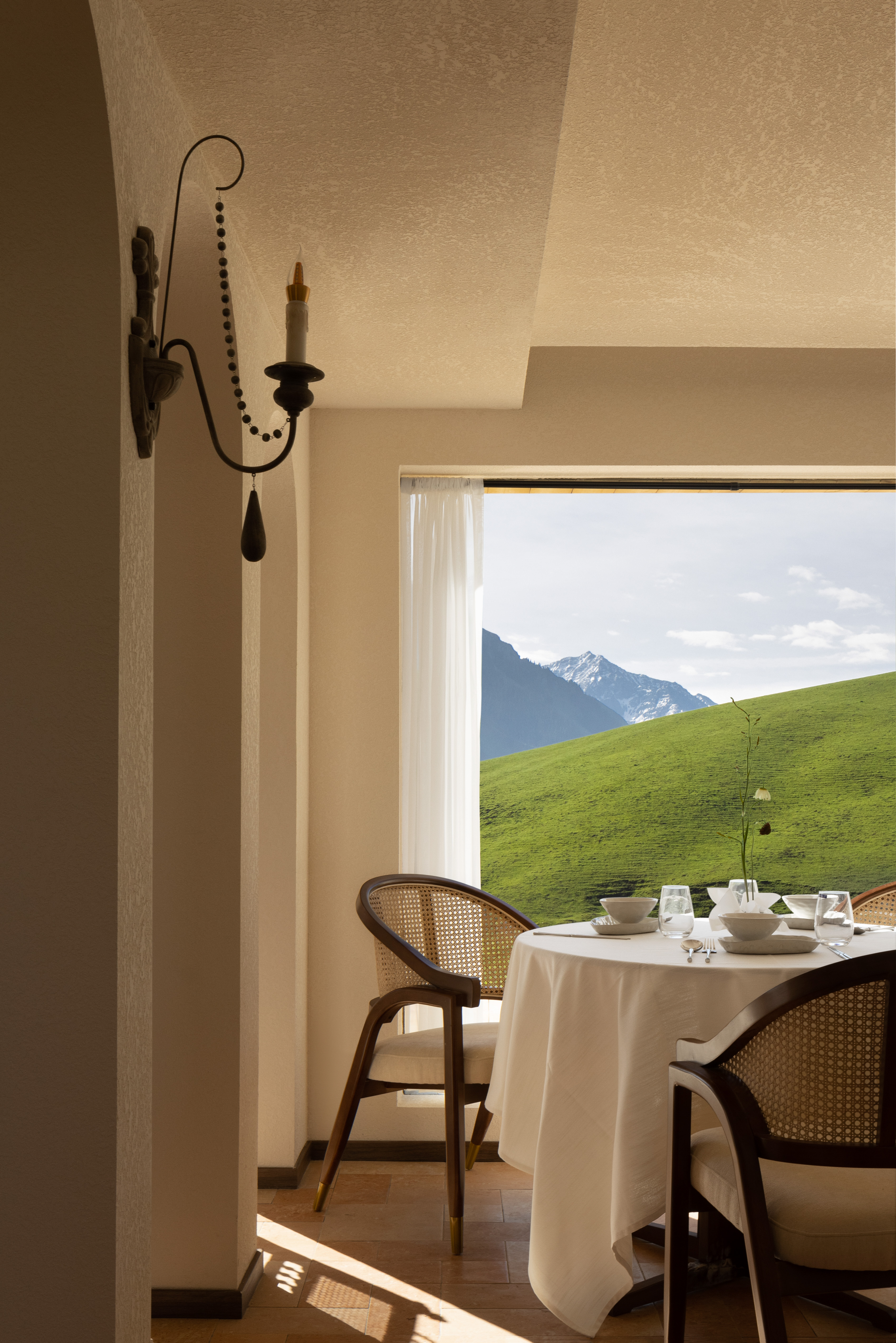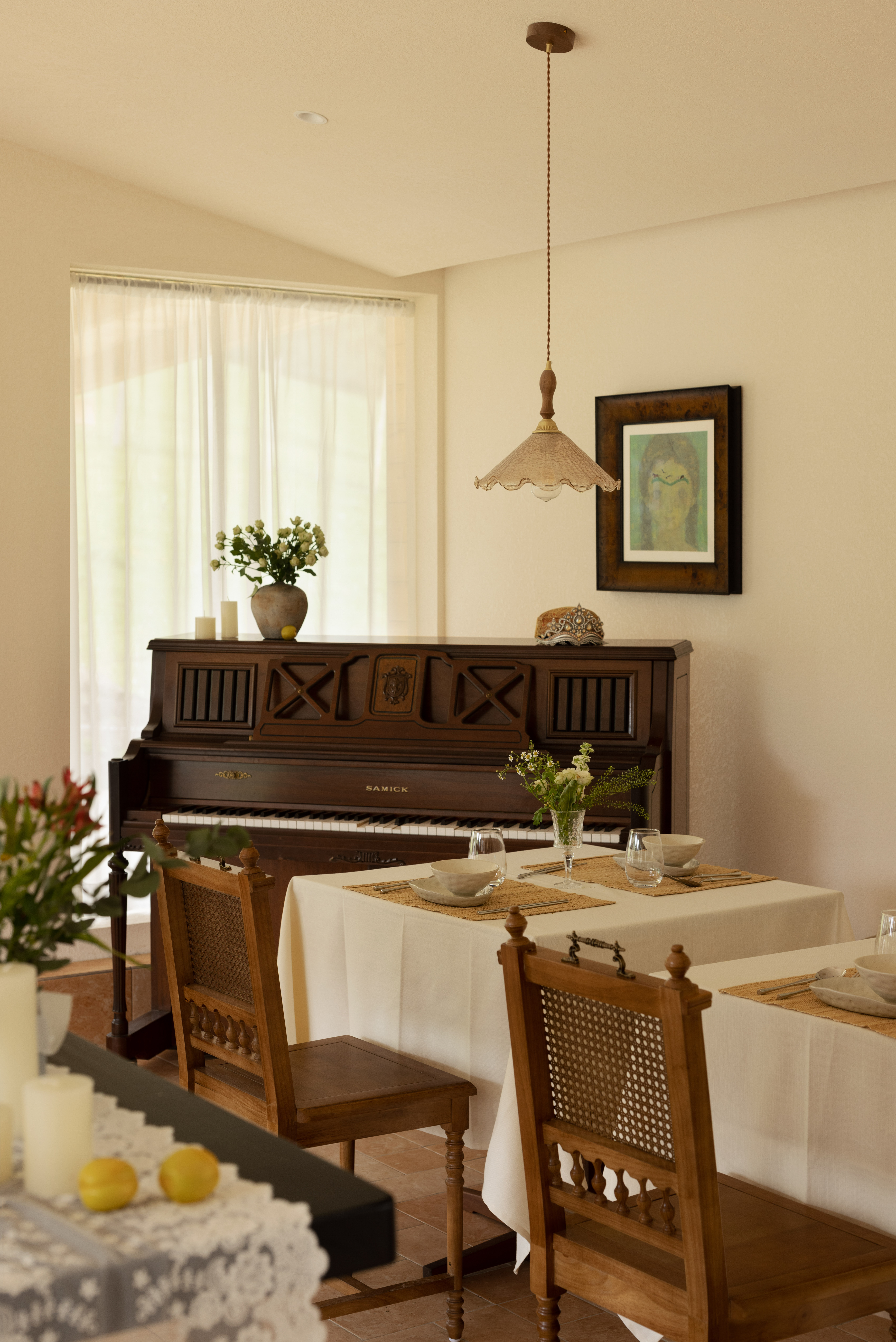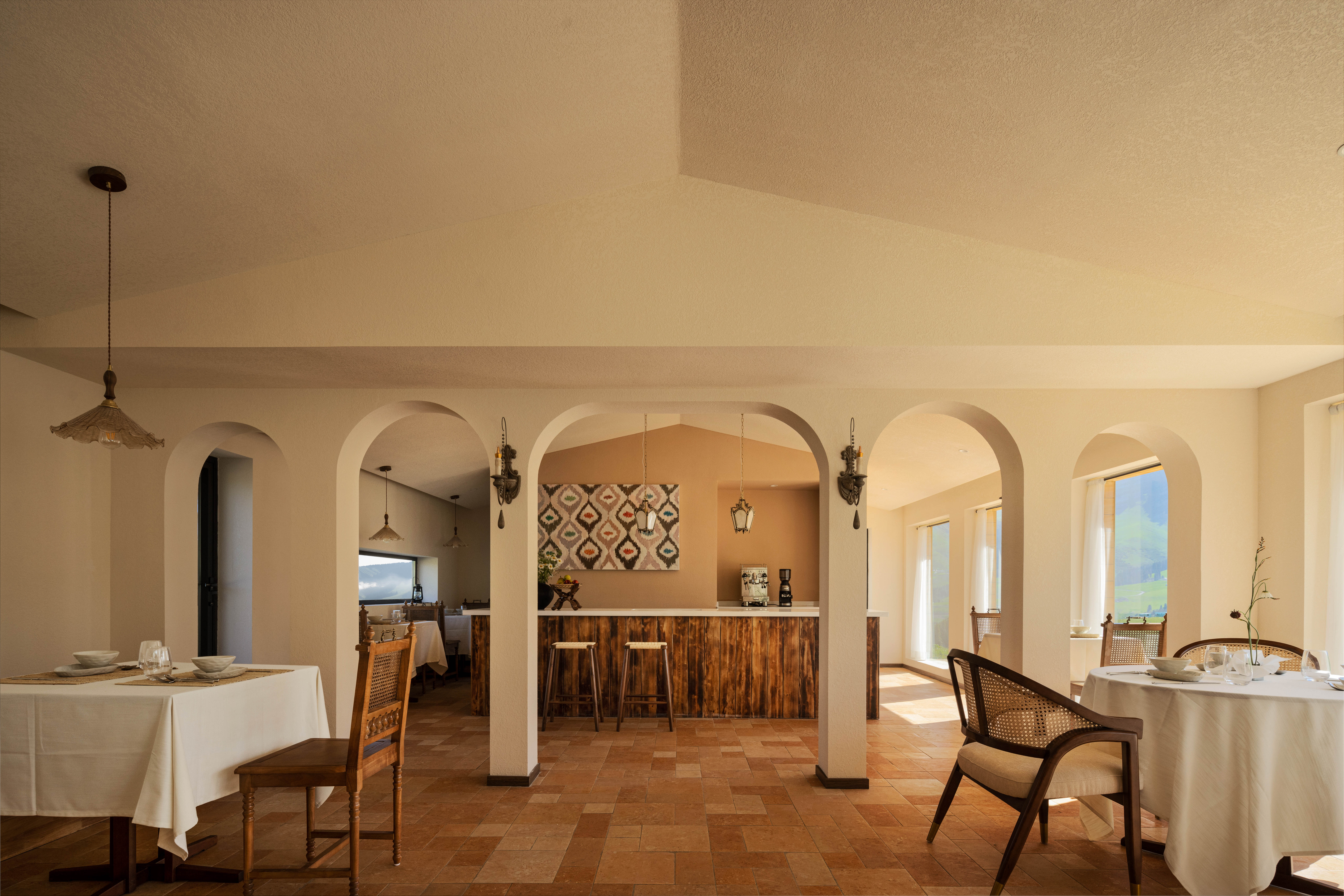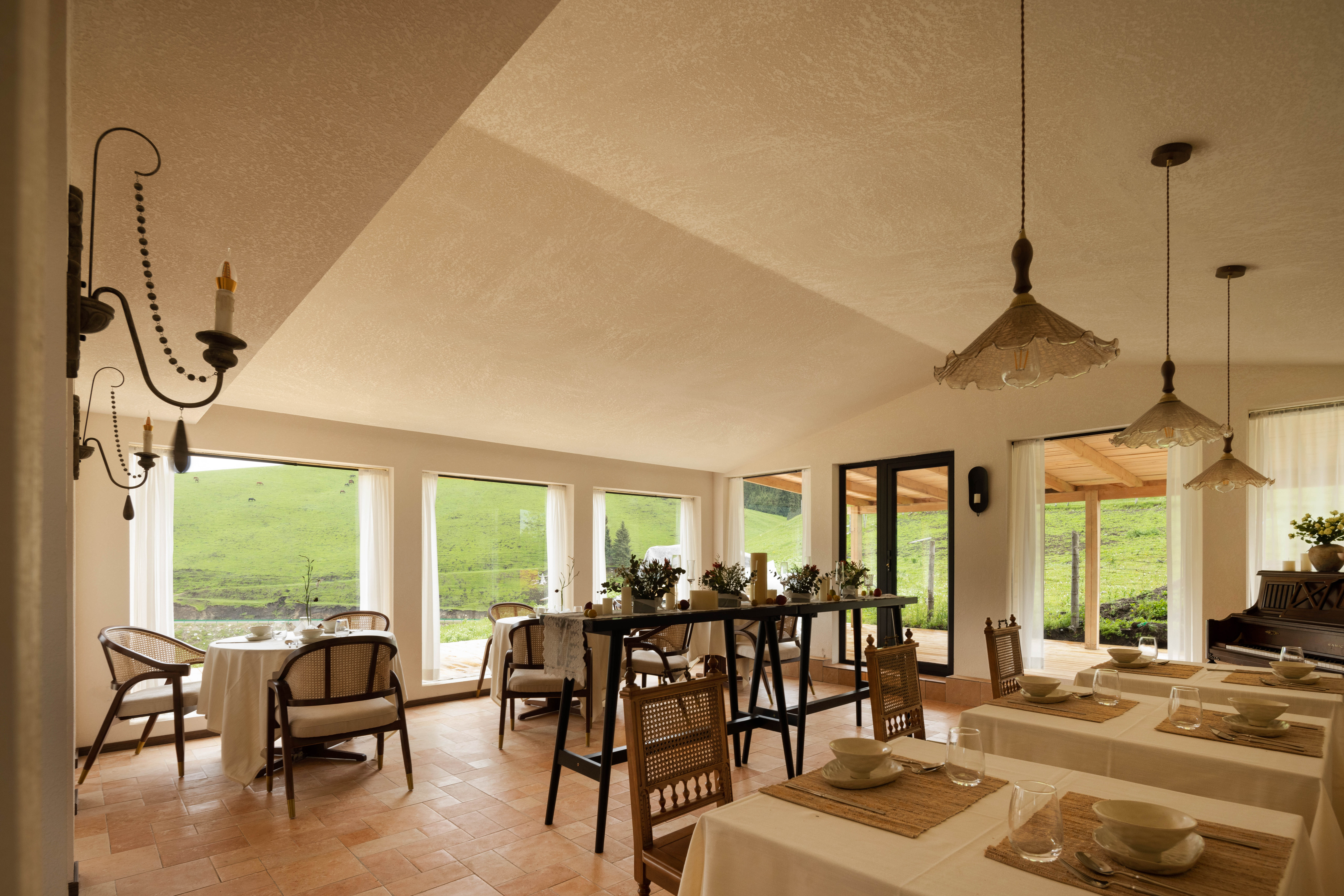 利用民宿的区位优势,设计师将业态规划为“民宿+餐饮/下午茶”的结构,把餐厅消费人群扩大到琼库什台的全部游客。岭杉二期的空间规划为1个公区(兼餐厅)+3间客房,与50米之外拥有5间客房的岭杉一期对望,形成整体8间客房+1个公区(兼餐厅)的总体量。