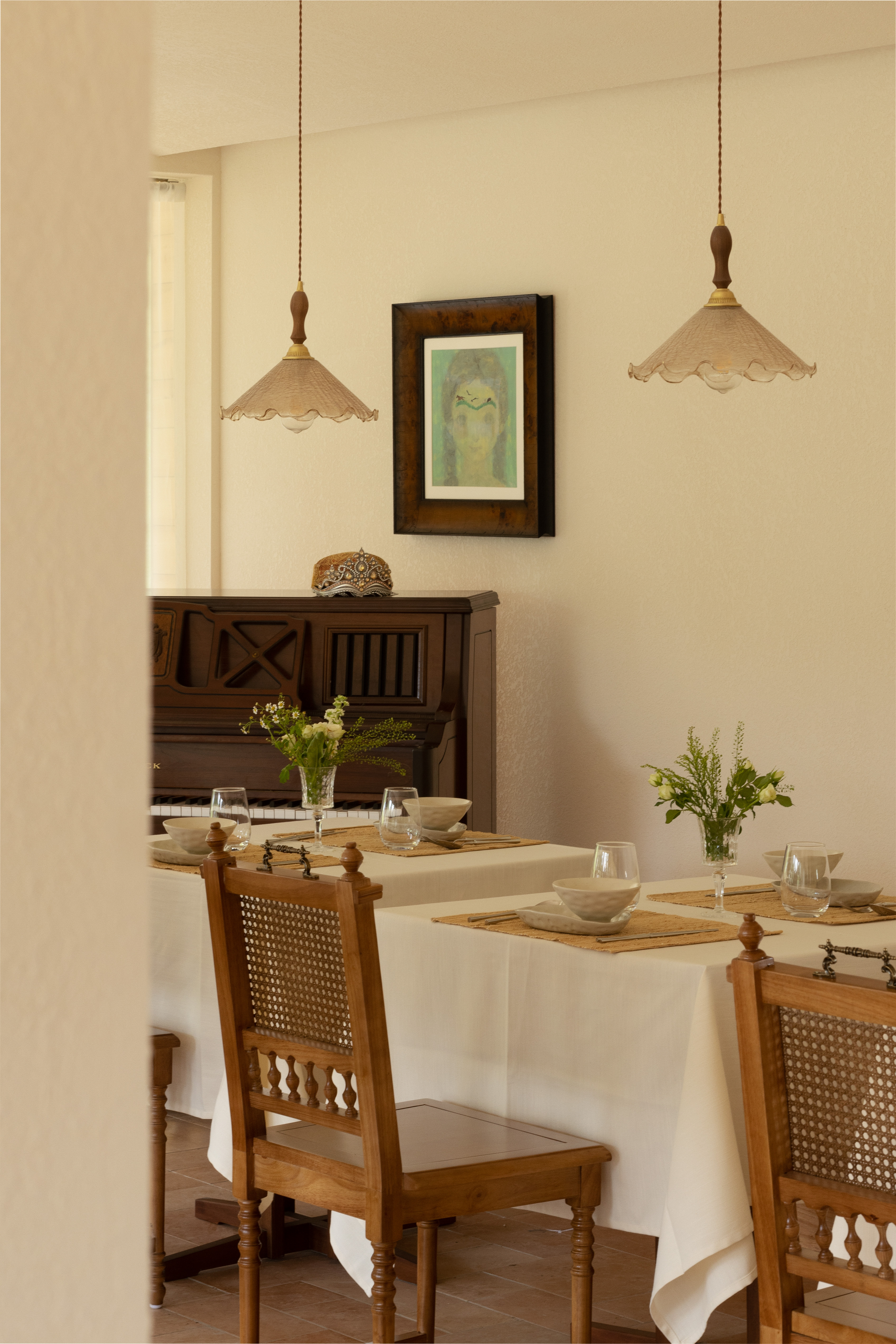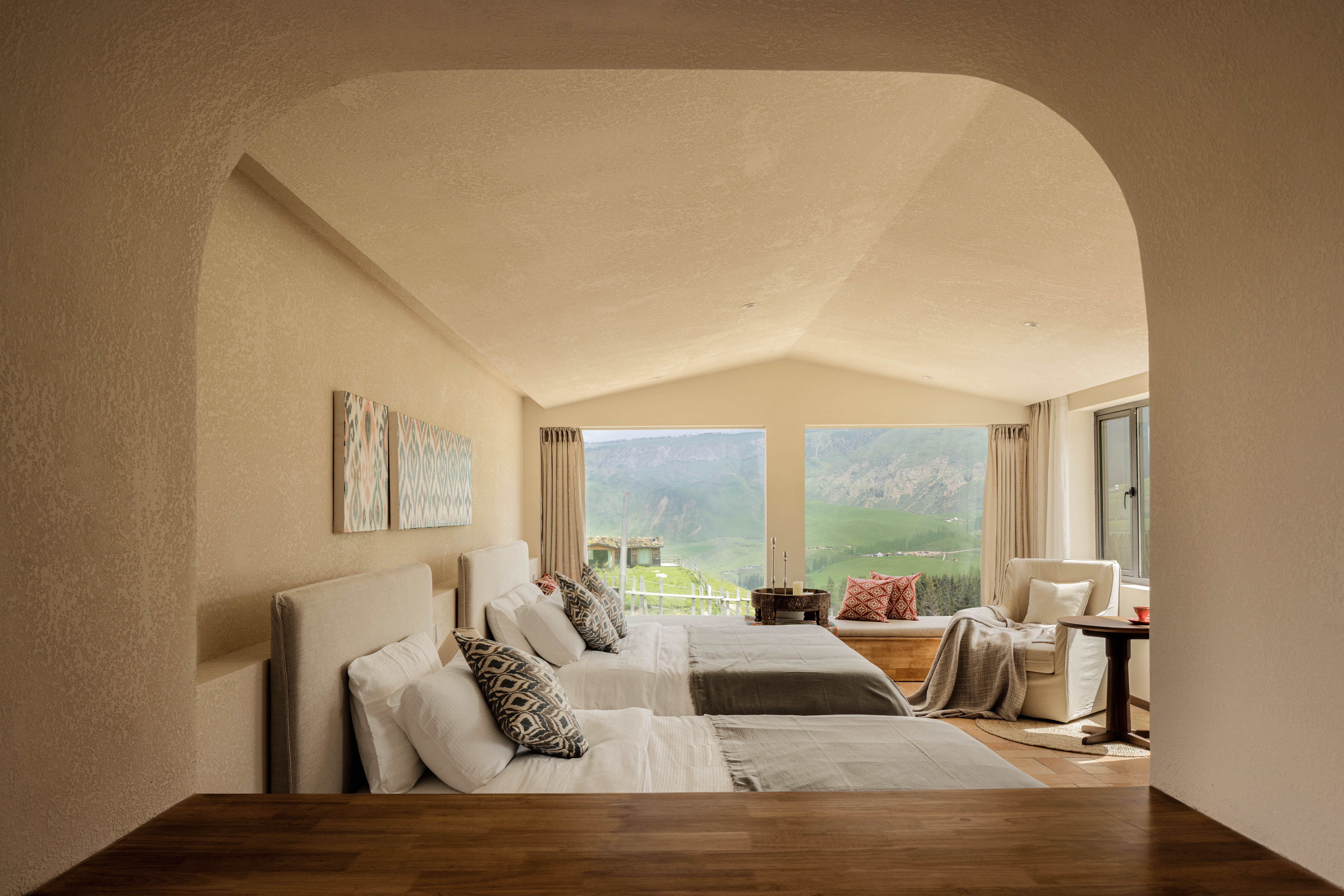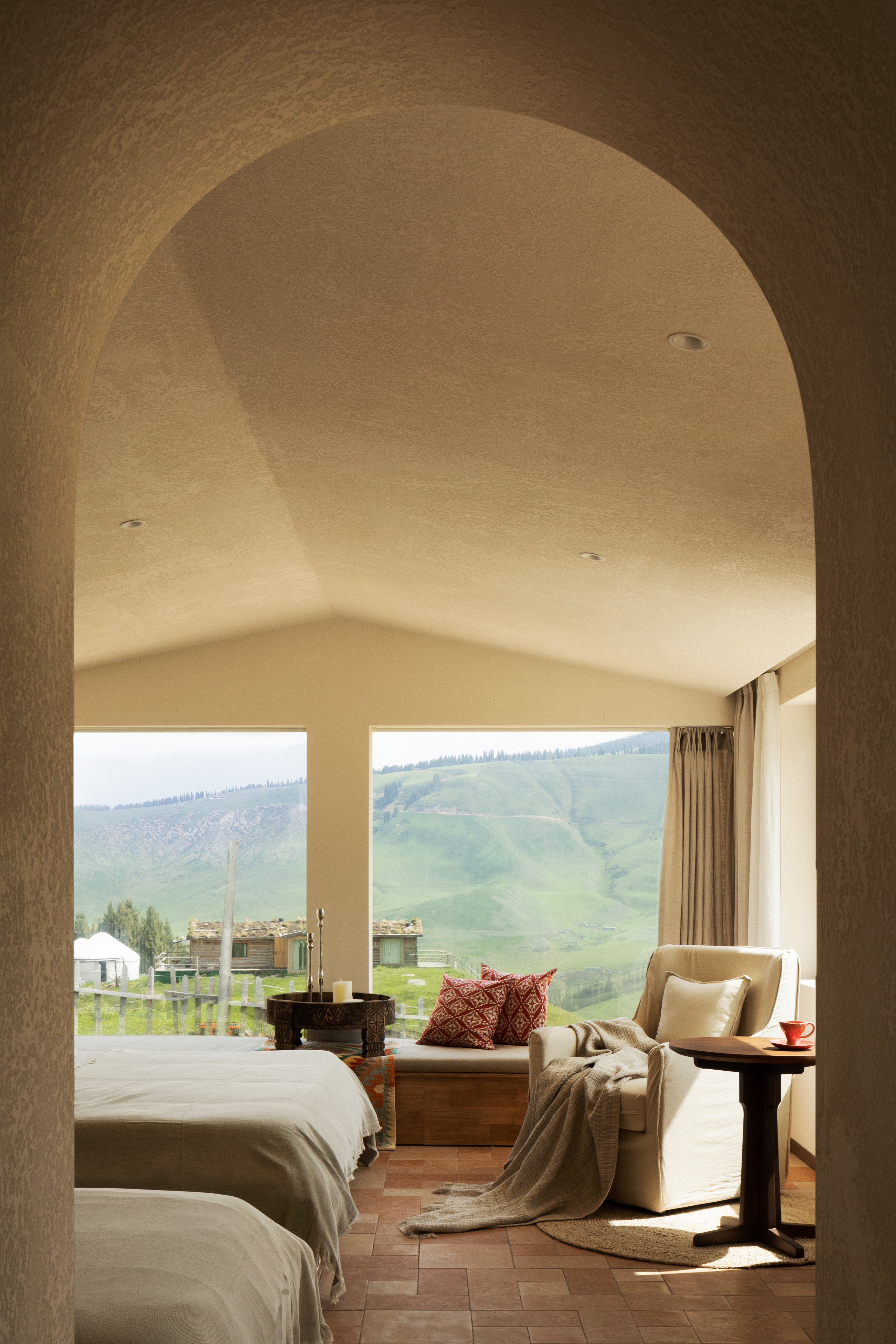 在新疆、西藏、云南这些少数民族集中的地区,设计呈现中的民族元素表达是个绕不开的话题。经过对琼库什台在地文化的长期持续研究,设计师尝试将本地特色与泛新疆文化适度结合,让入住民宿的客人,既能找到独特的琼库什台印迹,也能感受到更为广泛与通识性的西域民族风情。