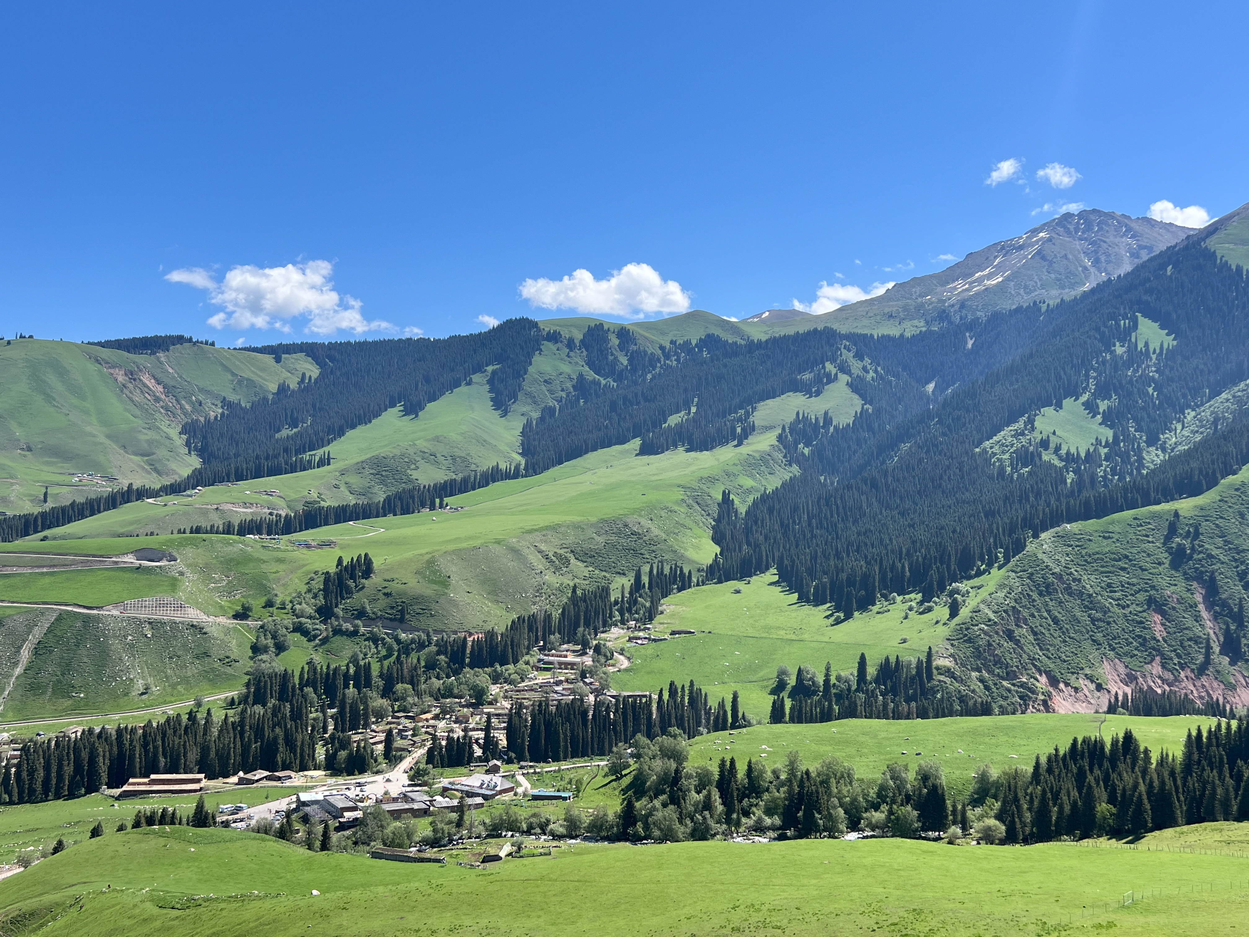琼库什台,位于新疆维吾尔自治区伊犁哈萨克自治州特克斯县喀拉达拉乡,是一个哈萨克自然村。村内居民共400多户,1700多人,是伊犁河谷保存完好的木构建筑群,保留着哈萨克族群历代沿革的历史印记。长久以来,琼库什台隐于新疆天山的中部腹地,鲜为人知。随着乌孙古道的声名鹊起,作为古道起点的琼库什台之名开始得以流传。雪山、村庄、草原、牧场、溪流、河谷、雄鹰、牛羊、杉树林……独特的地理位置造就了绝佳的自然景观,琼库什台也被称为伊犁最后的秘境。