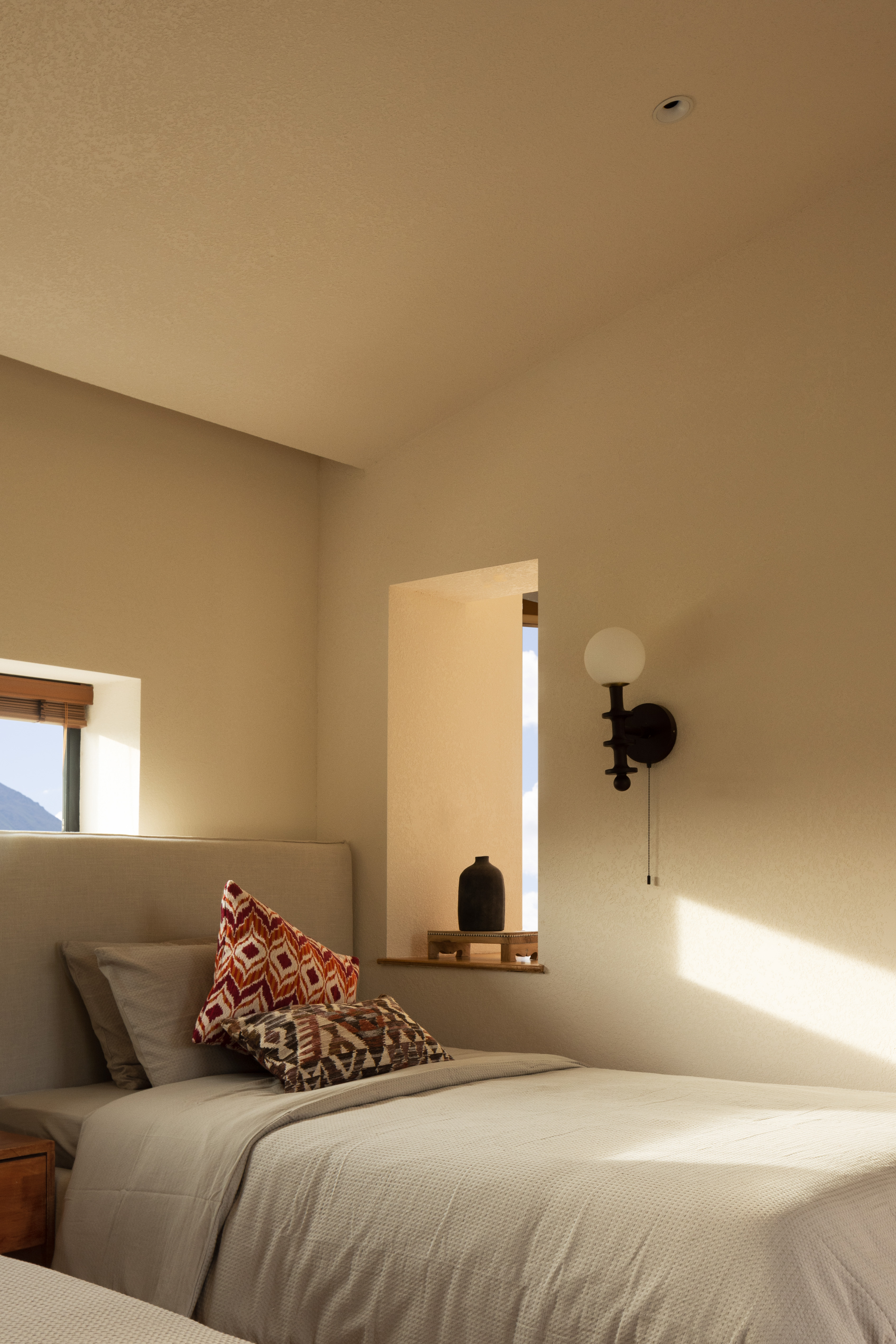 “旅宿”之上,设计师赋予岭杉二期更多的“民宿”属性,从结构、设施、空间尺度到软装选型,都充分考虑了长时体验的需求。舒服的床、枕头,适合长坐的沙发,方便的、可以随时搁水杯的边几,一个正常高度、可以坐下来看看书的桌子,合理收纳保证民宿的整洁,这些都是提升民宿长时体验不可或缺的部分。
