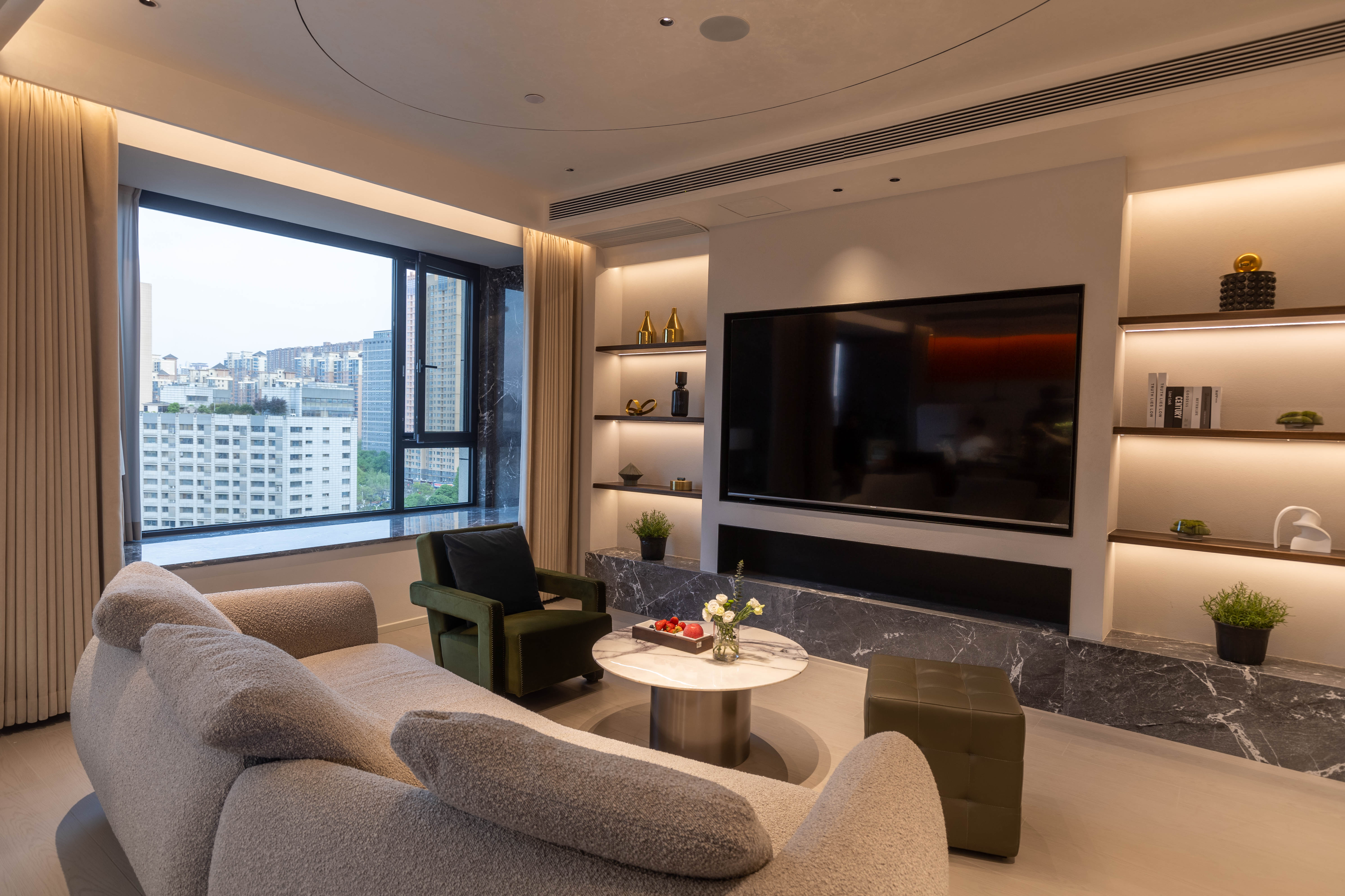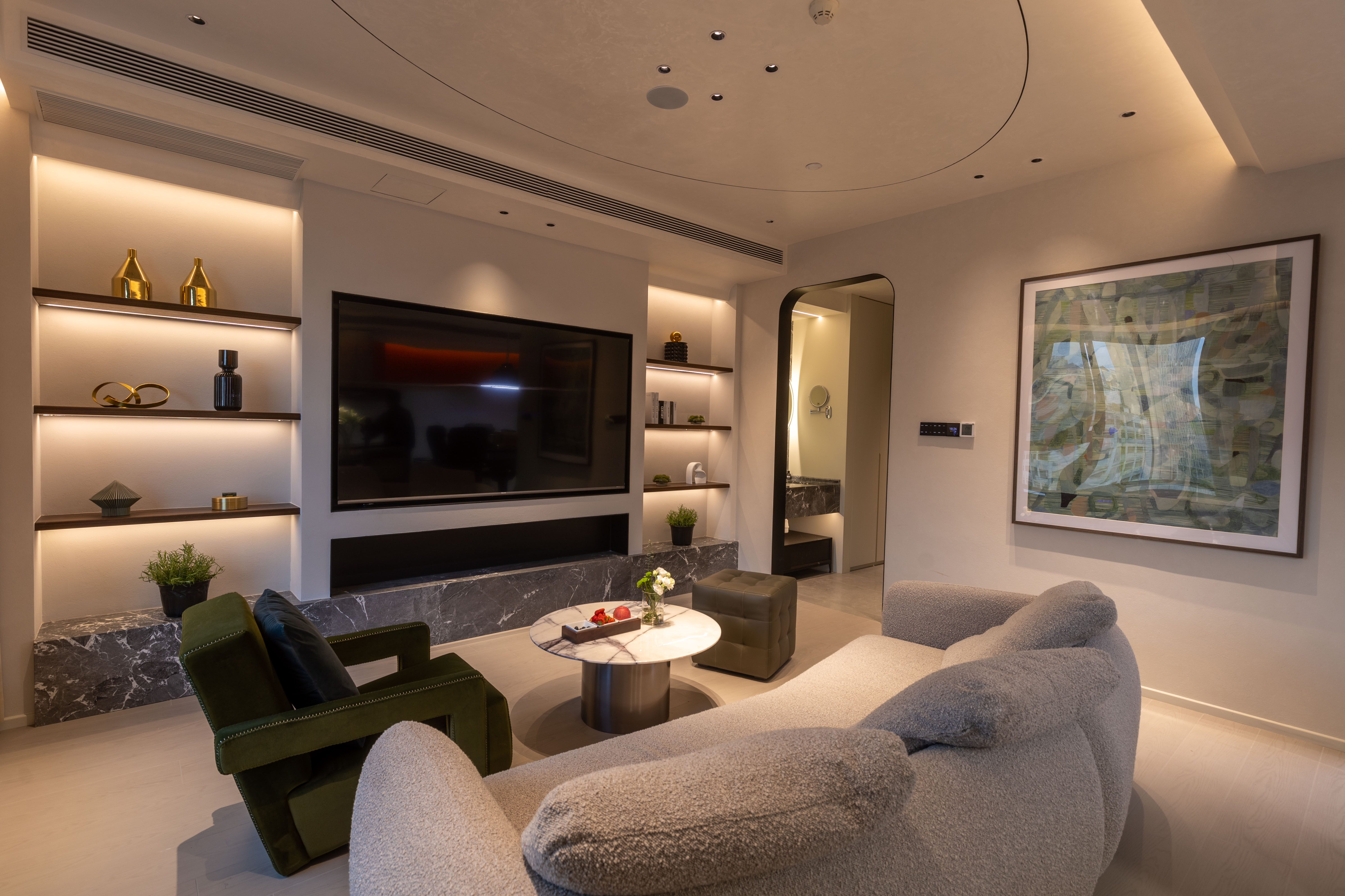 设计选材:项目全部采用市场一线知名品牌,就是希望可以给予使用者最稳定,宾至如归的感受。床品的软硬程度也是定制的,洗漱用品也是经过业主和设计师在上百个品牌中精挑细选出来的,只为保证每一个细节。