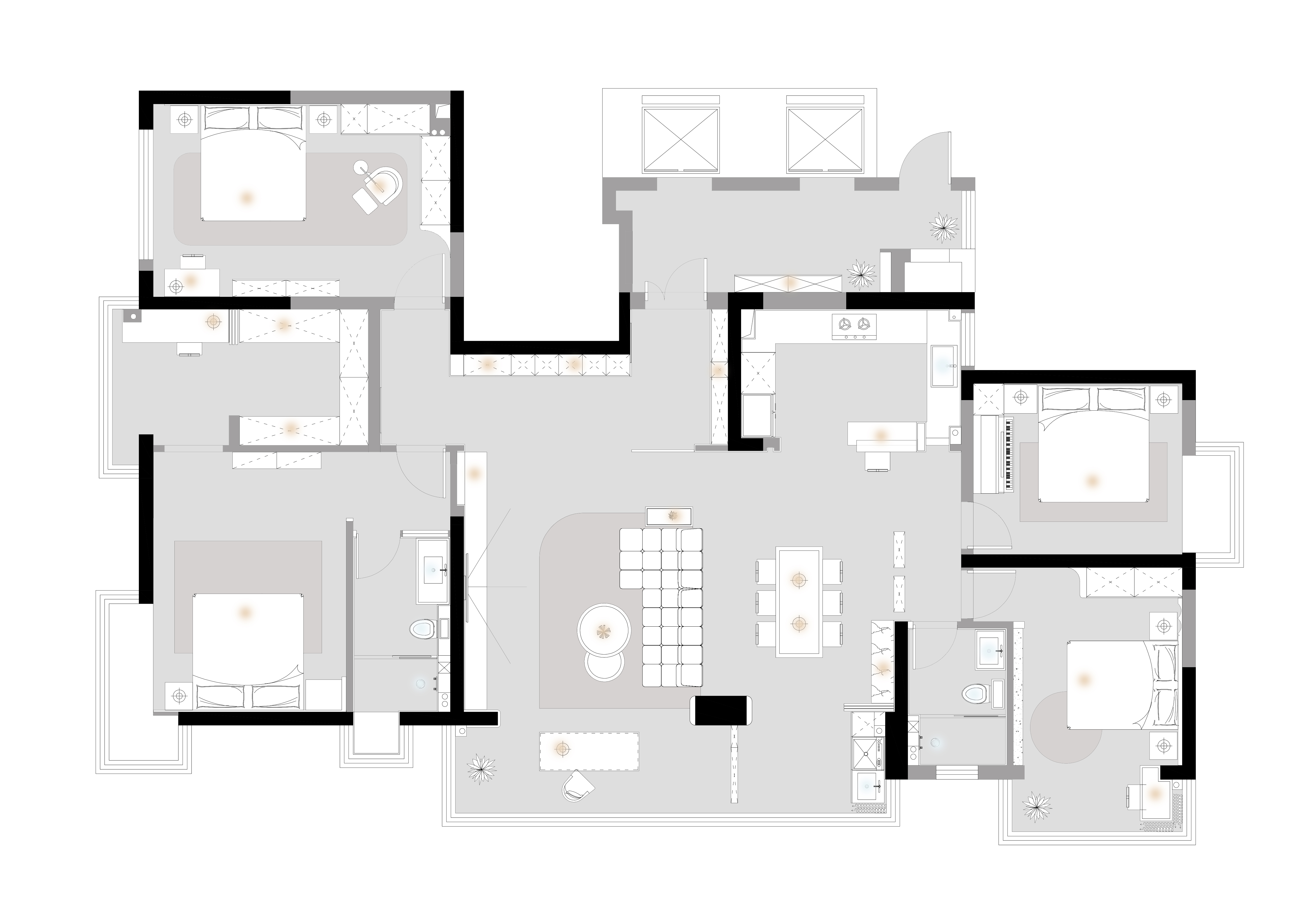 在这套220m²的现代大平层中,毅泽以当代艺术气息和隐性东方元素相碰撞,凝萃都会时代的人文与风华。通过链接自然,打破居所的边界和壁垒,从生活角度出发,对细节的提升进行考量,为居者描绘一处兼容繁华都会与诗意自然的全新图景。